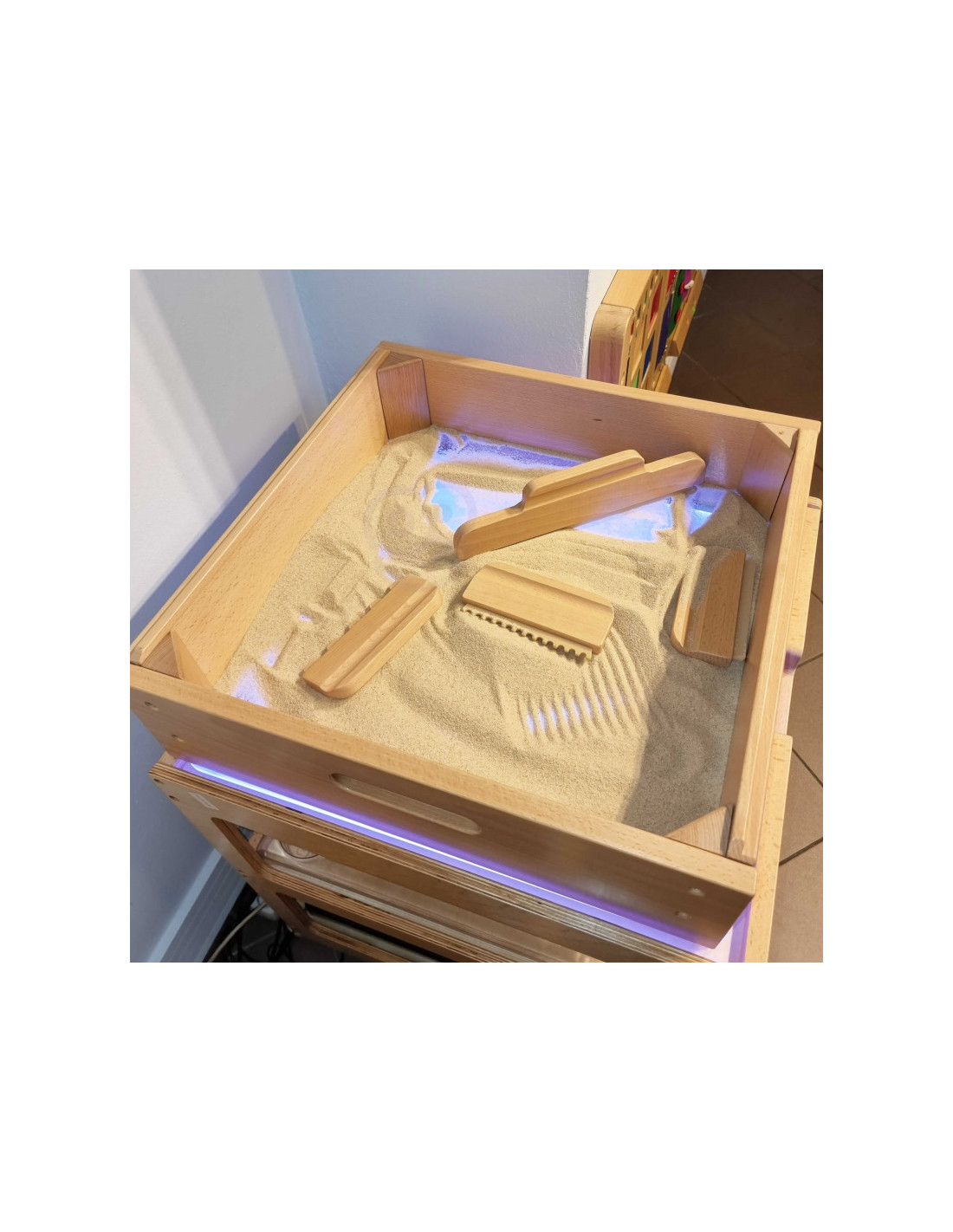 Šviesos panelė kartu su smėlio piešimo rėmeliu – puikus būdas smagiai praleisti laiką. Rėmas neleidžia smėliui išsilieti nuo stalo.