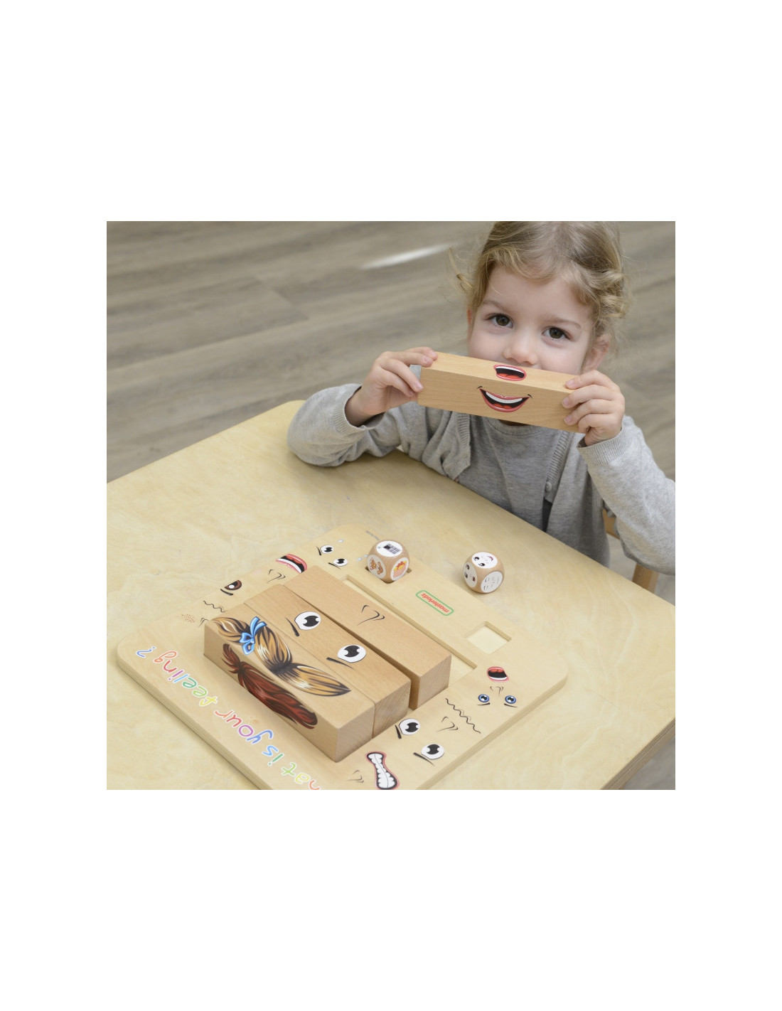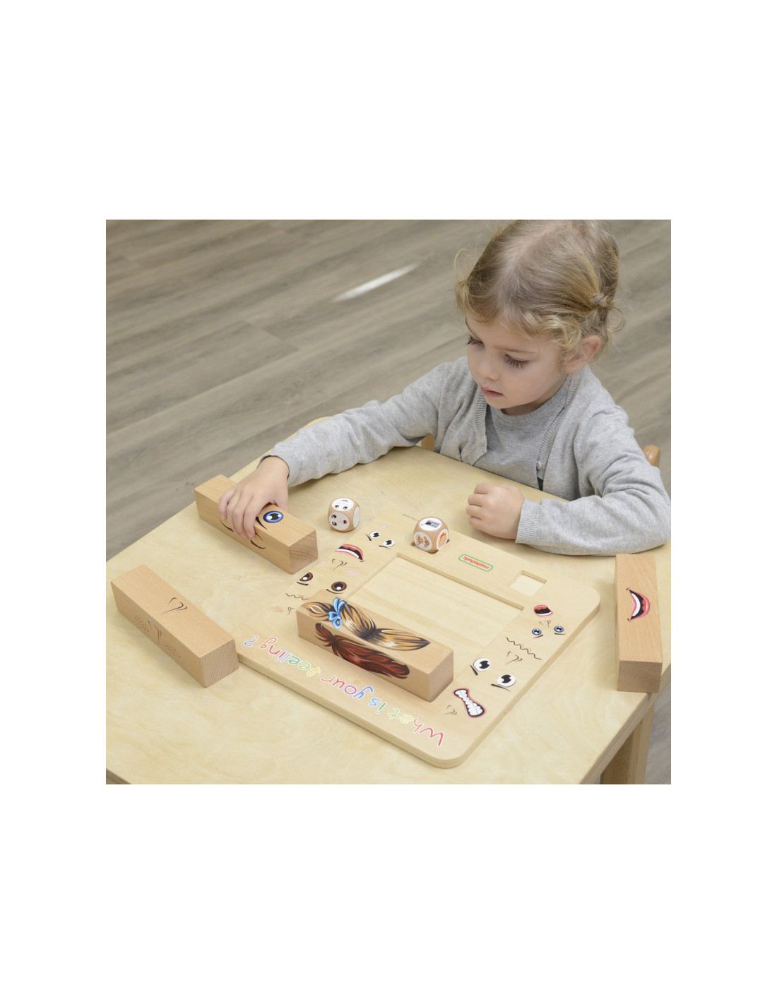 Rankinė edukacinė lenta lavina vaikų emocinį intelektą, moko atpažinti emocijas ir jausmus, be kita ko: baimė, džiaugsmas , liūdesys ar pyktis.