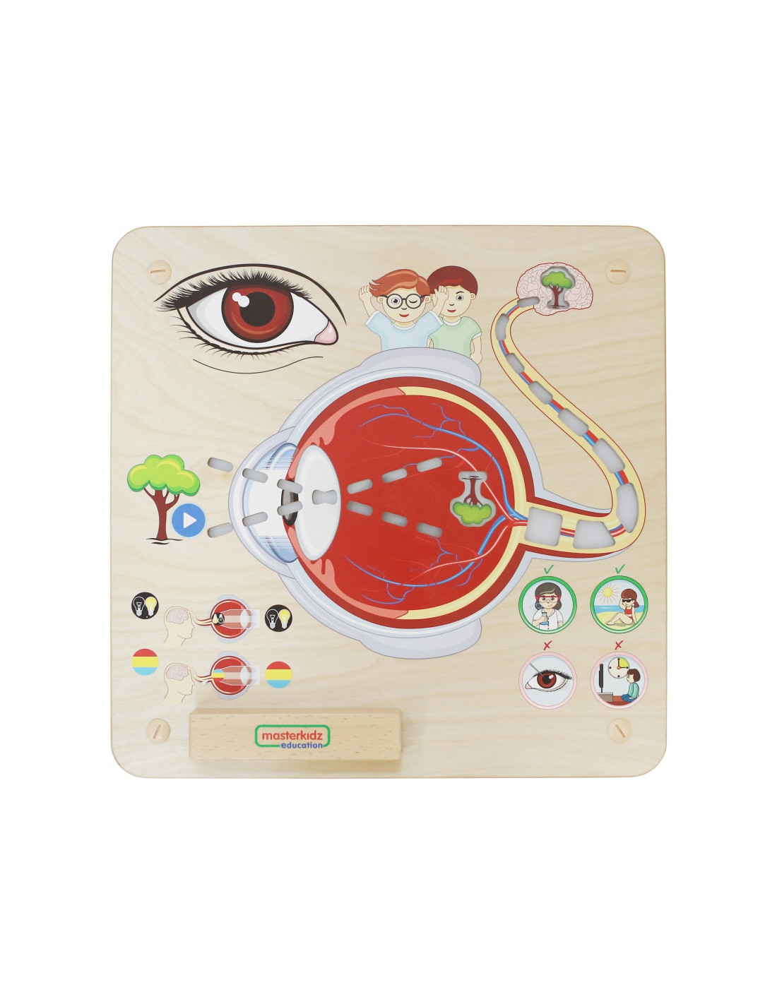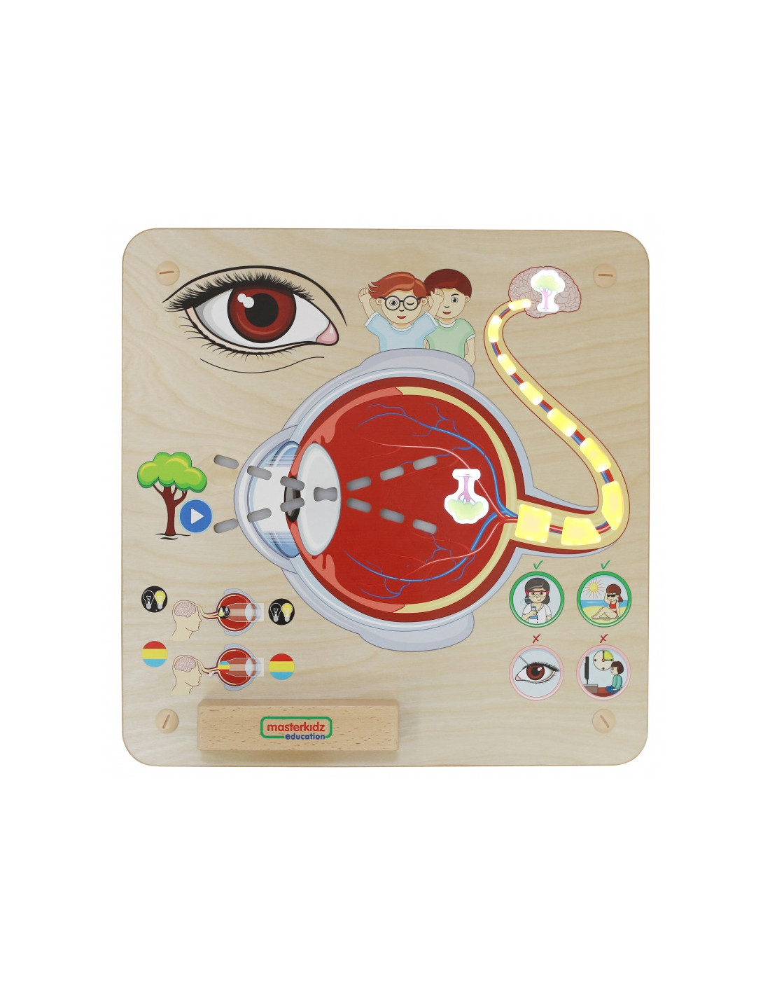 - - kai vaikas paliečia medį (esantį kairėje pusėje) , šviesa įsijungs, pradedant nuo lęšiuko iki tinklainės