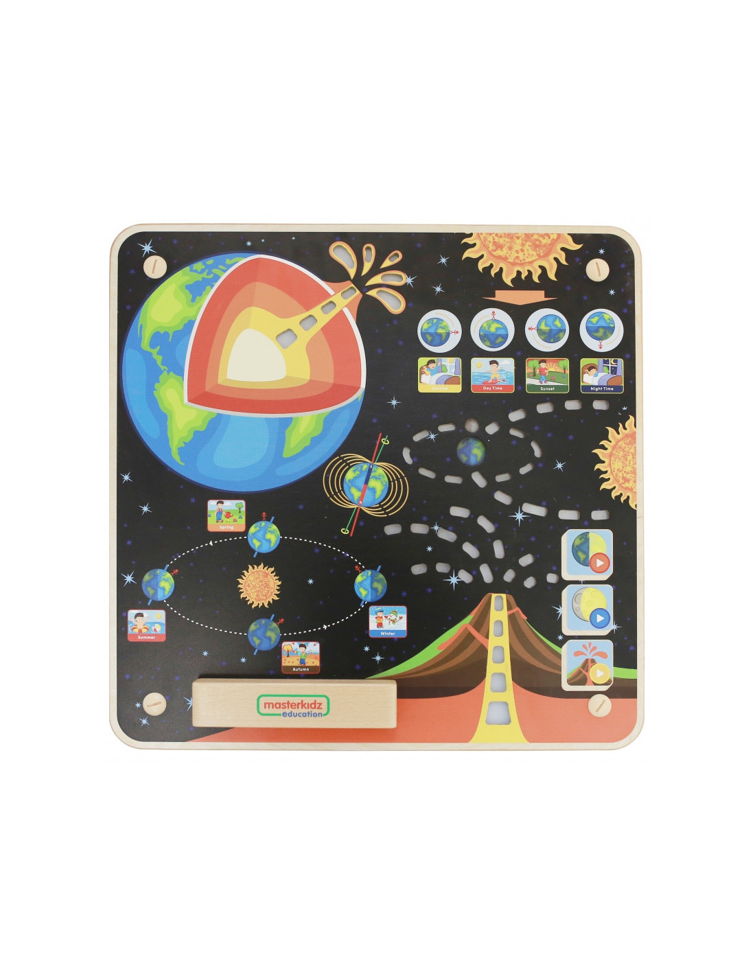 - - Edukacinė lenta rodo, kaip Mėnulis sukasi aplink Žemę ir kaip Žemė sukasi aplink Saulę