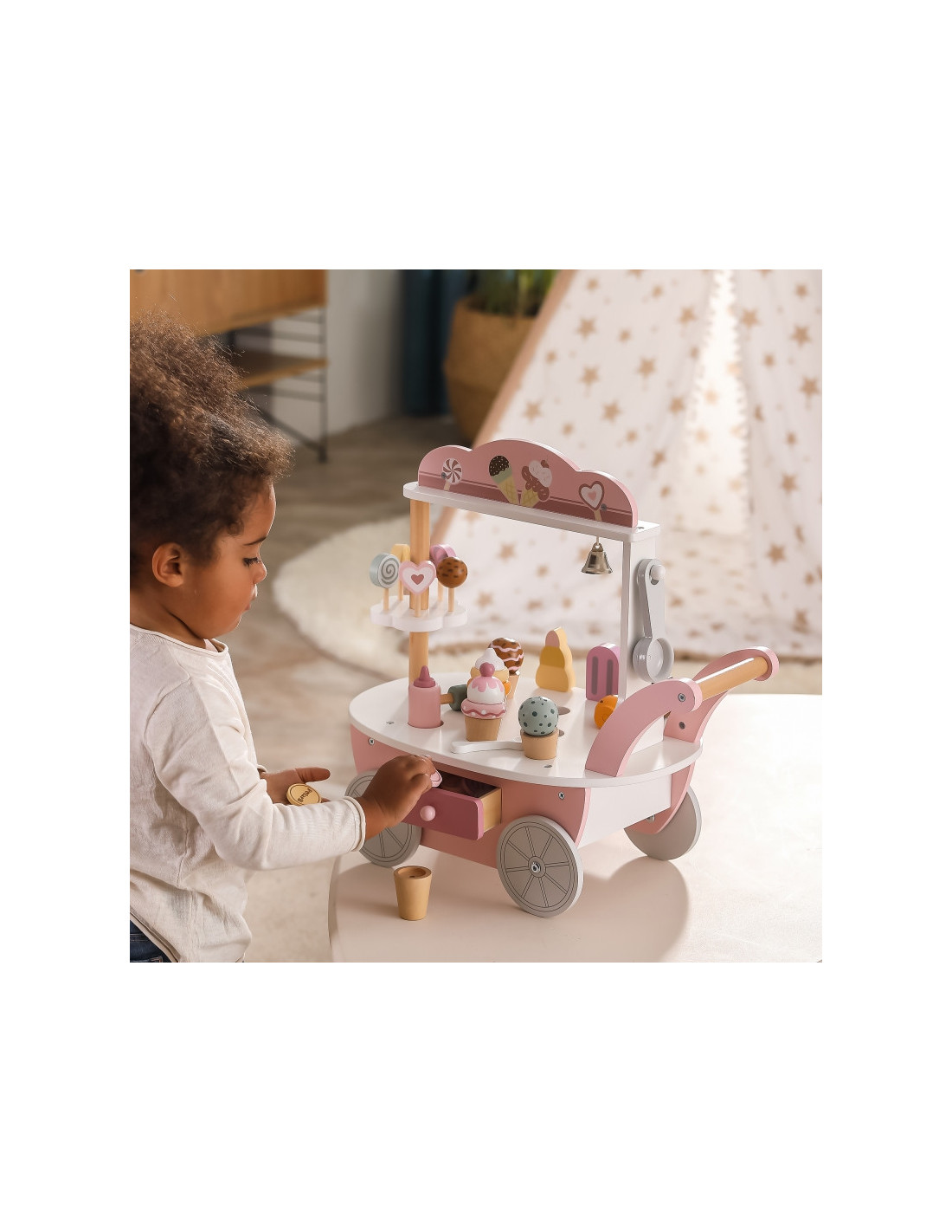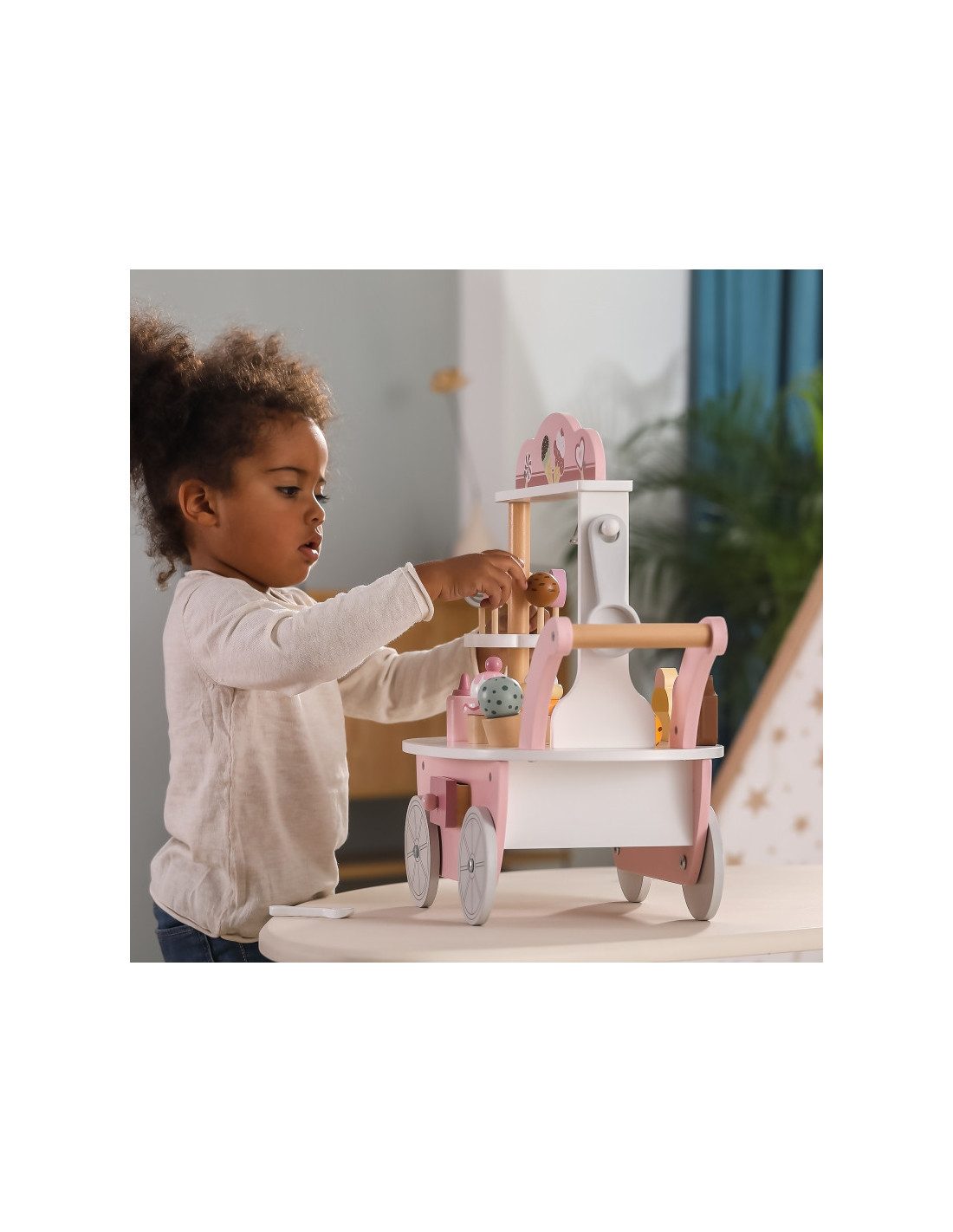 „PolarB“ serijos 3 viename parduotuvė, konditerijos parduotuvė ir ledainė yra puiki dovana mažiesiems konditeriams. Rinkinys puikiai tinka vaikui, norinčiam tapti pardavėju ar konditerio vaidmeniu . Šis žaislas leis jūsų vaikui pasijusti profesionaliu saldumynų pardavėju . Žaisle yra daug mažesnių priedų, tokių kaip ledinukai ant pagaliuko, ledai, vafliai ir užpilai. Vežimėlis turi lentyną, kurią galima atidaryti ir laikyti. Visas rinkinys nudažytas netoksiškais, švelnių spalvų dažais, kurie patraukia vaikų dėmesį.