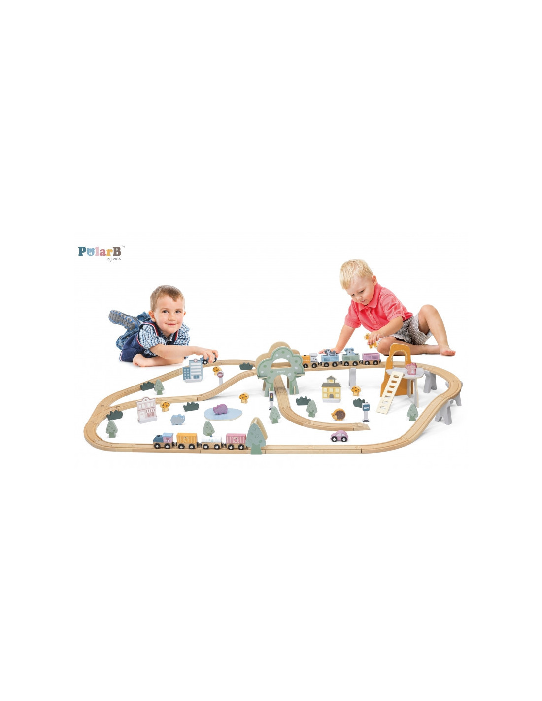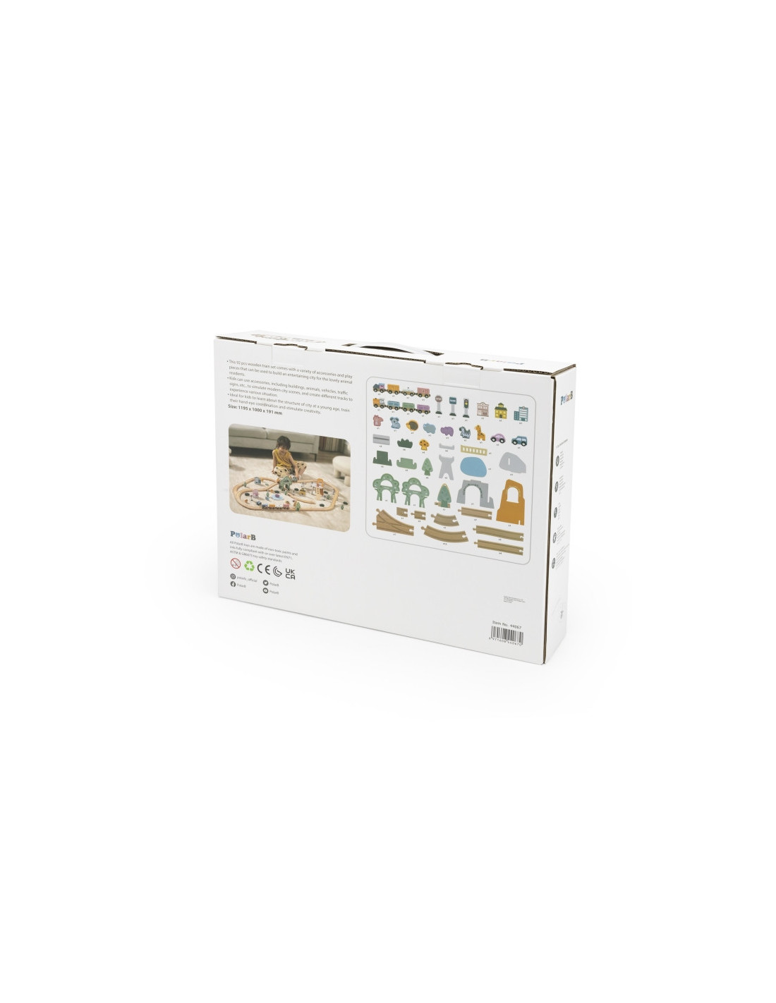 Medinis „PolarB“ traukinuko rinkinys yra žaislas, kuris ilgai tarnaus jūsų vaikui ir suteiks daug valandų kūrybiško ir įtraukiančio žaidimo. Traukinuko dėka vaikai gali kurti savo žaidimo scenarijus ir nuotykius. Spalvingas traukinuko rinkinys su priedais traukia akį ir skatina žaisti.
