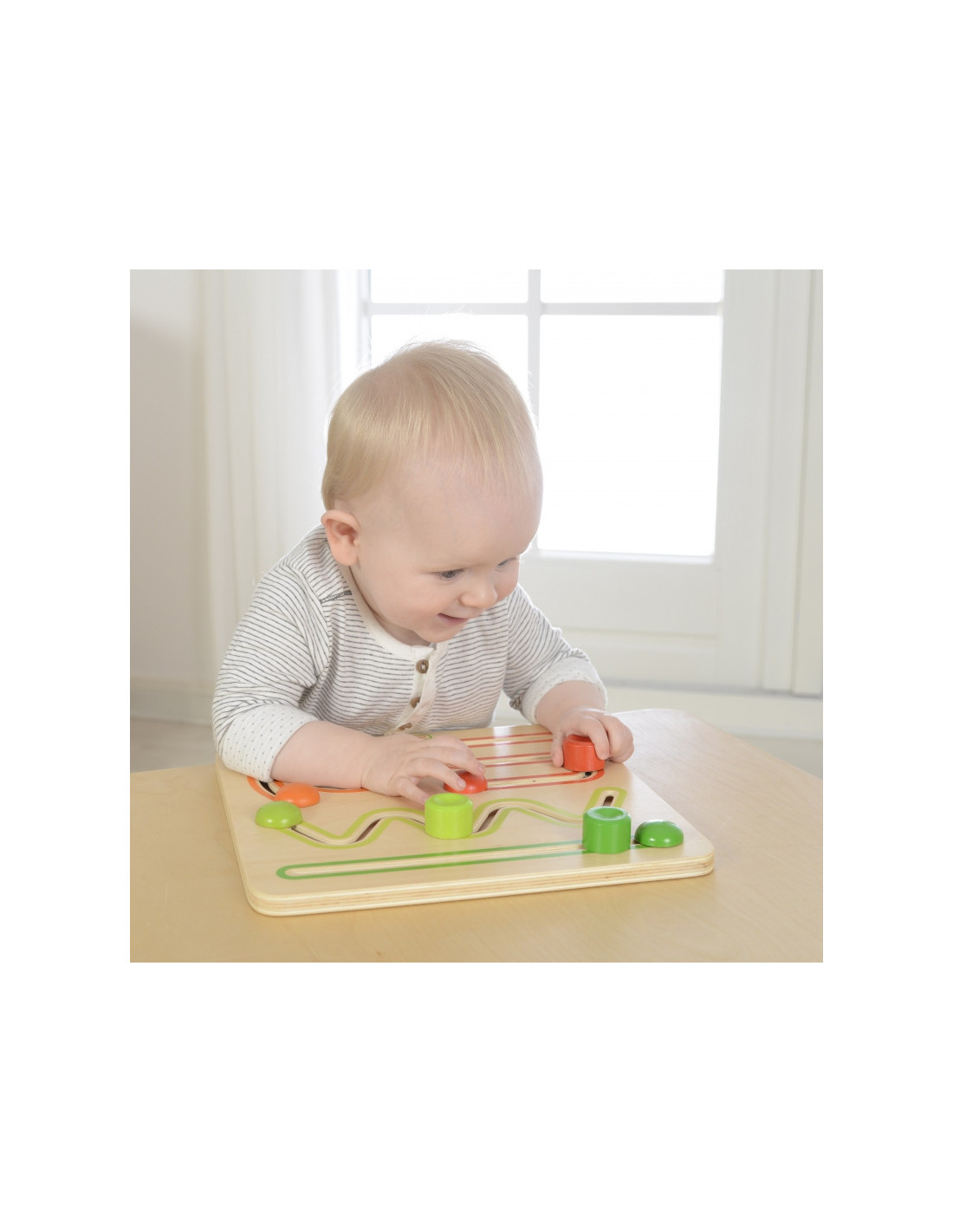 Masterkidz slankiojanti manipuliacinė lenta yra paprastas, bet neįtikėtinai efektyvus lavinamasis žaislas, kuris padeda vystyti mažas rankytes ir paruošia vaikus rašymo mokymuisi. Spalvingi slankikliai juda keturiomis skirtingomis trajektorijomis: tiesia, zigzago, spirale ir žingsneliu. Kiekvienas judesys yra ne tik labai smagus, bet ir svarbus žingsnis lavinant rašymo įgūdžius. Tvirta konstrukcija ir patrauklus dizainas puikiai tinka naudoti tiek namuose, tiek ikimokyklinėse įstaigose.