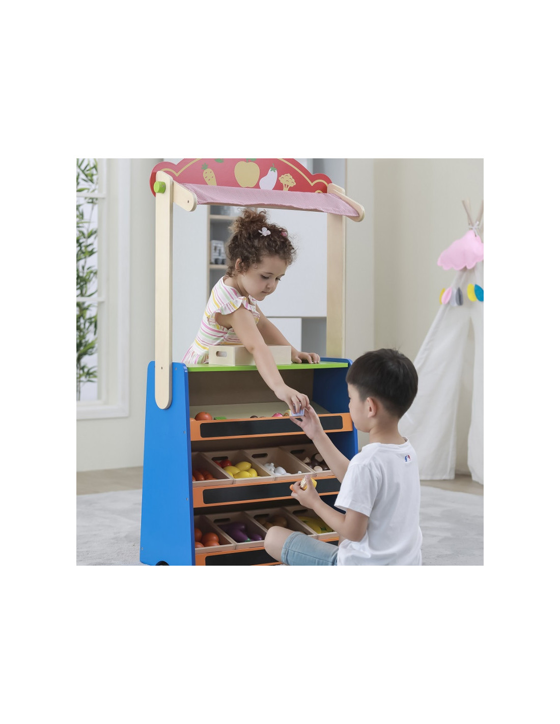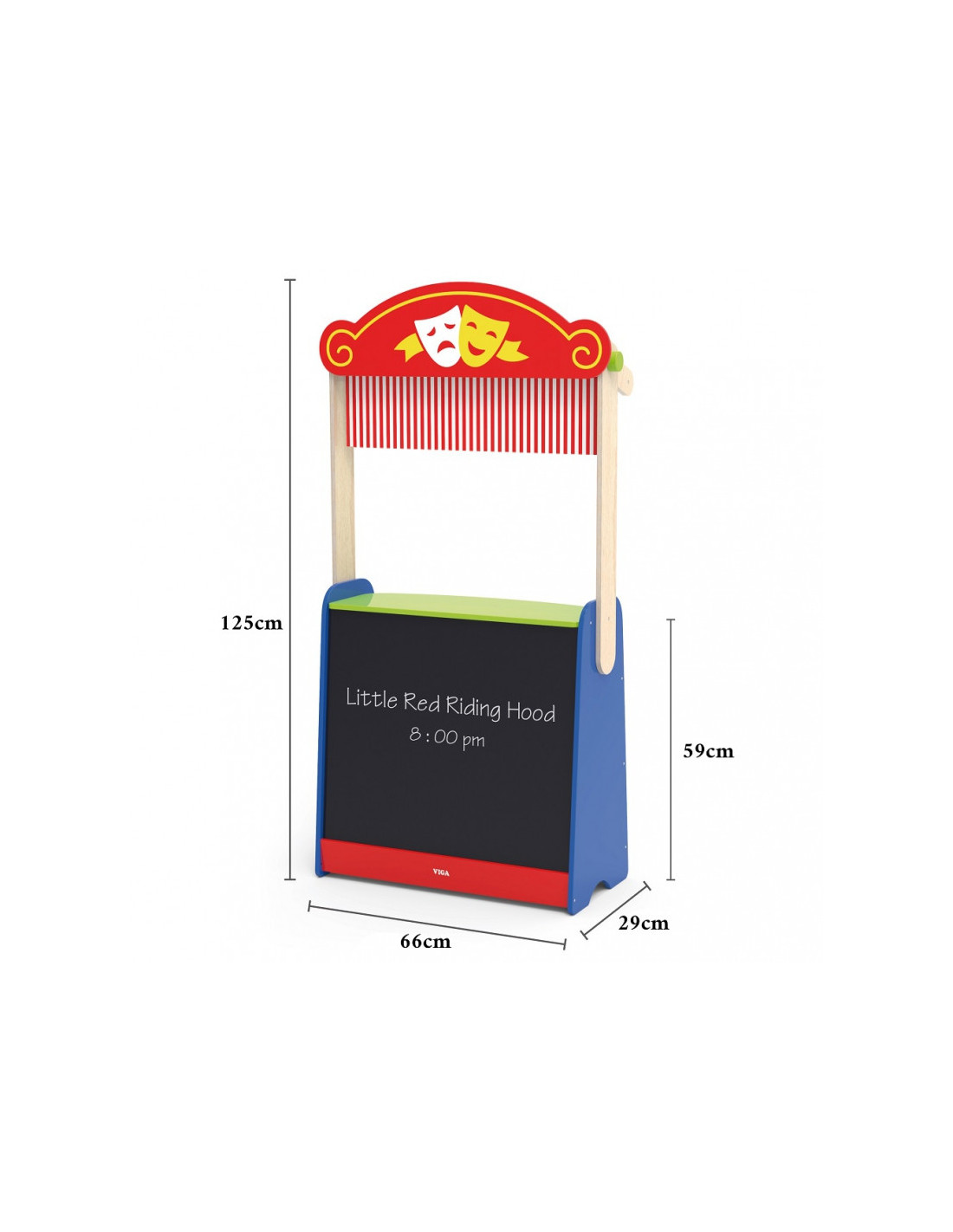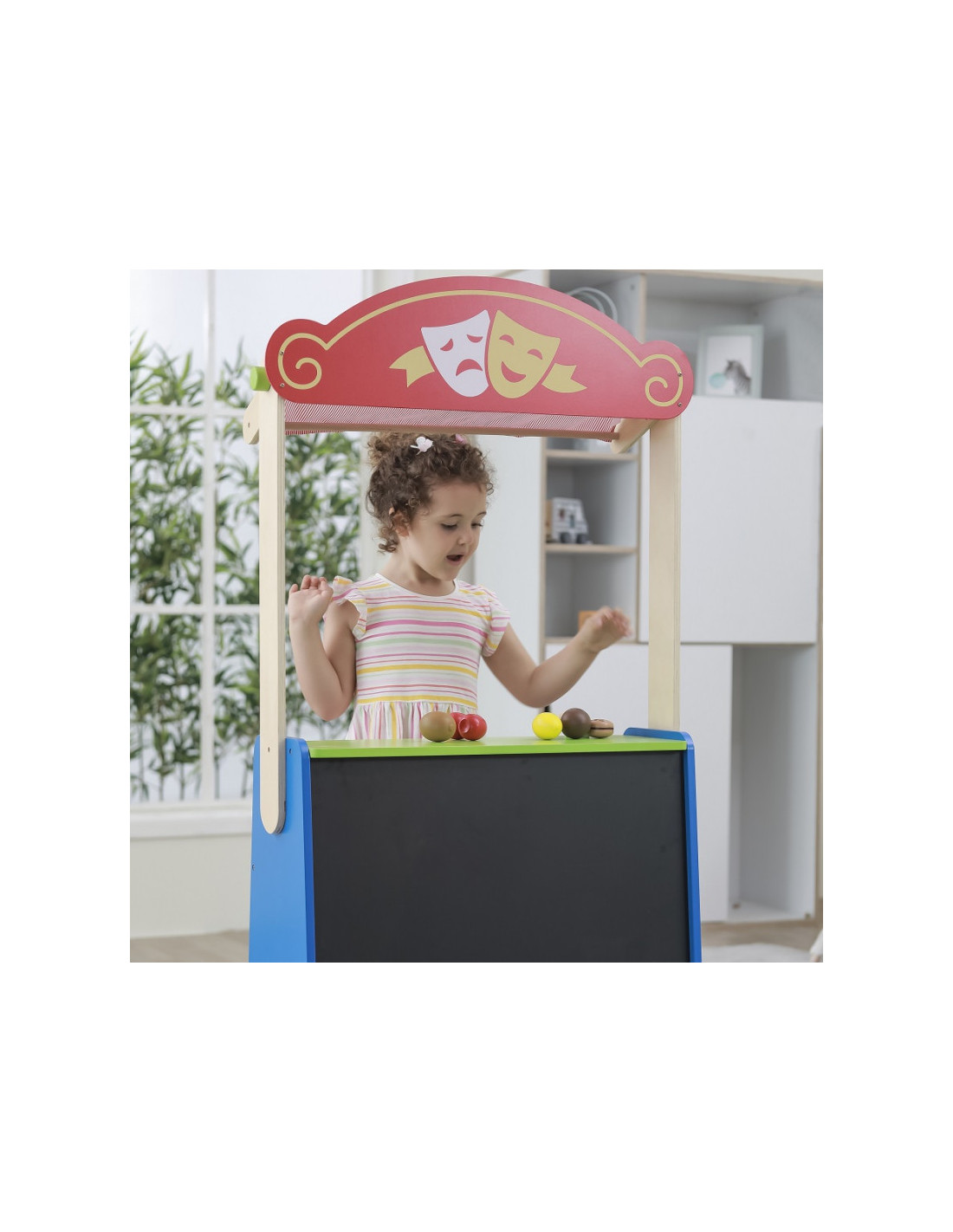 Šis aukštos kokybės „Viga Toys“ žaislas – tai teatro ir maisto prekių parduotuvės derinys . Tiesiog apverskite žaislą ir galėsite imtis visiškai naujų vaidmenų.