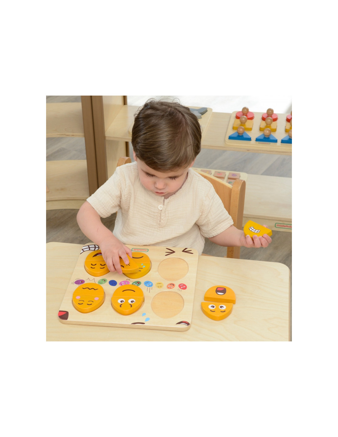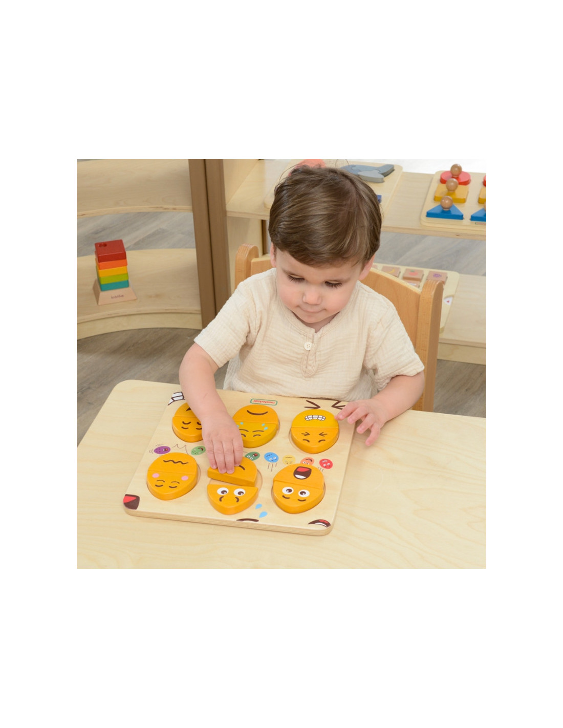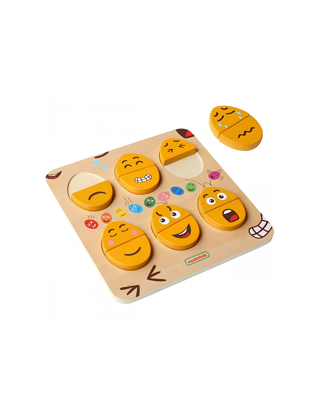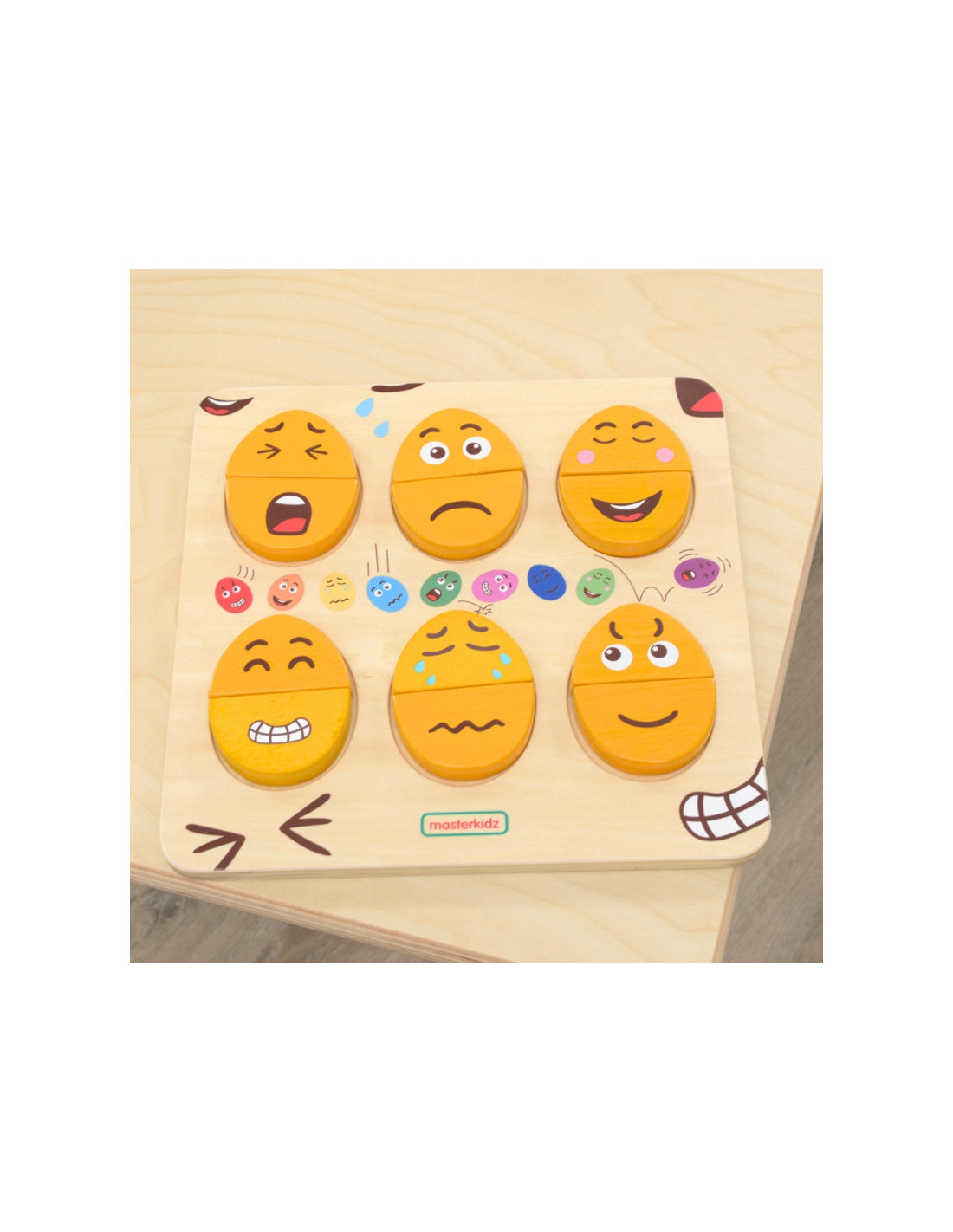 Ši medinė MASTERKIDZ emocijų lenta skirta padėti vaikams lavinti emocinį sąmoningumą ir socialinius įgūdžius . Vaikai gali skirtingais būdais sujungti viršutinę ir apatinę dalis, kad sukurtų veido išraiškas. Tai ypač naudinga priemonė skatinant vaikus reikšti savo jausmus neverbaliniu būdu . Ji taip pat gali būti naudojama mokant vaikus empatijos, prašant jų atspėti arba atkartoti kitų jausmus naudojant šiuos kaladėles.