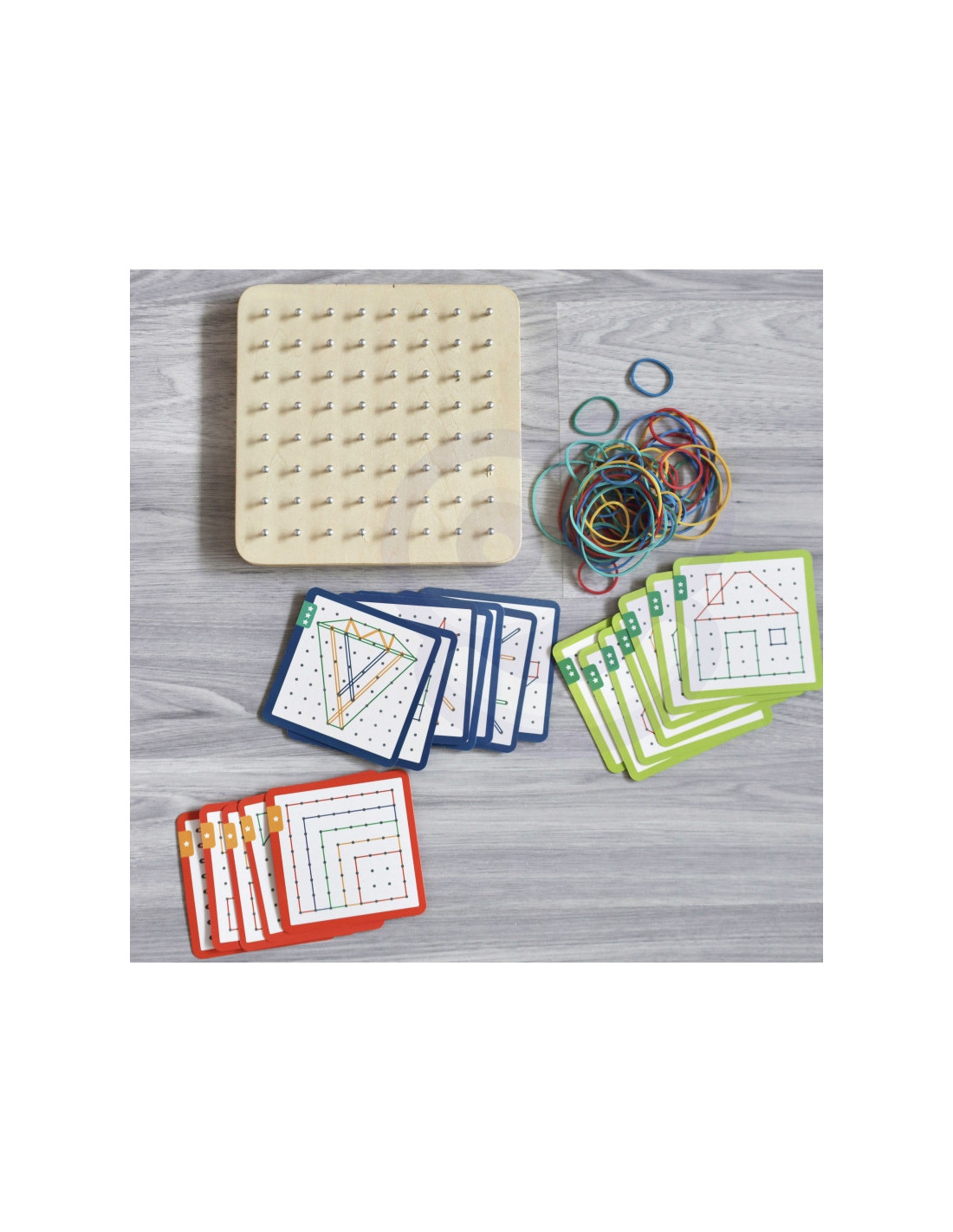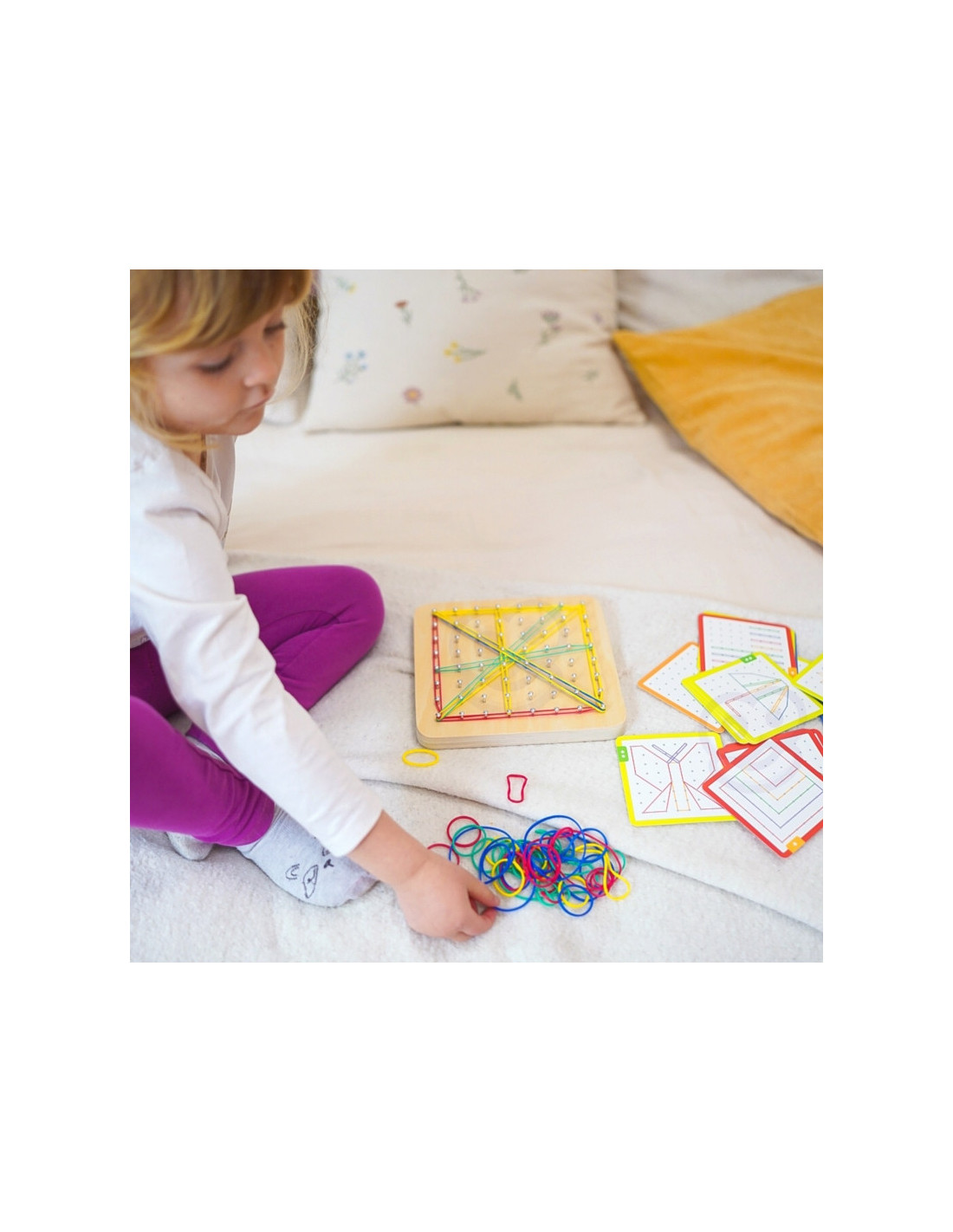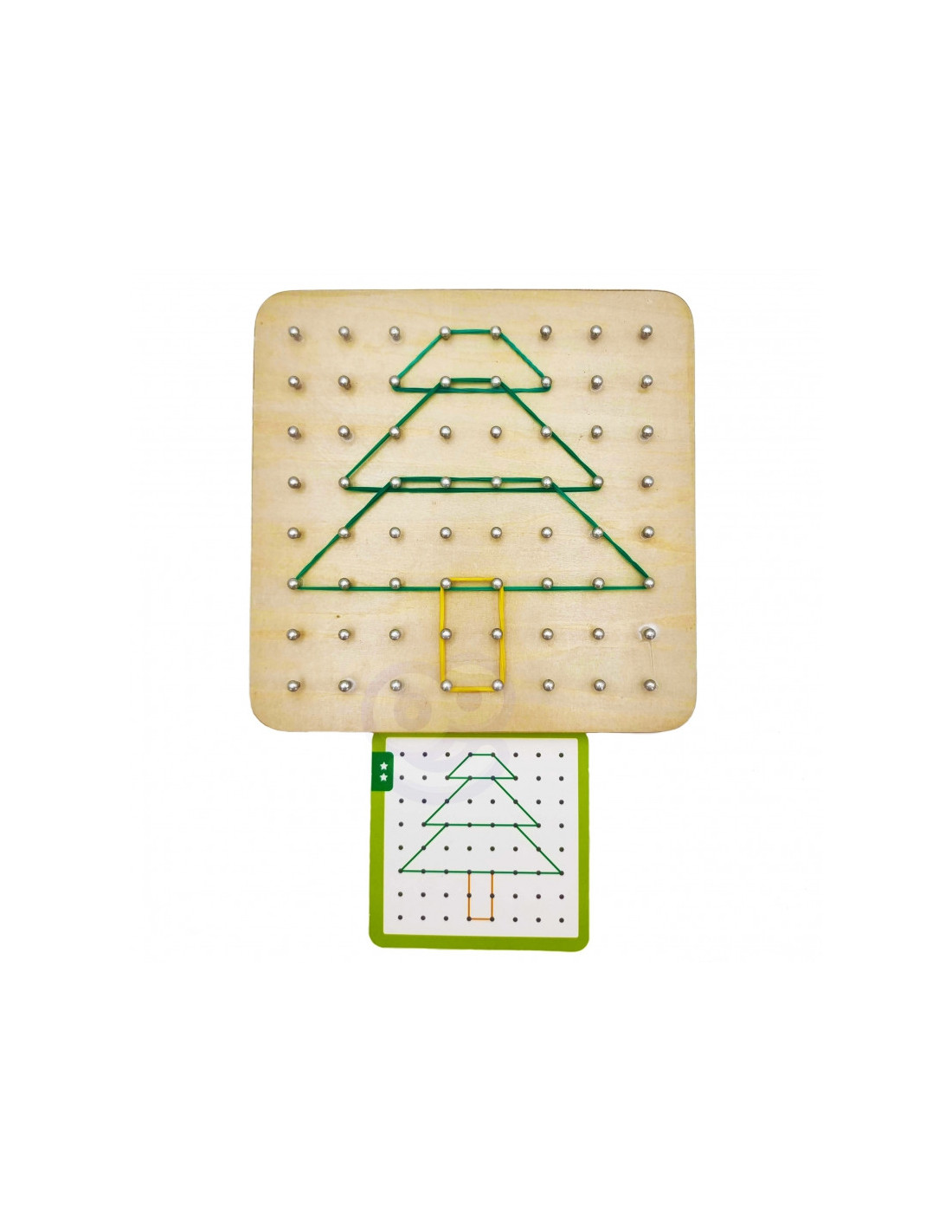 „WOOPIE“ medinis „GeoPlan“ dėlionė , priklausanti ekologiškai GREEN serijai, yra unikalus lavinamasis žaislas, derinantis mokymąsi su kūrybišku žaidimu! Ji padeda vaikams lavinti rankų įgūdžius , susikaupimą ir loginį mąstymą, kuriant įvairias formas ir raštus spalvingomis gumytėmis ant specialios lentos su kaiščiais. Taip pat galite įtraukti atminties žaidimo elementą arba leisti savo mažyliui kurti savo unikalias kompozicijas. Tai smagus žaidimas, kuris nenuobodžiaus ir ilgam užims dėmesį!