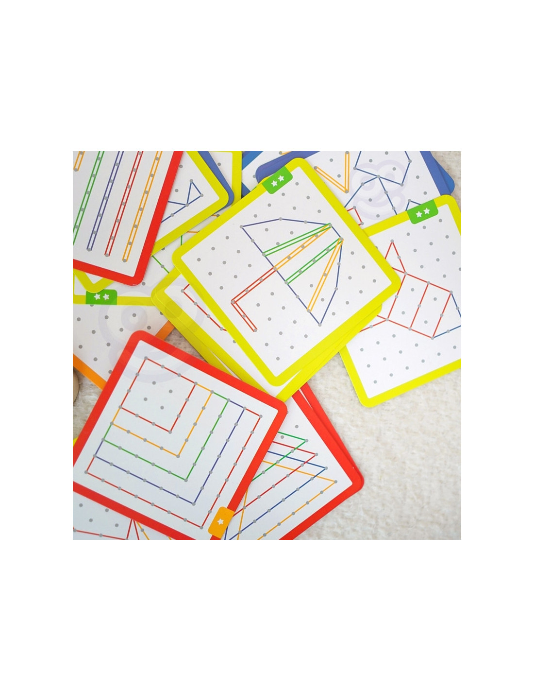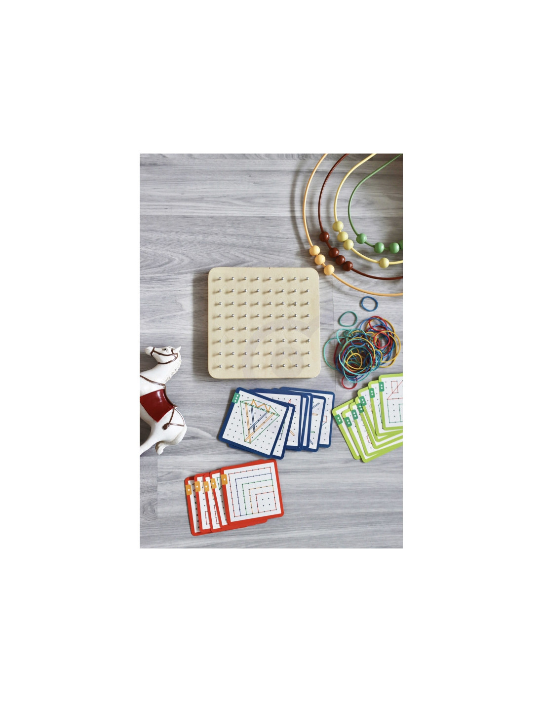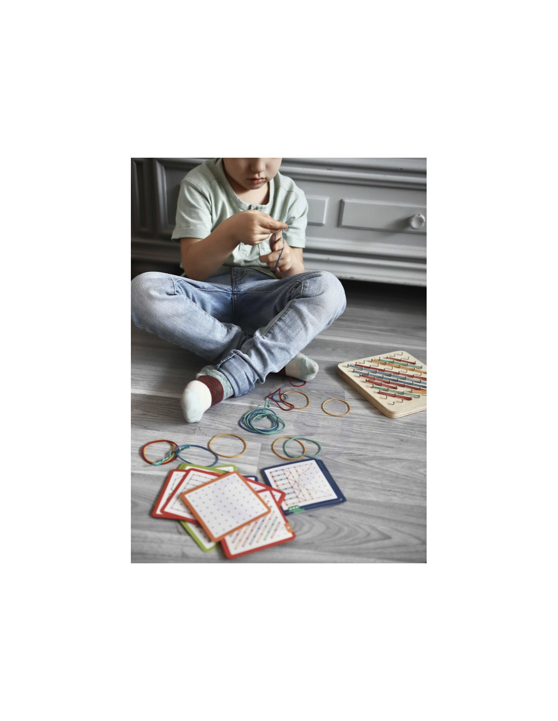 - - rinkinį sudaro: 48 gumytės, 20 dvipusių kortelių (40 raštų), medinė lenta su kaiščiais