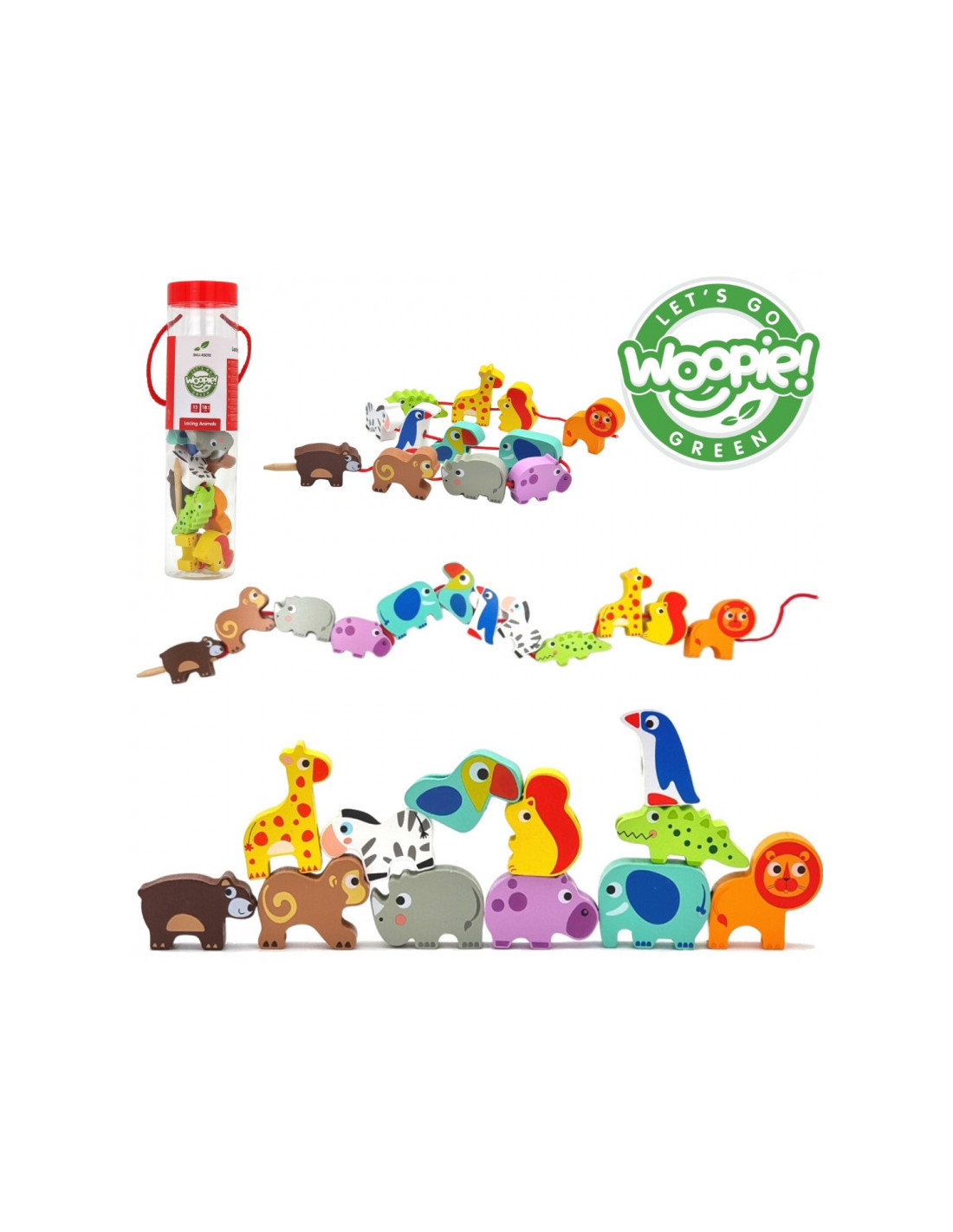 WOOPIE GREEN Medinės sriegimo kaladėlės Animals Safari ZOO 13 vnt.