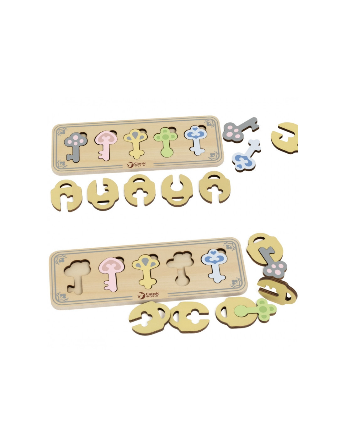 CLASSIC WORLD Montessori sensoriniai mediniai dėlionės raktai ir spynos