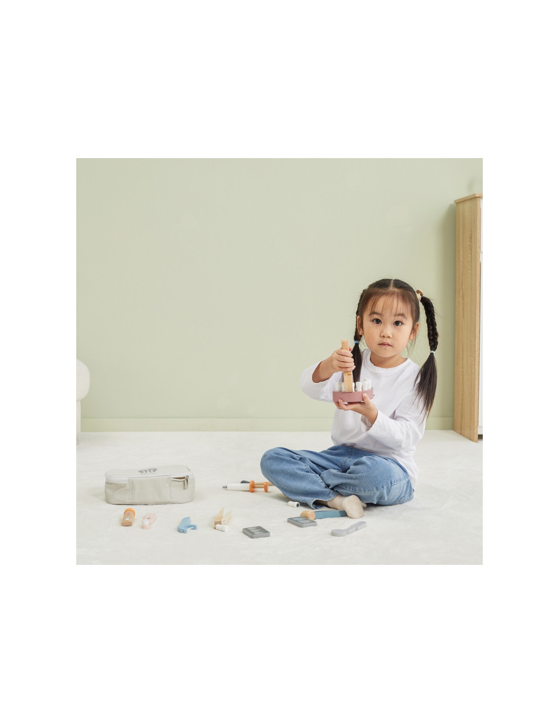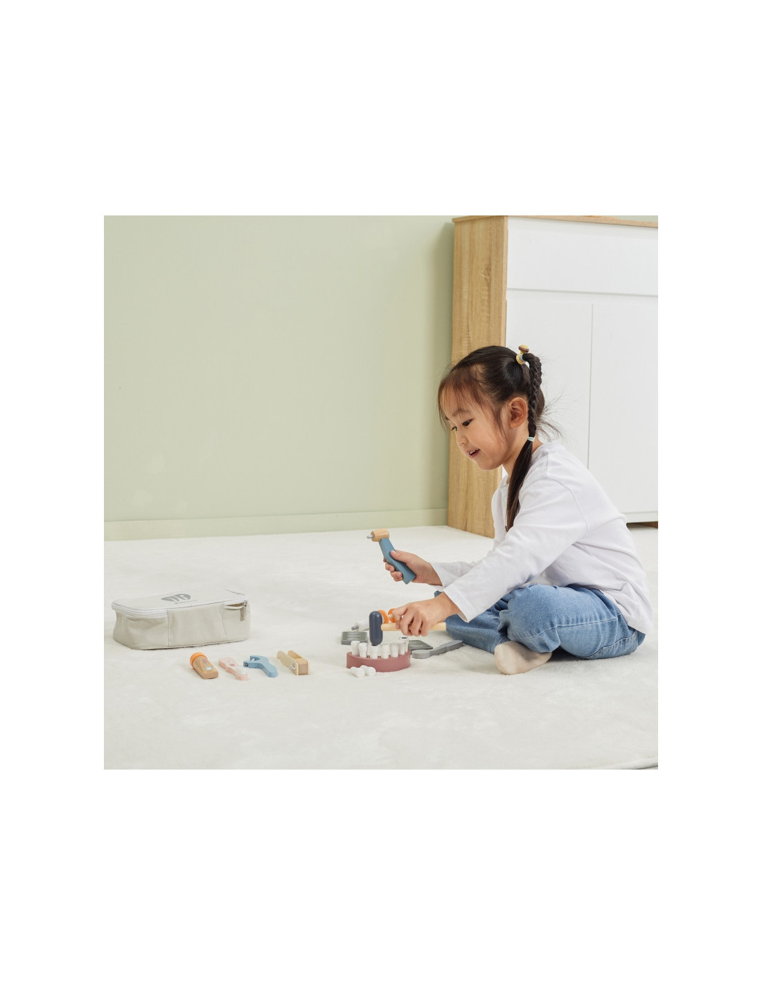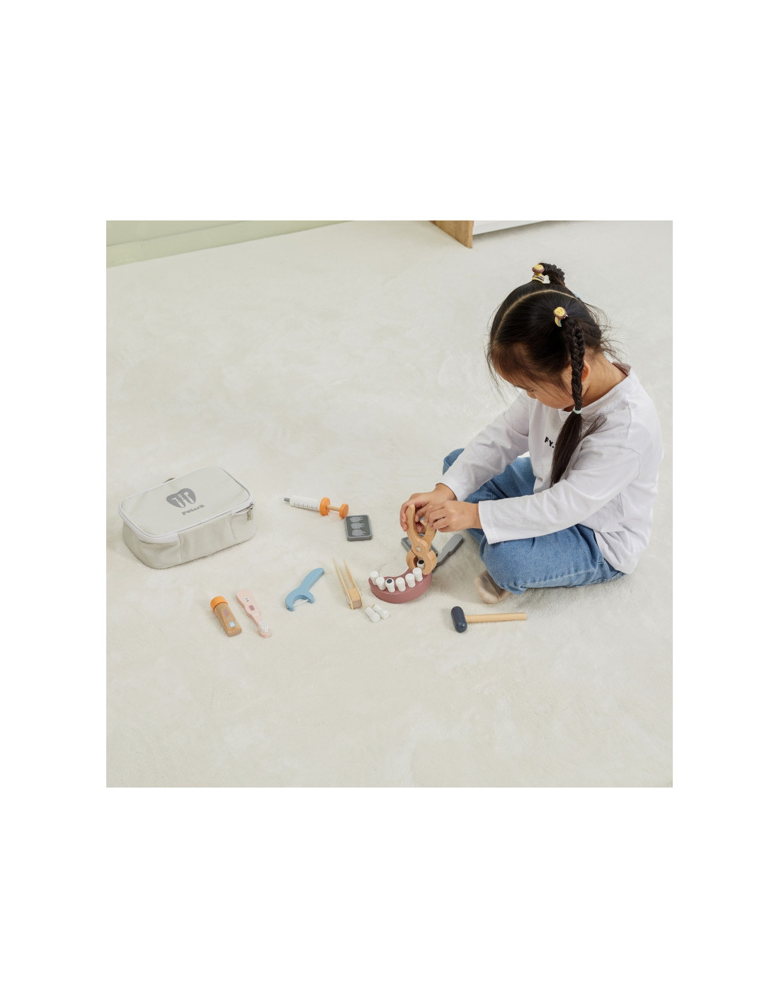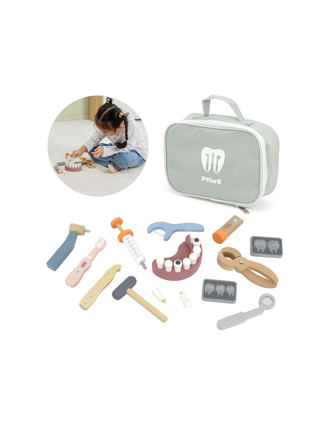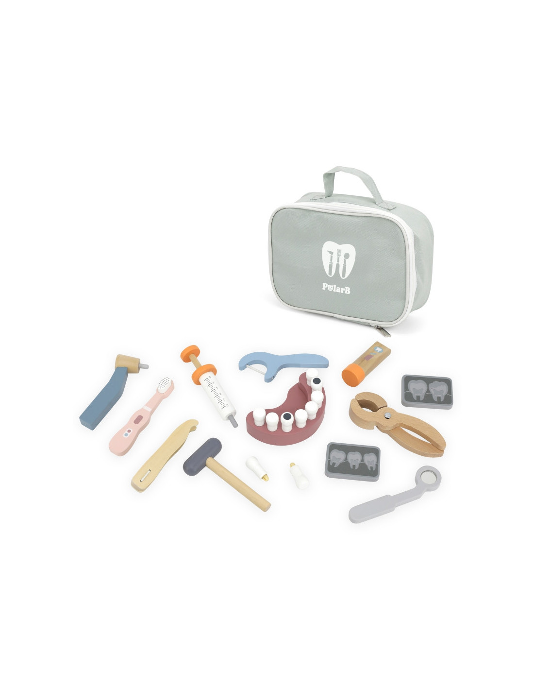 „Viga“ medinis odontologo rinkinys „PolarB“ yra vienas iš tų žaislų, kurie, žaisdami vaidmenimis, padės vaikams įveikti baimę ir įgyti pasitikėjimo savimi stresinėse situacijose, su kuriomis jie gali susidurti ateityje. Vizitai pas odontologą gali būti lengvesni ir malonesni, kai įveikiama odontologijos įrangos baimė. Rinkinį sudaro patogus krepšys su medinių žaislų pasirinkimu, įskaitant dantų rinkinį (įskaitant du papildomus), grąžtą, dantų ištraukiklius, dantų šepetėlį, dantų siūlą, pincetą, rentgeno nuotraukas, veidrodėlį, plaktuką ir dantų pastos tūbelę.