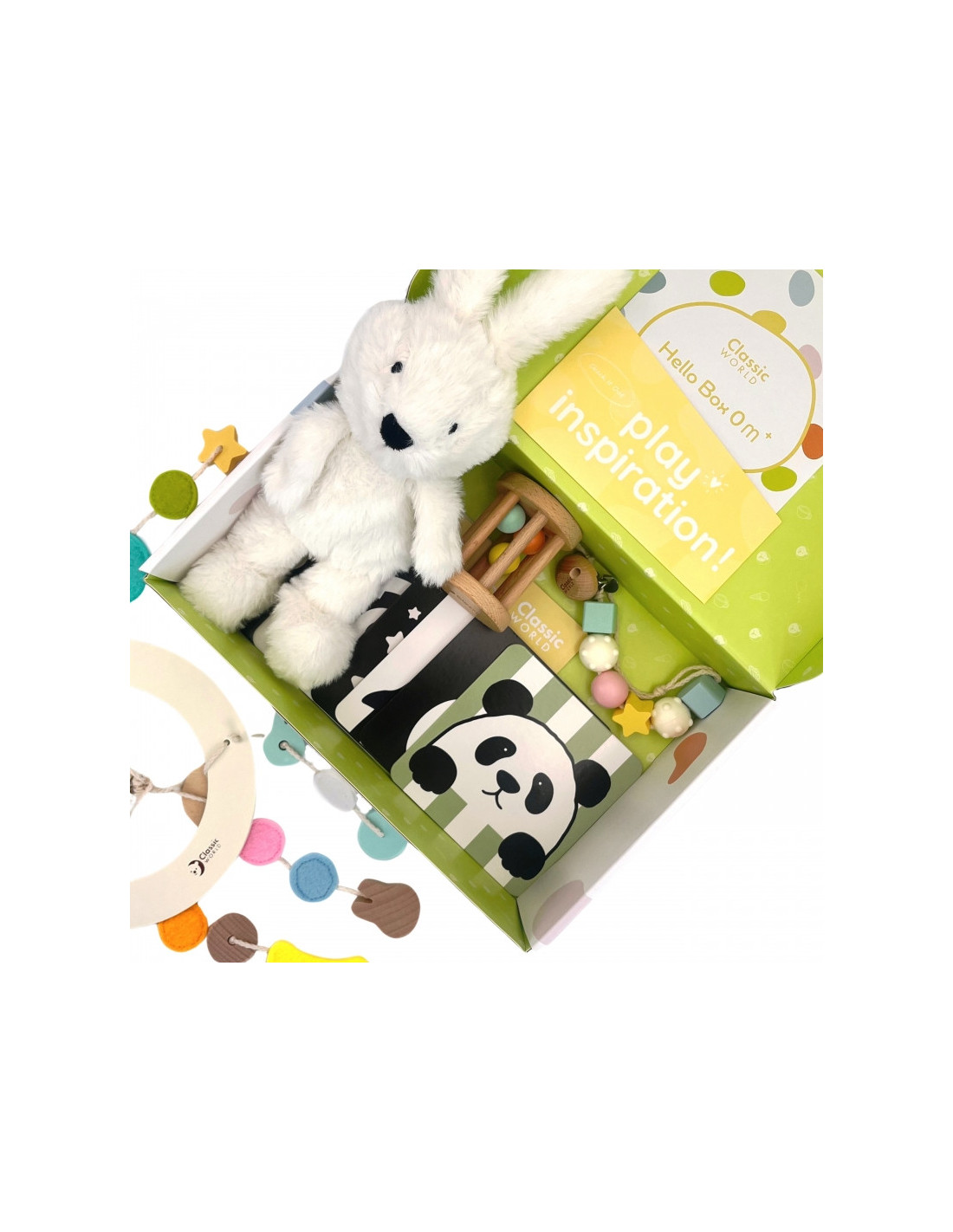 „CLASSIC WORLD“ dovanų rinkinys „Welcome Box“ – tai žavingas naujagimio dovanų rinkinys , puikiai tinkantis mažyliams nuo pirmųjų gyvenimo dienų . Jame yra 10 kruopščiai atrinktų, saugių ir pastelinių spalvų žaislų , kurie pradžiugins jūsų mažylį ir palaikys jo sensorinį bei motorinį vystymąsi. Rinkinys supakuotas gražioje, spalvingoje dėžutėje, todėl tai puiki dovana kūdikio sutiktuvių ar gimdymo proga.