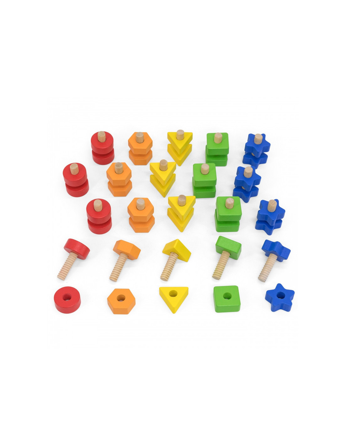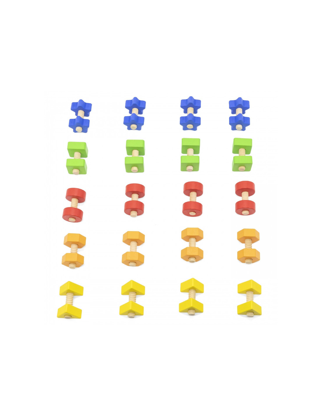 „Veržlės ir varžtai“ yra VIGA rankų miklumą lavinantis žaislas, kuriame reikia sukti ir atsukti spalvingas figūras. Vaikams labai smagu derinti ir maišyti detales, tuo pačiu mokant juos skaičiuoti , atpažinti spalvas ir formas . Sukimas ir atsukimas lavins jų rankų miklumą ir regimąją koordinaciją. Rinkinį sudaro 40 detalių, 20 porų veržlių ir varžtų 5 ryškių spalvų ir formų bei medvilninis maišelis patogiam laikymui.