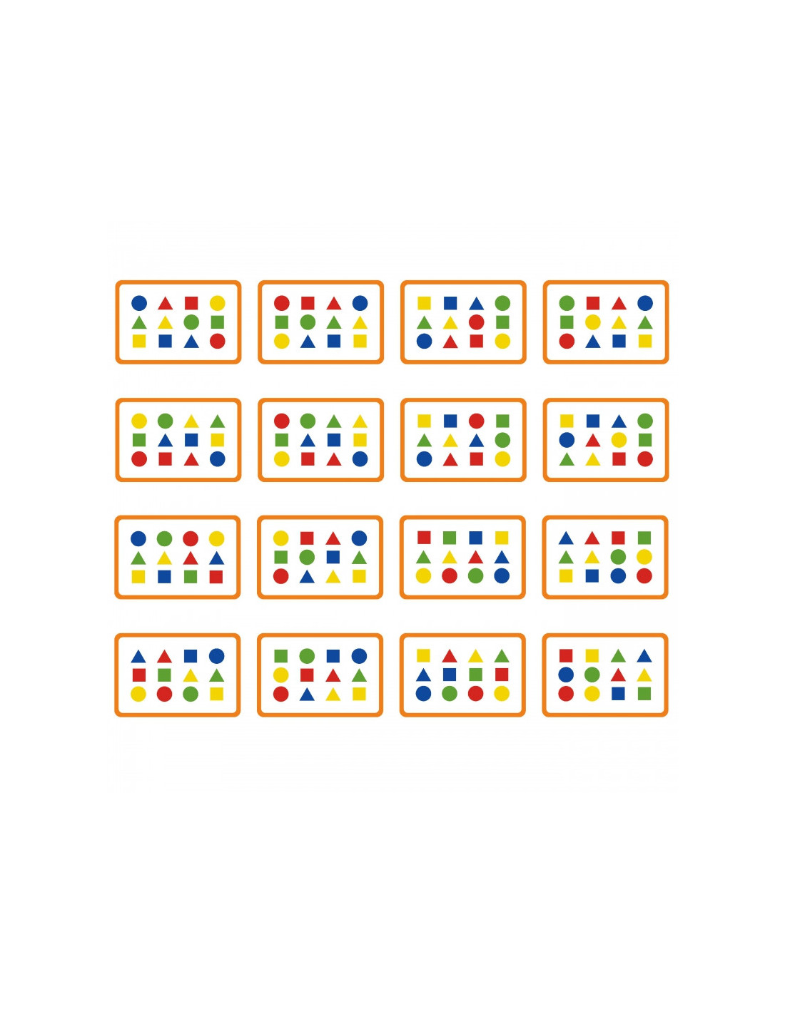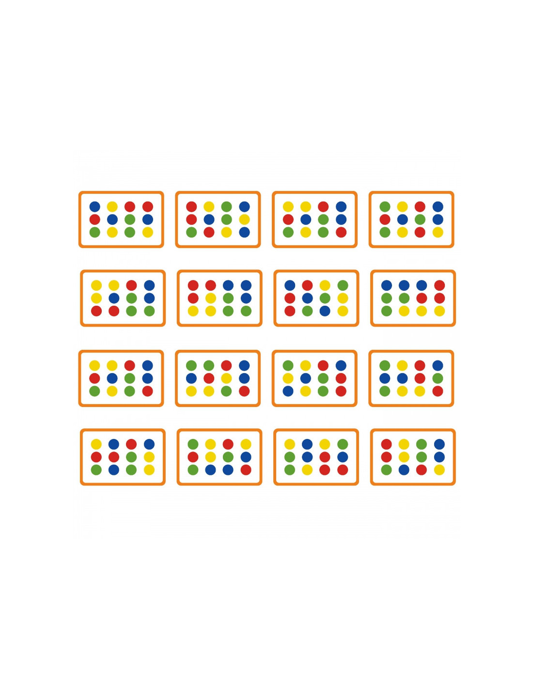 - - 12 spalvotų kaladėlių su spalvotomis figūrėlėmis kitoje pusėje