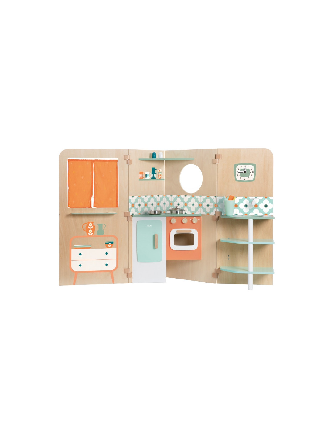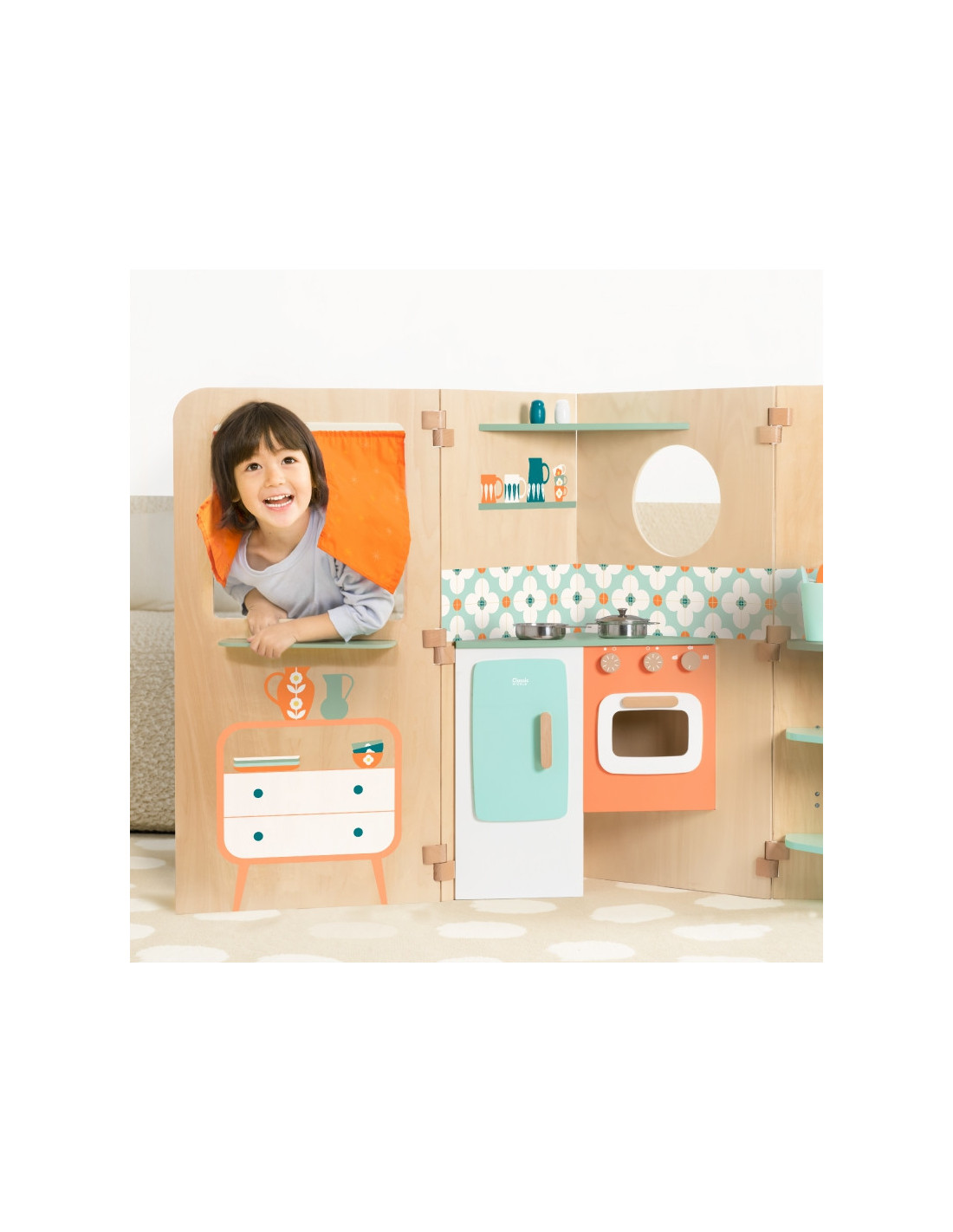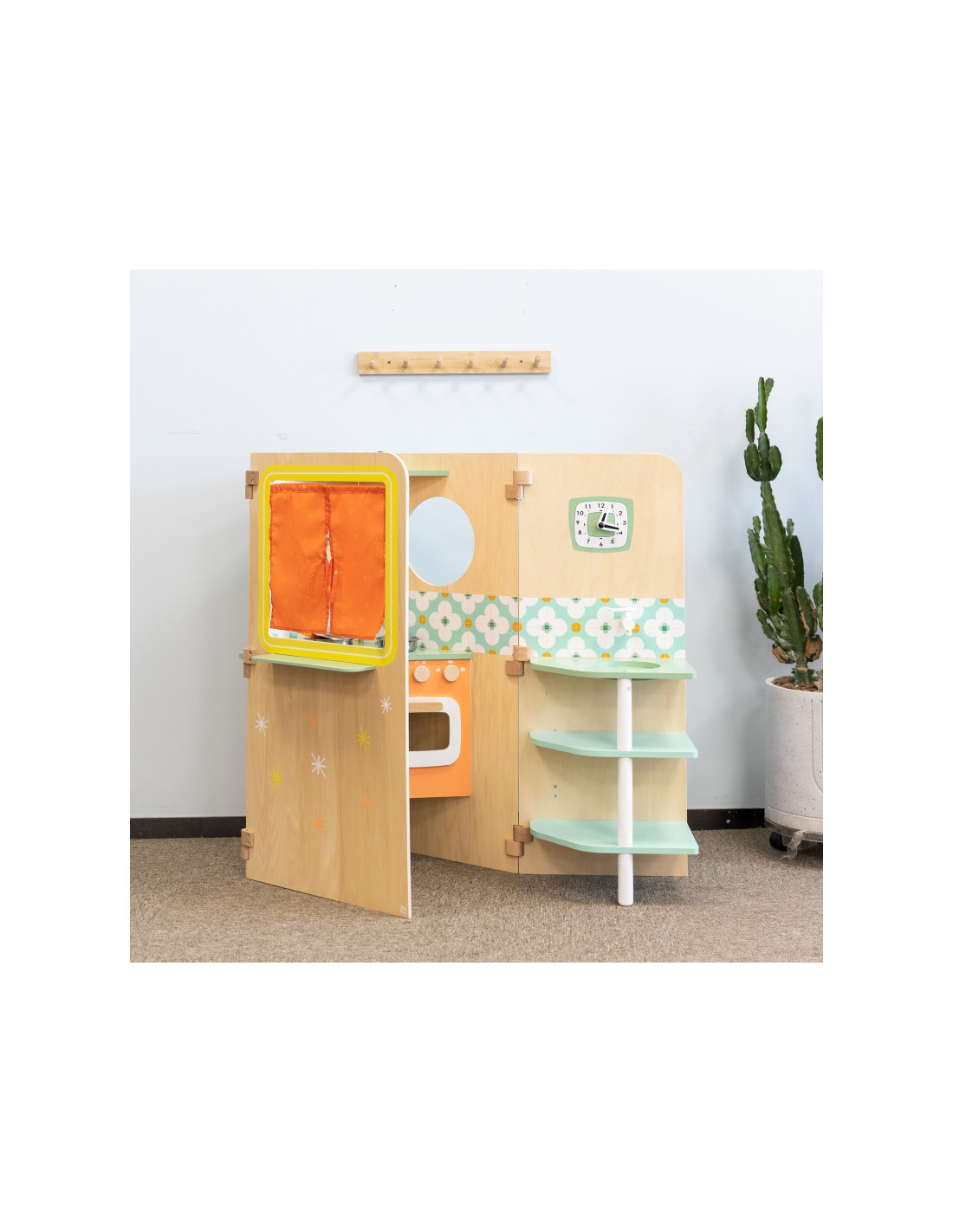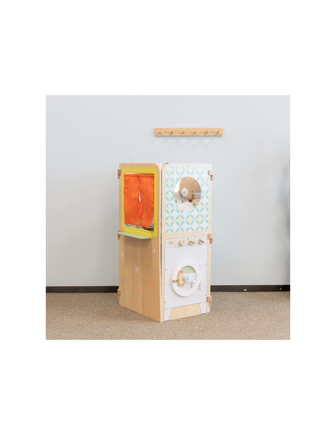 Daugiafunkcis sulankstomas žaidimų namelis iš CLASSIC WORLD siūlo neribotas žaidimo galimybes. Jame yra įvairios žaidimų erdvės, tokios kaip virtuvė , skalbykla su skalbimo mašina , magnetinė lenta ir langas . Jį taip pat galima naudoti kaip lėlių teatrą . Vaikai gali žaisti „lauke“ ir „viduje“, žiūrėdami pro langą. Sulankstomas žaidimų namelis yra labai kompaktiškas ir dėl lengvos atidarymo bei sulankstymo sistemos užima mažai vietos.