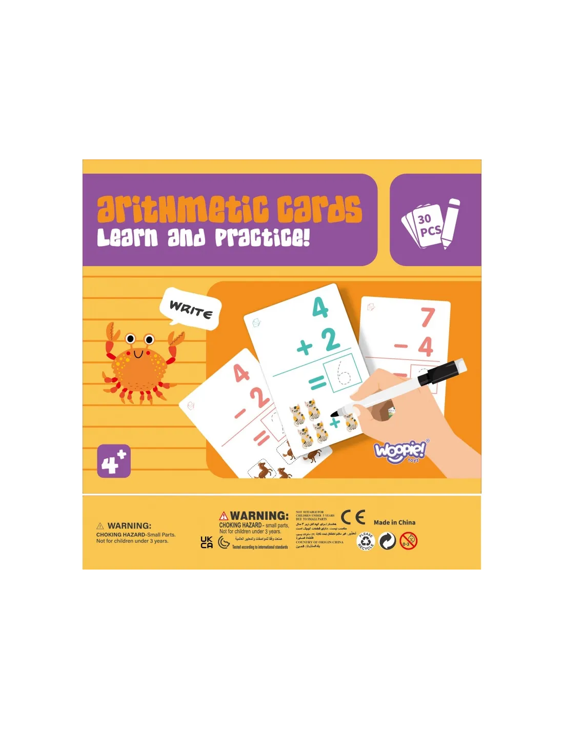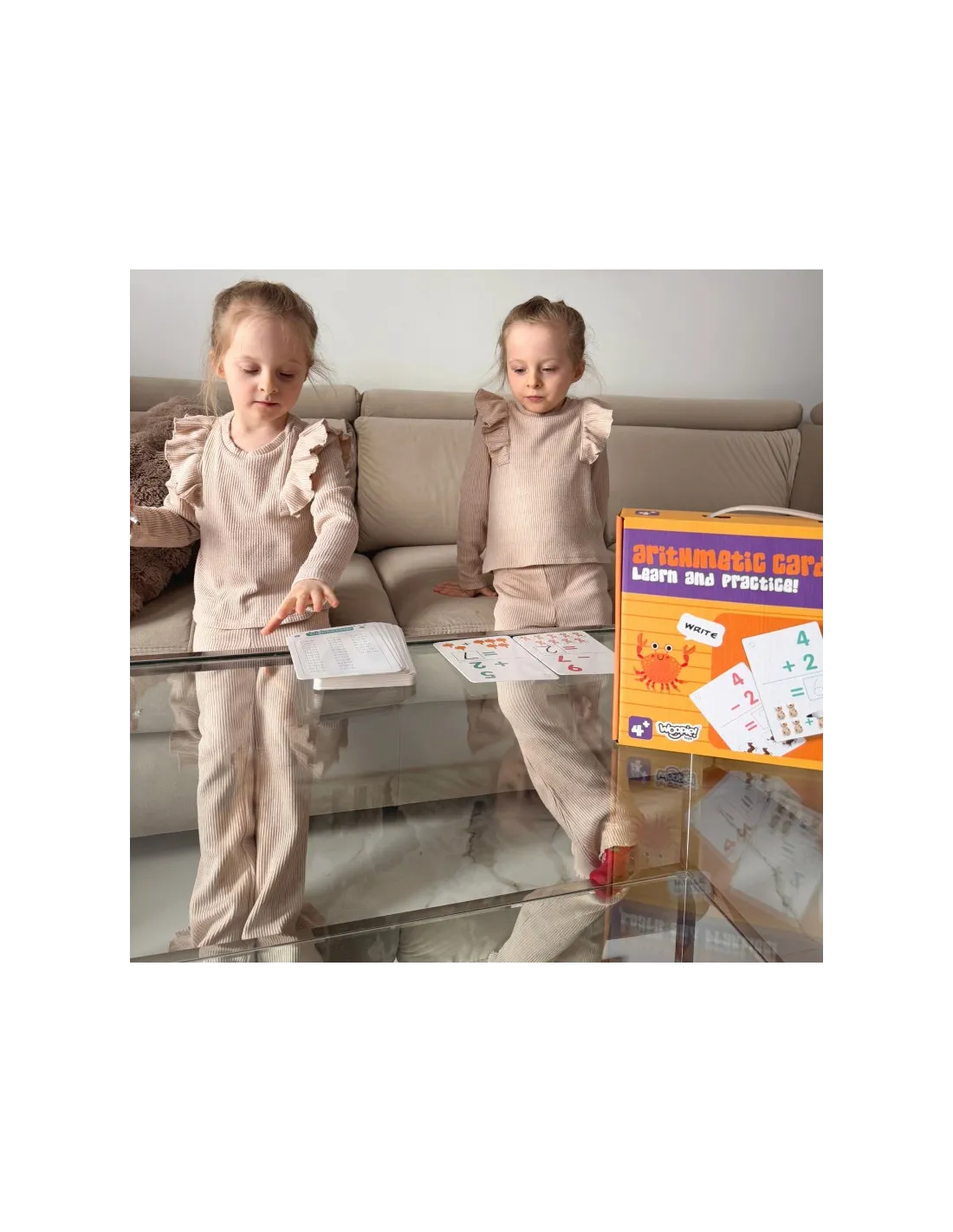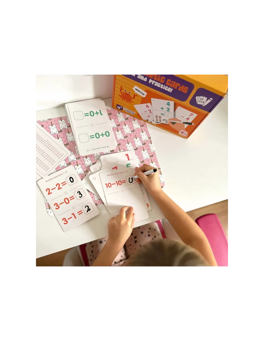 WOOPIE skaičiavimo kortelės – puiki dovanos idėja mūsų mažyliams. Šį fantastišką rinkinį sudaro 30 dvipusių kortelių , kurios skatina vaikus mokytis skaičių ir skaičiuoti . Rinkinys sukurtas taip, kad vaikai galėtų praktikuotis skaičiuoti pakartotinai, dėka pridedamo ištrinamo žymeklio . Kortelės yra suskirstytos į atimties ir sudėties dalis. Siekiant palengvinti mokymąsi, kortelės turi du lygius – pradžioje vaikai gali naudoti pusę, kurioje matematiniai veiksmai papildyti paveikslėliais , kuriuos jie gali naudoti rezultatui apskaičiuoti. Kitoje kortelių pusėje pateikiami skaičiavimai be paveikslėlių pagalbos . Šio mokymosi modulio dėka jūsų vaikas nejaus spaudimo dėl naujų žinių sudėtingumo , o matematikos uždavinių sprendimas bus grynas malonumas ! Norėdami motyvuoti savo mažylį mokytis, po kiekvieno teisingai išspręsto pavyzdžio kortelės kampe galite nupiešti širdelę!