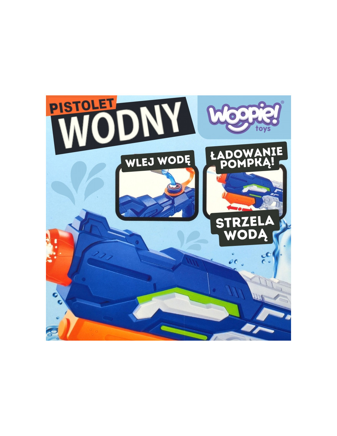 Pistolet na Wodę od marki WOOPIE to zabawka wodna przeznaczona dla dzieci, która zapewnia wiele godzin rozrywki na świeżym powietrzu, szczególnie podczas ciepłych dni. Główna cecha wyróżniająca ten wodny blaster to mechanizm napędowy oparty na ciśnieniu powietrza. Dziecko pompuje wodę do zbiornika, wytwarzając w ten sposób ciśnienie, które umożliwia wystrzeliwanie strumienia wody na dużą odległość aż do 8 m. Pistolet na wodę to świetna zabawka, która dostarcza dzieciom wiele radości, jednocześnie promując aktywność fizyczną i interakcje społeczne