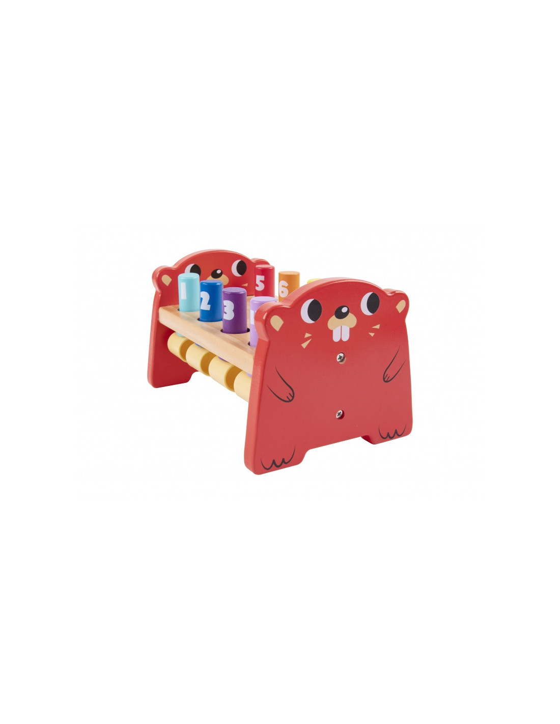- - Zestaw zawiera drewnianą ławeczkę, 8 kolorowych kołków oraz drewniany młotek