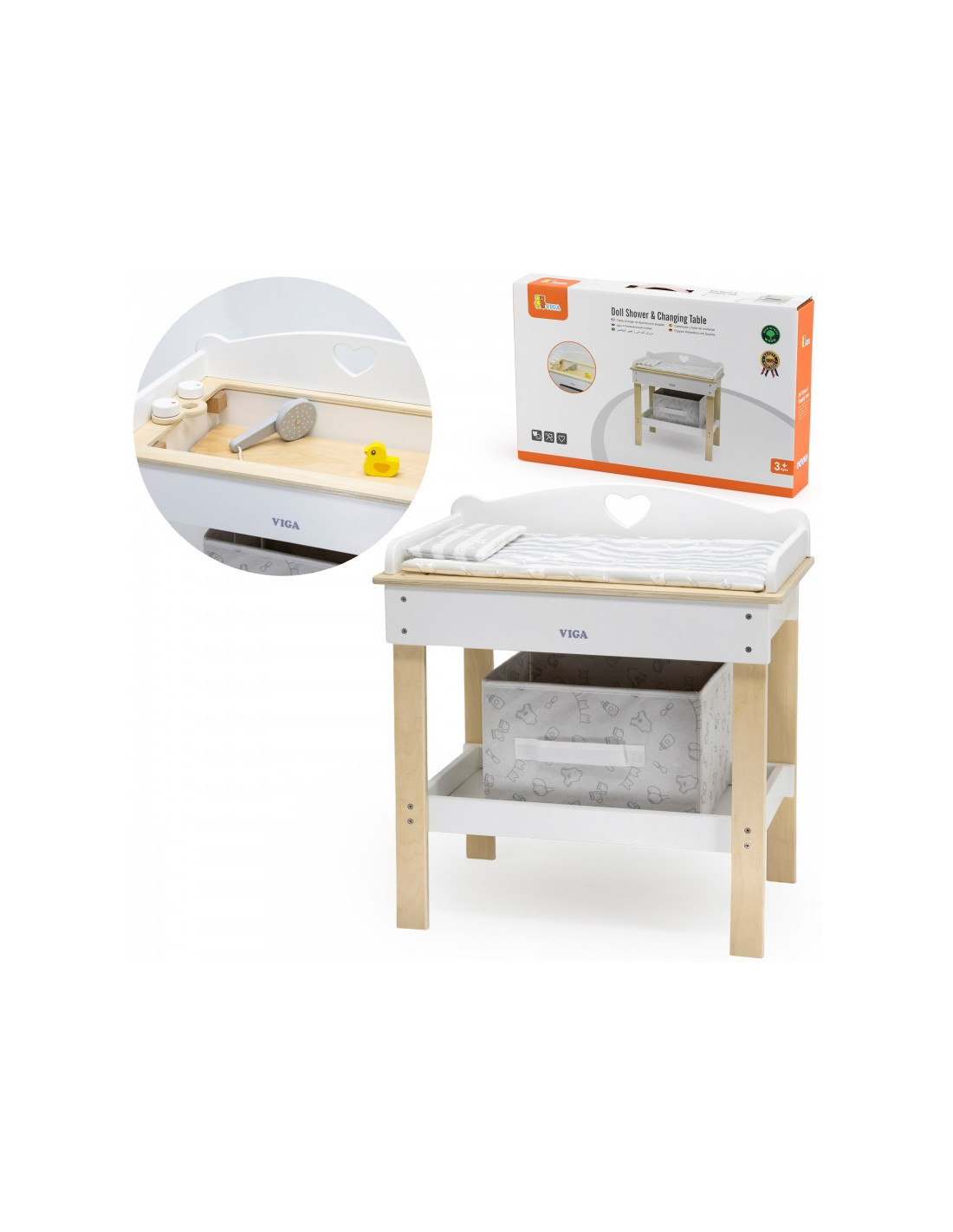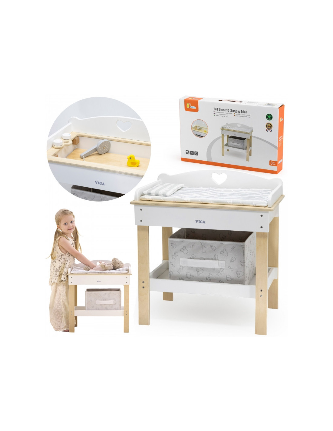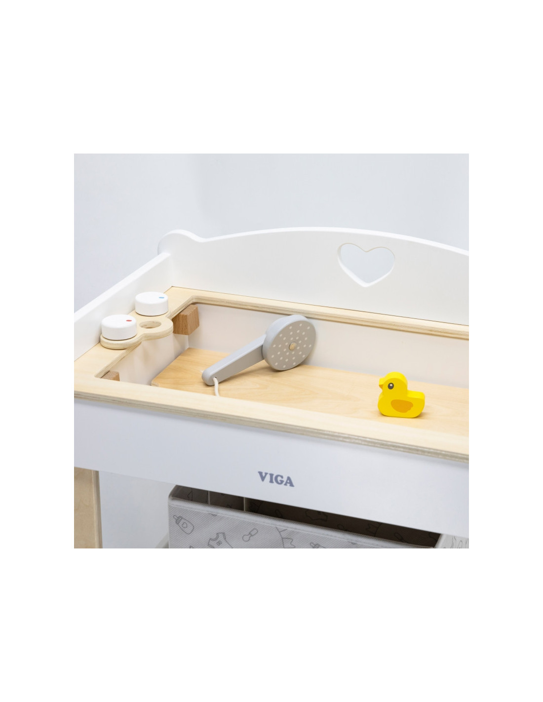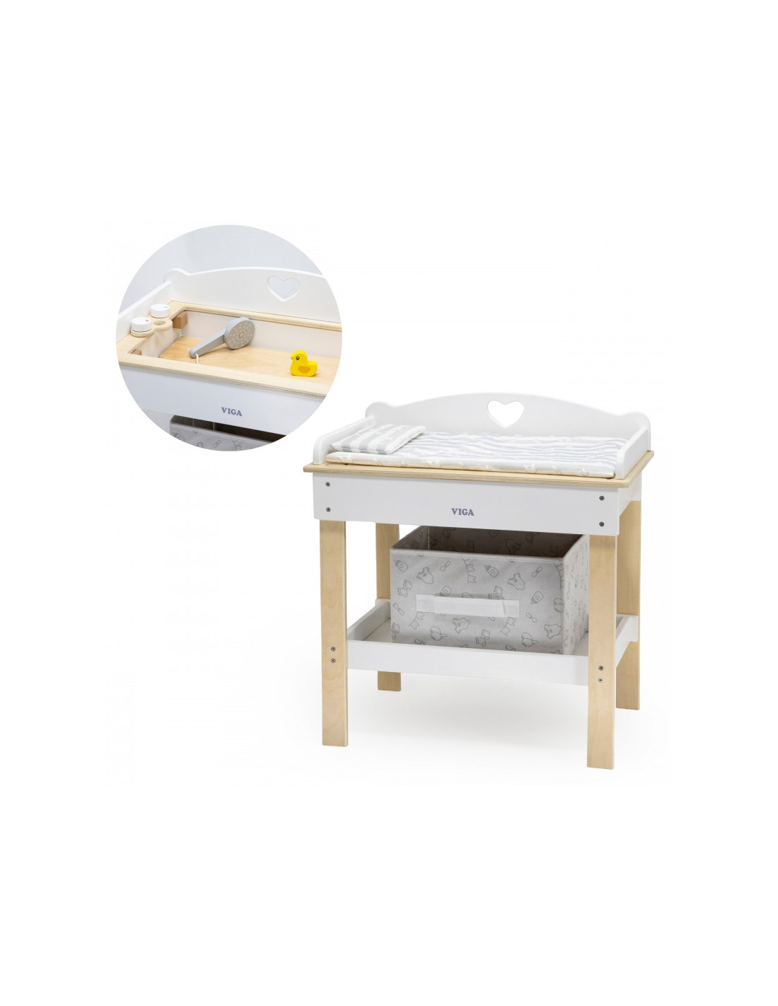 VIGA medinis persirengimo stalas 2in1 lėlės vonia