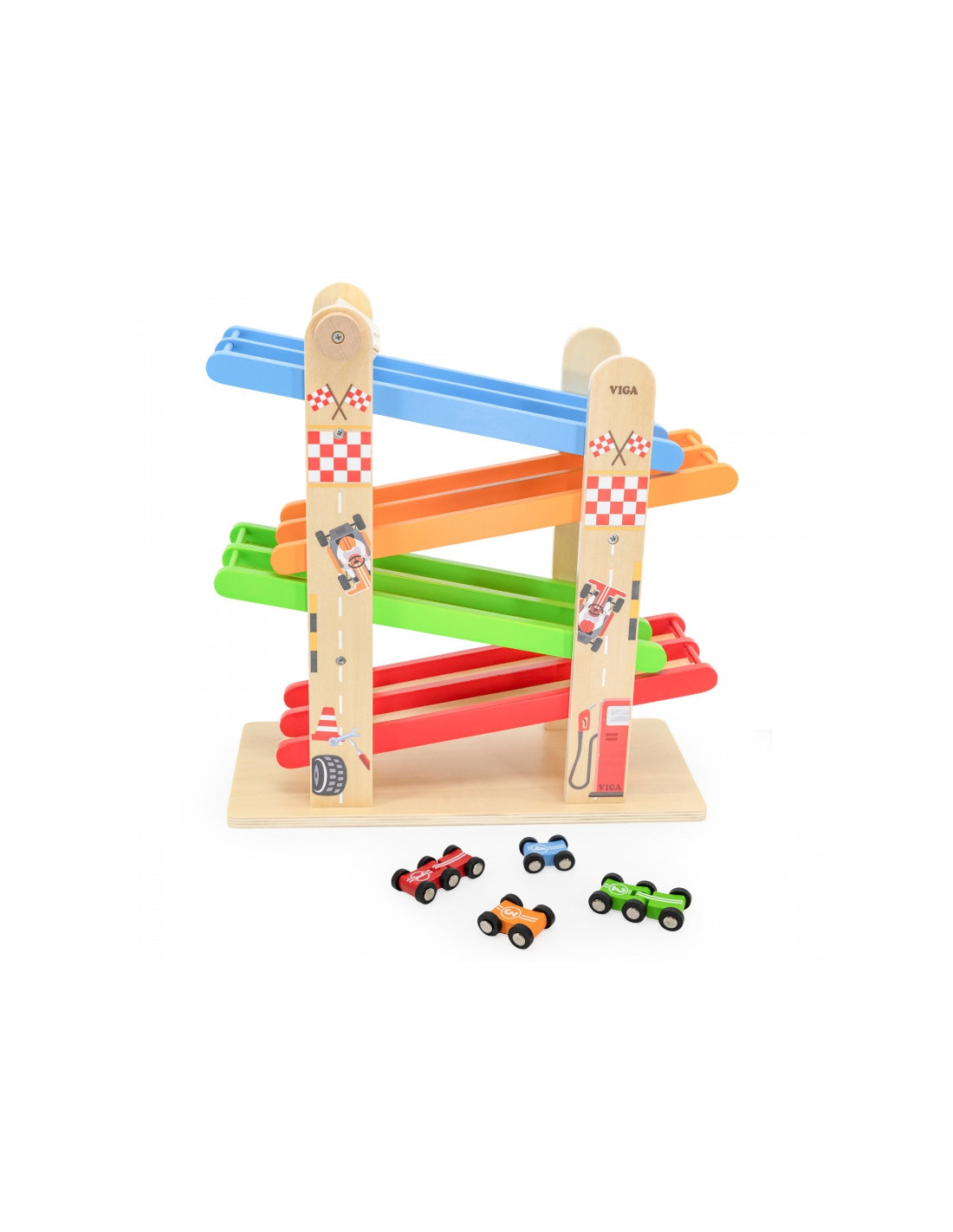 - - zestaw zawiera tor oraz 4 kolorowe samochodziki