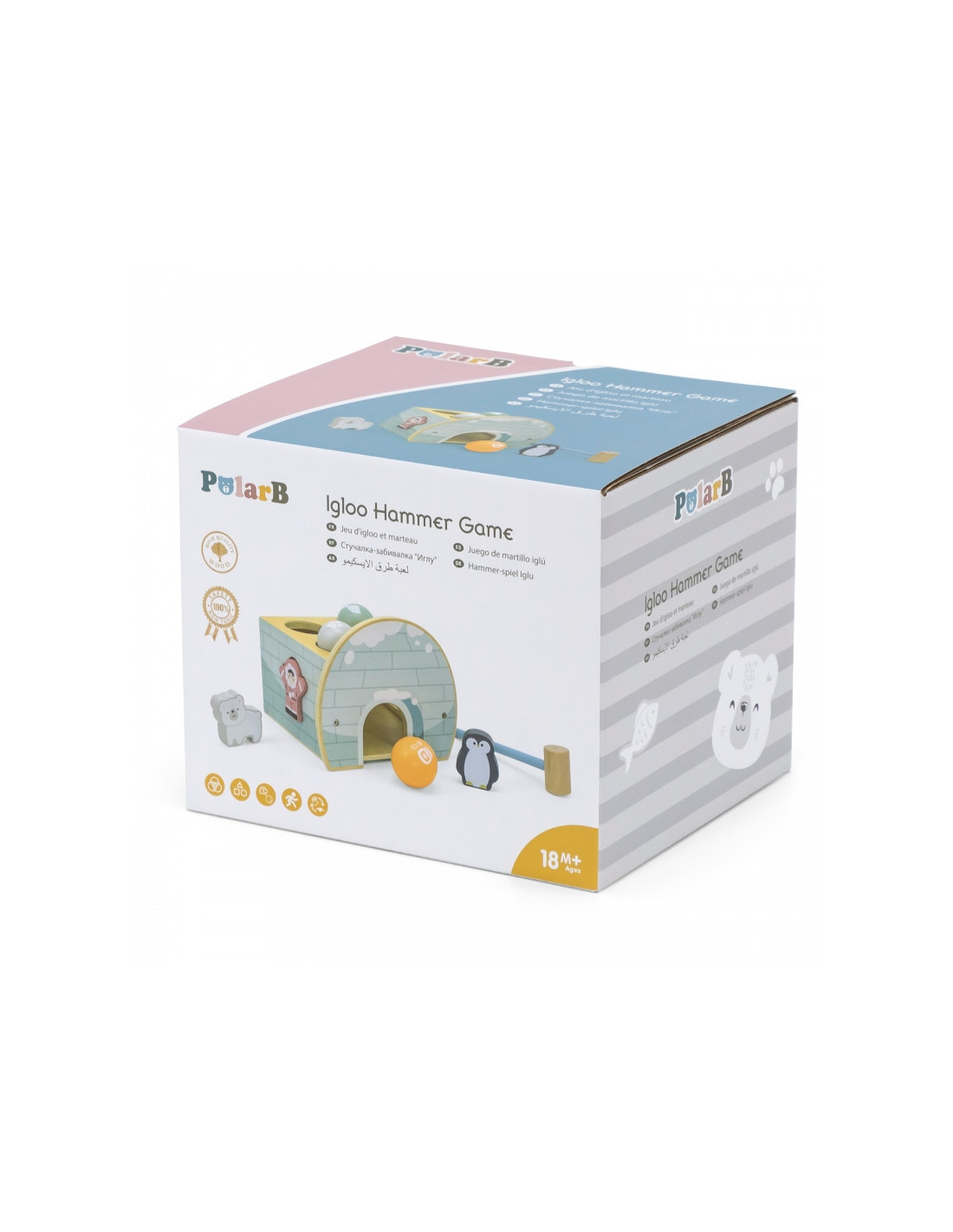 Igloo Pastelowy Przebijak od firmy Viga to zabawka którą pokocha każde dziecko. Łączy ona ze sobą wiele funkcji: wbijaka kuleczek, sortera oraz zabawy figurkami. Wbite kuleczki wylatują przez drzwi Igloo. W przypadku, gdyby pojawiła się trudność przy wyciągnięciu klocków czy innych elementów ze środka igloo jest możliwość odkręcenia przedniego panelu, by ułatwić sobie dostęp do środka. Dziecko bawiąc się rozwija precyzję ruchów rączek, zręczność oraz coraz lepiej rozróżnia kolory, a w przyszłości nabyta precyzja ruchów i zręczność ułatwi dziecku naukę pisania.