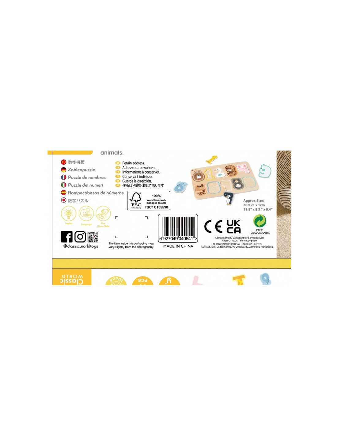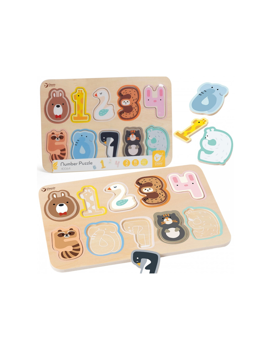 CLASSIC WORLD Montessori medinė skaičių dėlionė 11 vnt.