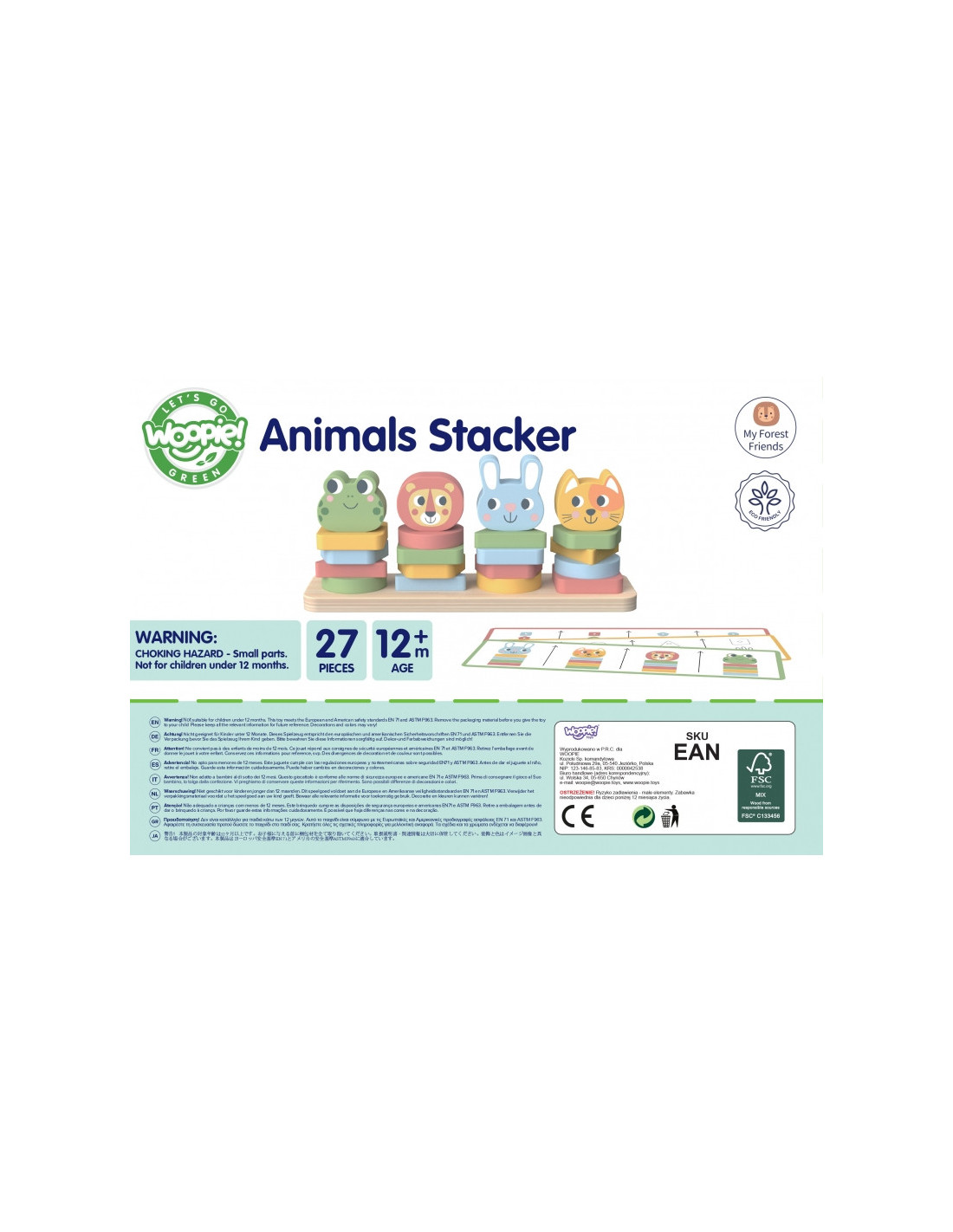 WOOPIE GREEN Montessori dėlionė piramidė gyvūnai 27 vnt. FSC