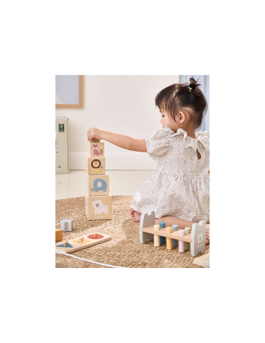 - piramidka sorter kształtów – 5 klocków do układania, które pomagają w zrozumieniu pojęcia wielkości i liczby