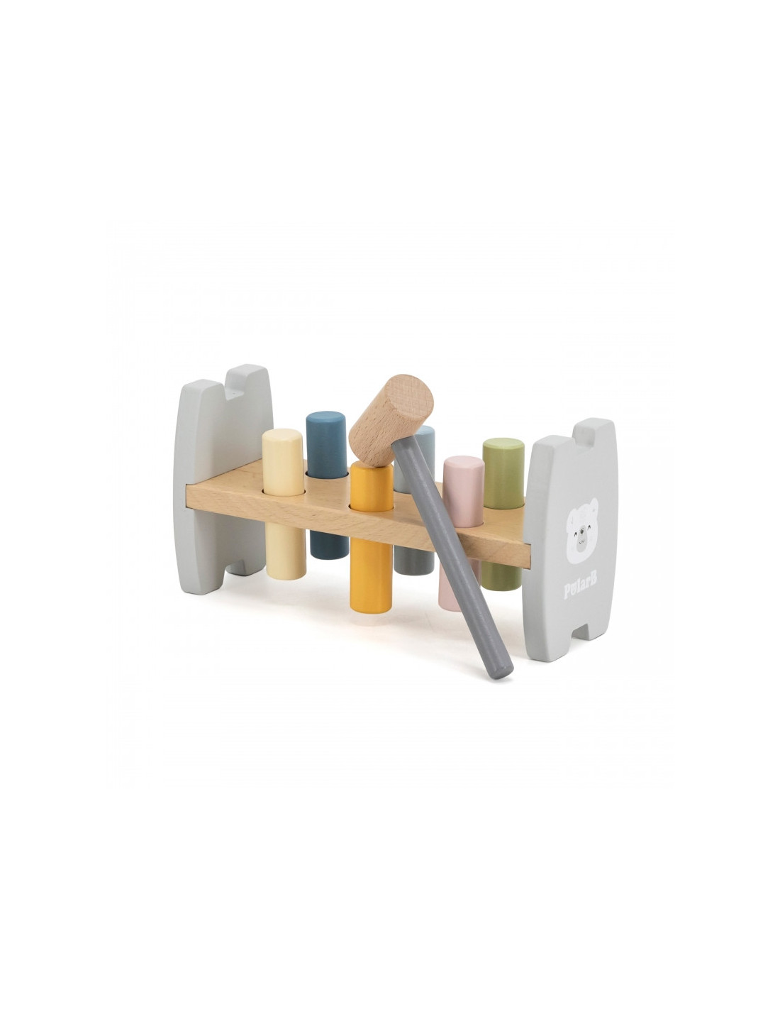 - drewniana przebijanka – kolorowa ławeczka z 6 kołkami i młoteczkiem, która rozwija elastyczność nadgarstka i koordynację ruchową