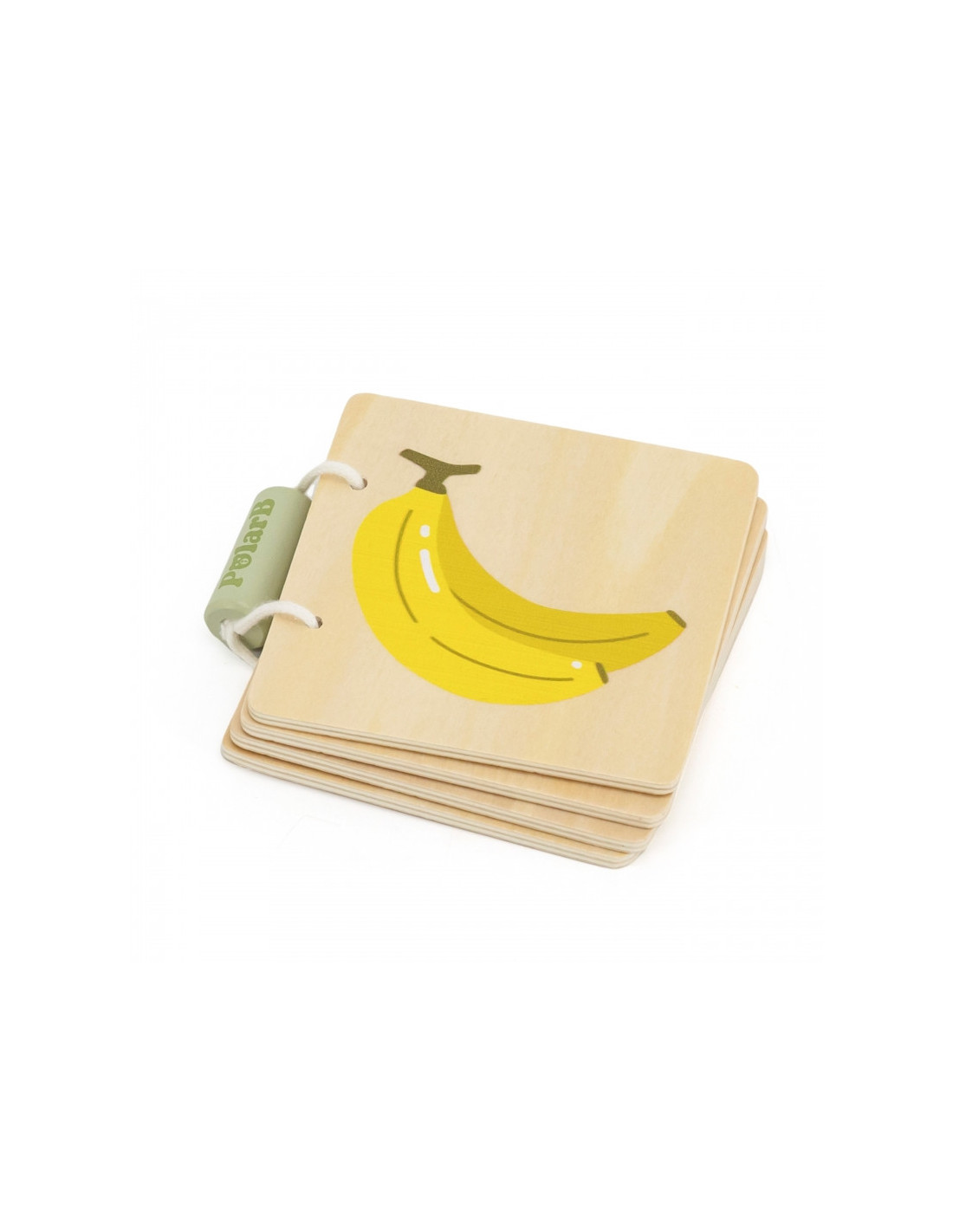 książeczka drewniana (owoce) – kolorowa książeczka, która uczy o najważniejszych owocach, takich jak banany, gruszki, arbuzy czy jabłka