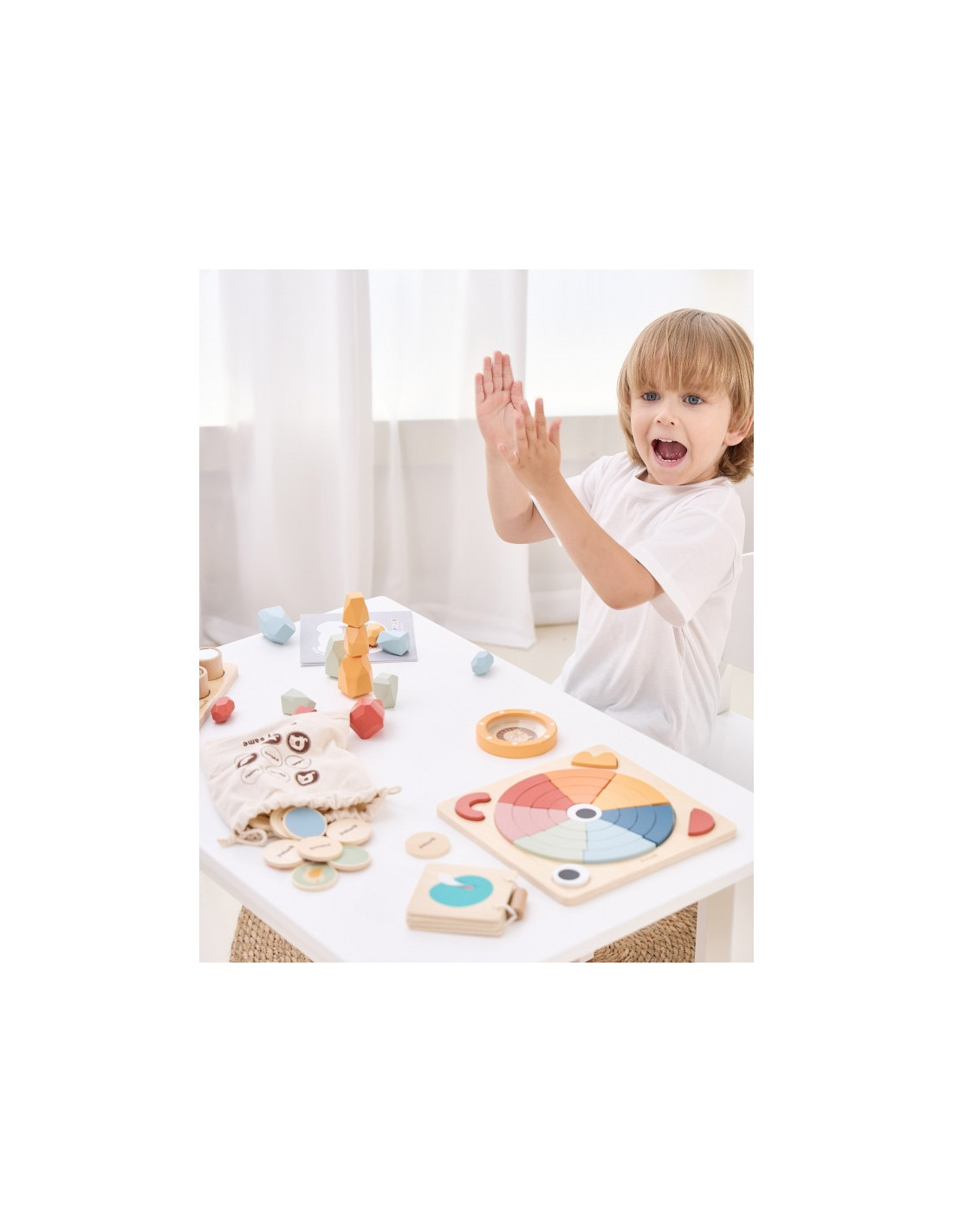 - puzzle okręgowe – rozwijające kreatywność i umiejętności logicznego myślenia, zachęcające dzieci do tworzenia różnych wzorów