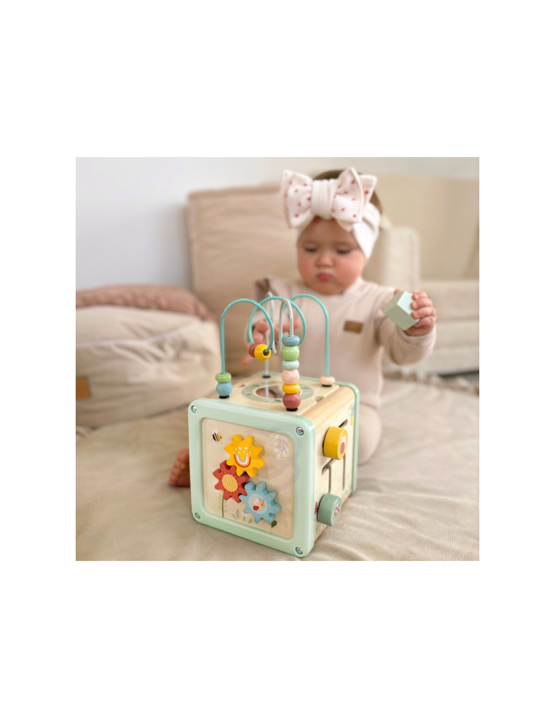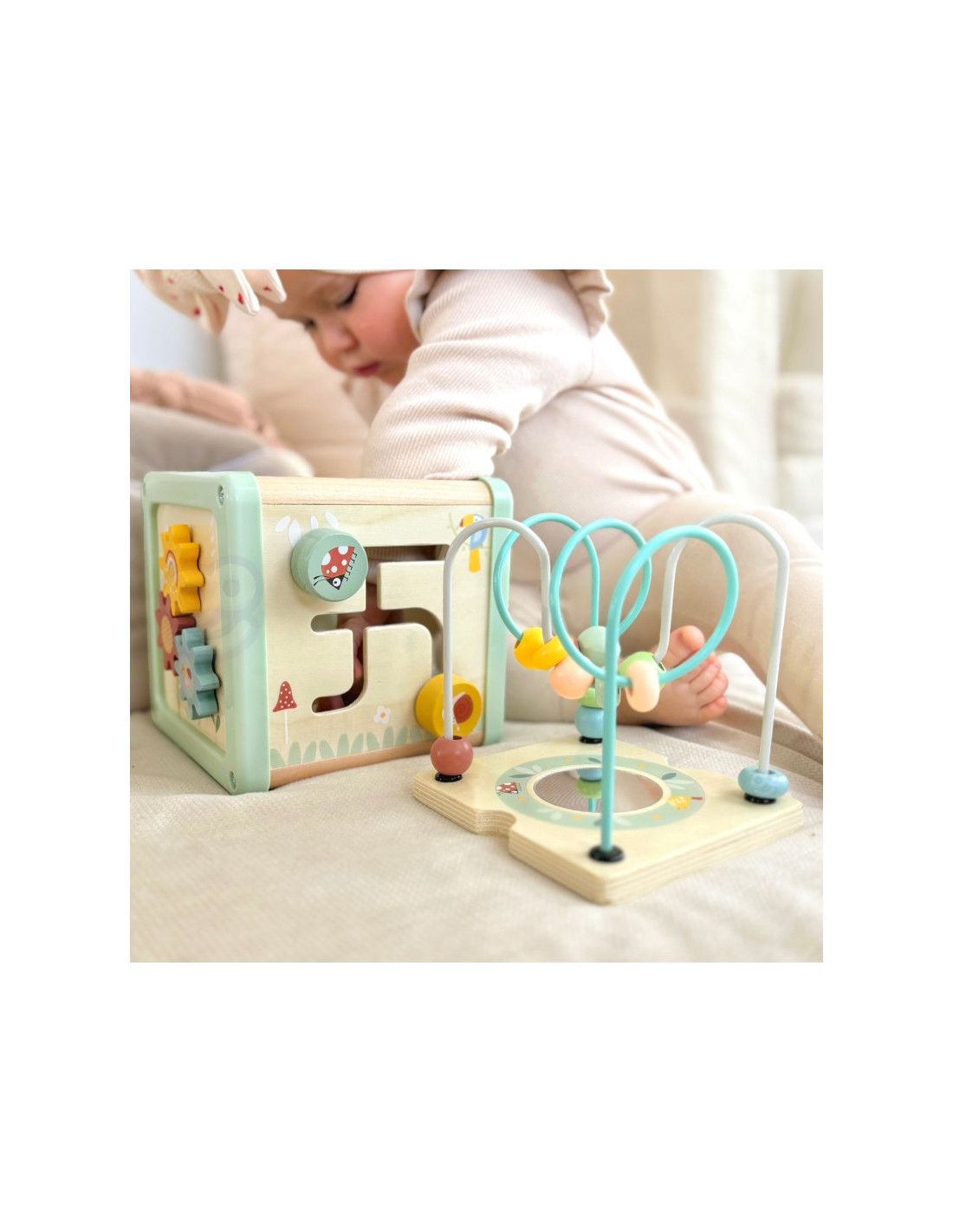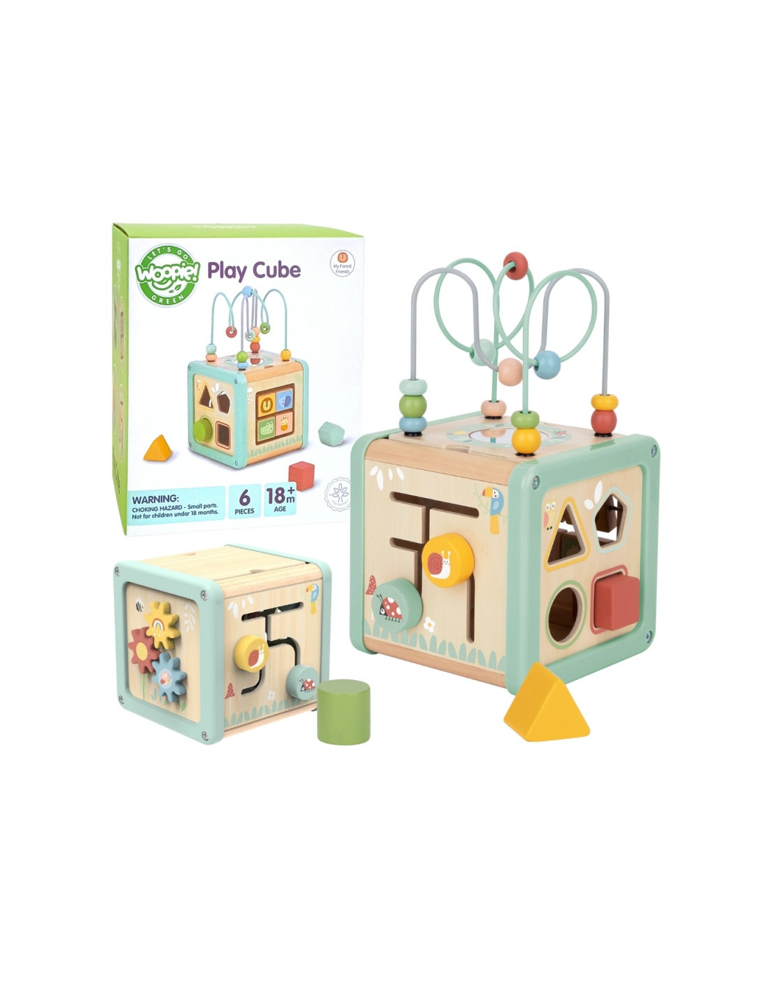 WOOPIE GREEN medinis veiklos kubas daugiafunkcis edukacinis rūšiavimo įrenginys