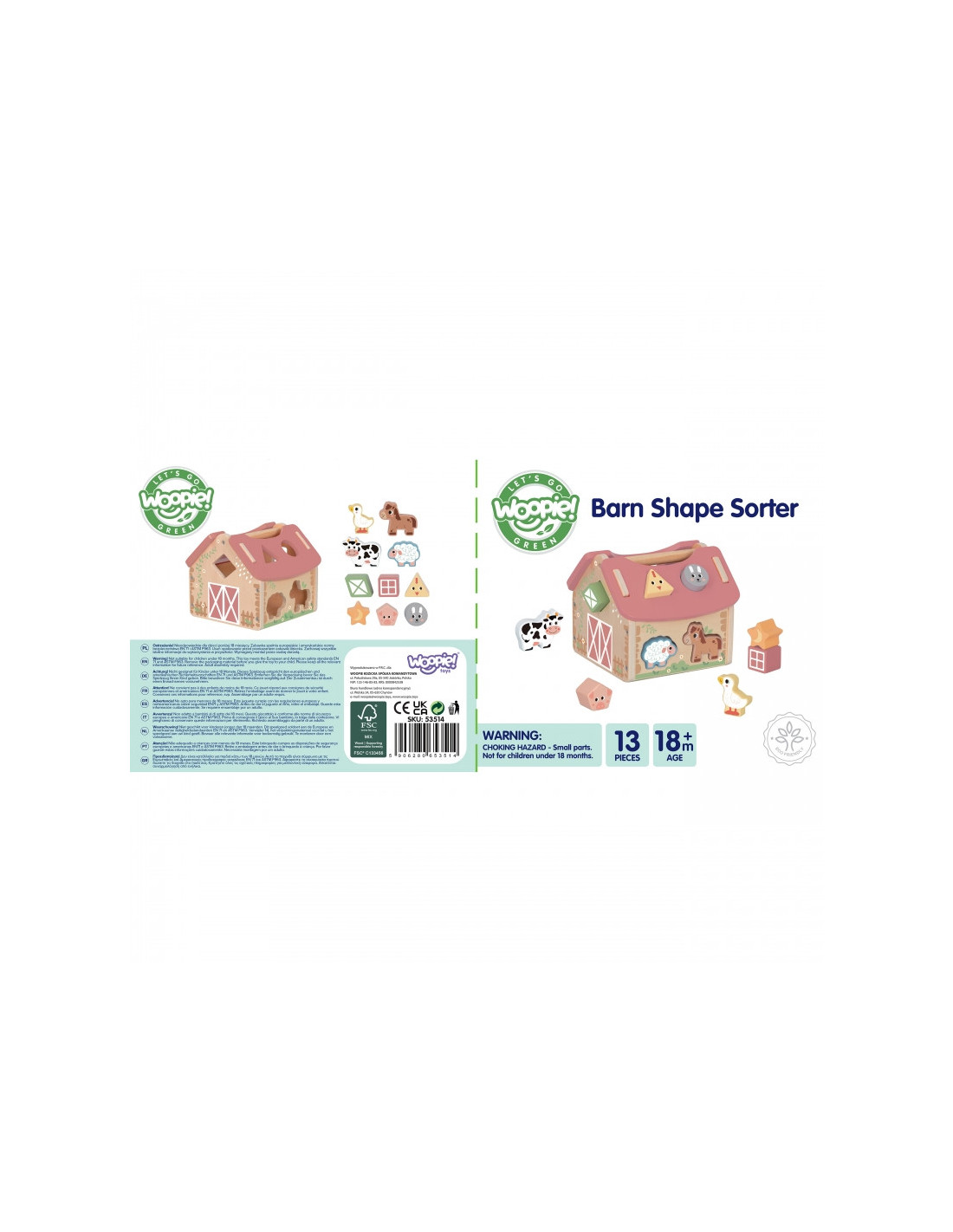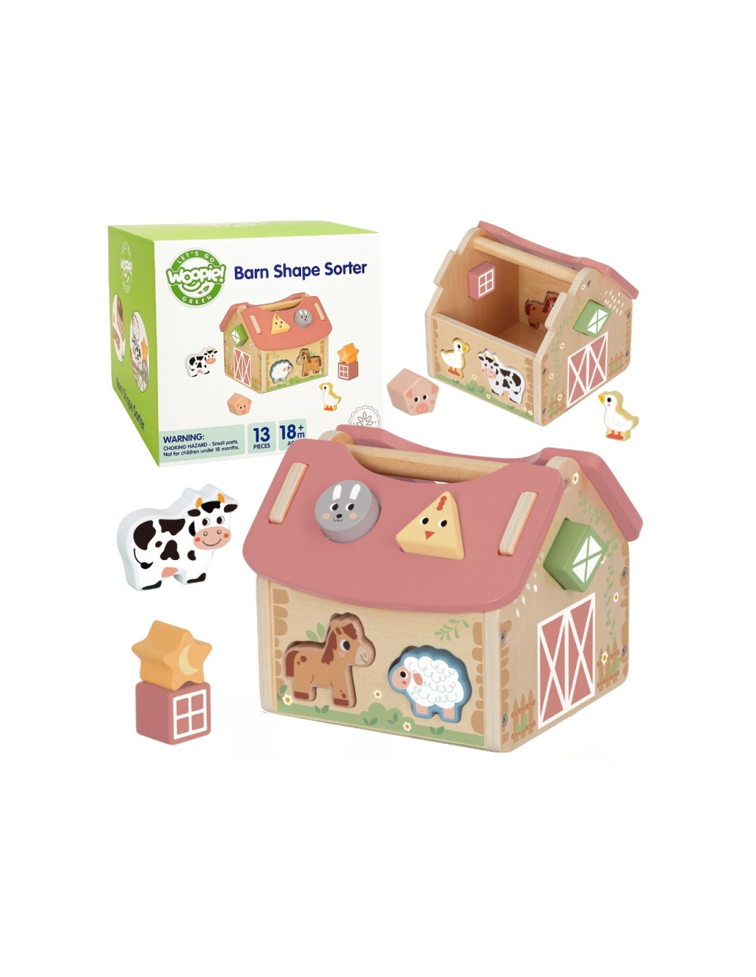 Pastelowy Sorter Farma od marki WOOPIE z serii GREEN to idealna zabawka edukacyjna dla maluchów od 18 miesiąca życia. W wiejskim klimacie zachęca do kreatywnej zabawy, ucząc rozpoznawania kształtów, kolorów i zwierząt. Łączy naukę z radością, rozwijając wyobraźnię, logiczne myślenie i zdolności manualne.