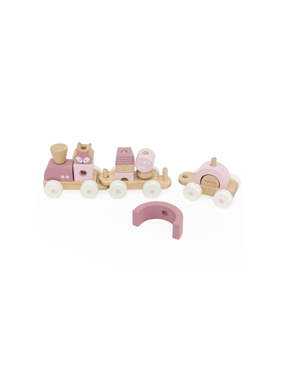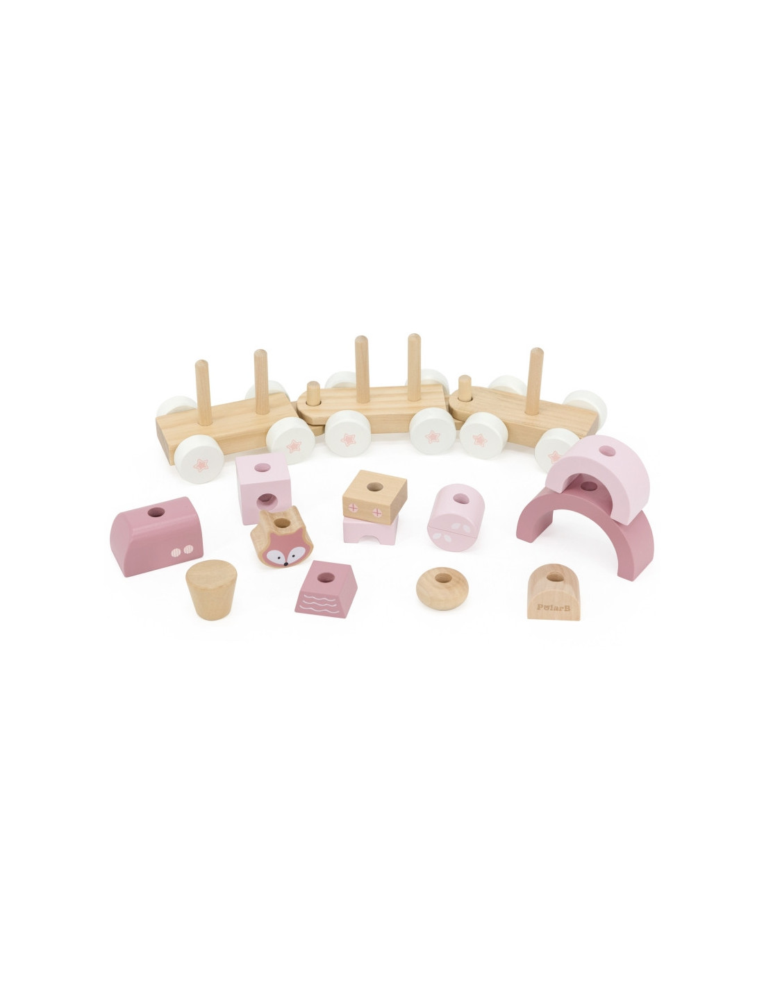 VIGA PolarB rožinis traukinys su vežimėlių kaladėlėmis