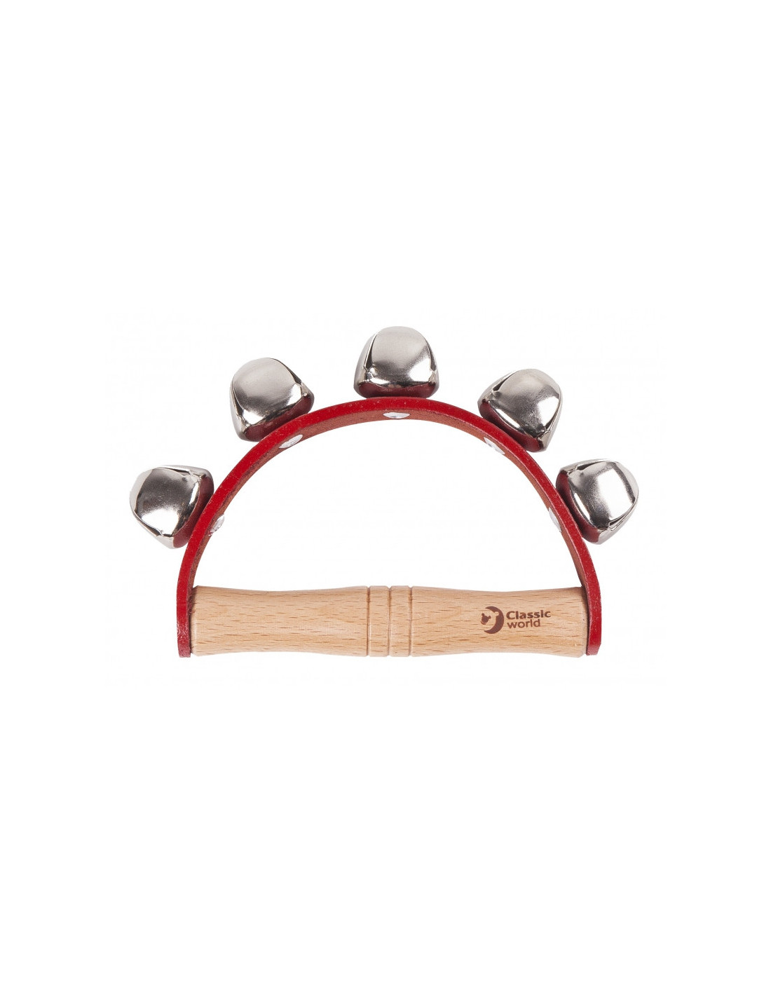 Dzwoneczki Janczary od renomowanej marki Classic World to idealna zabawka na początek muzycznej podróży Twojego dziecka. Do skórzanego łuku (paska) przymocowano pięć dzwonków, które wydają dźwięk w czasie potrząsania instrumentem. Rączka została wykonana z drewna. Janczar dedykowany jest przede wszystkim dla najmłodszych. Może być odpowiednim uzupełnieniem zajęć rytmicznych w przedszkolach oraz w trakcie nauczania początkowego. Zabawka pomoże ćwiczyć zdolności manualne i słuchowe twojej pociechy oraz wzmocni naturalne poczucie rytmu.