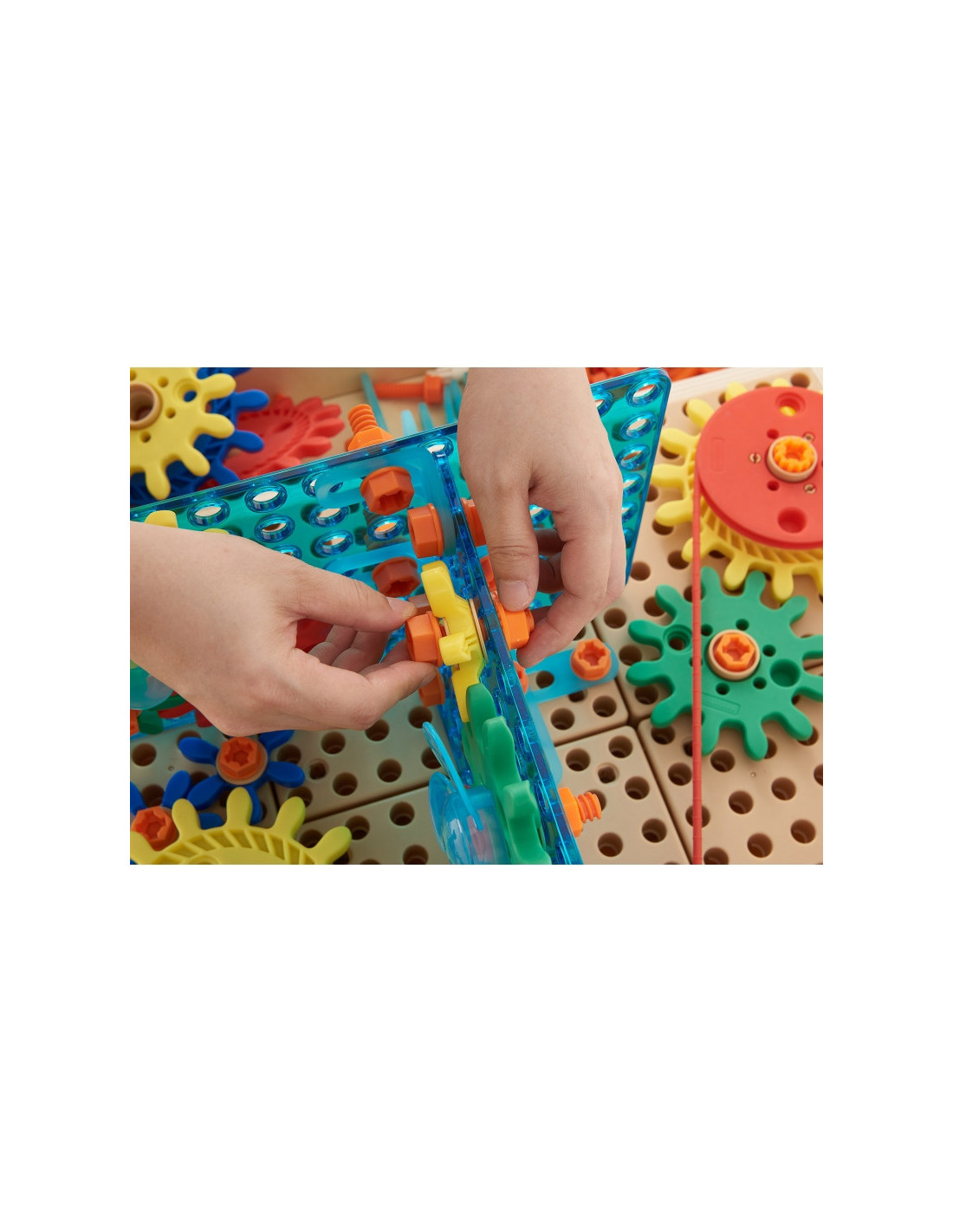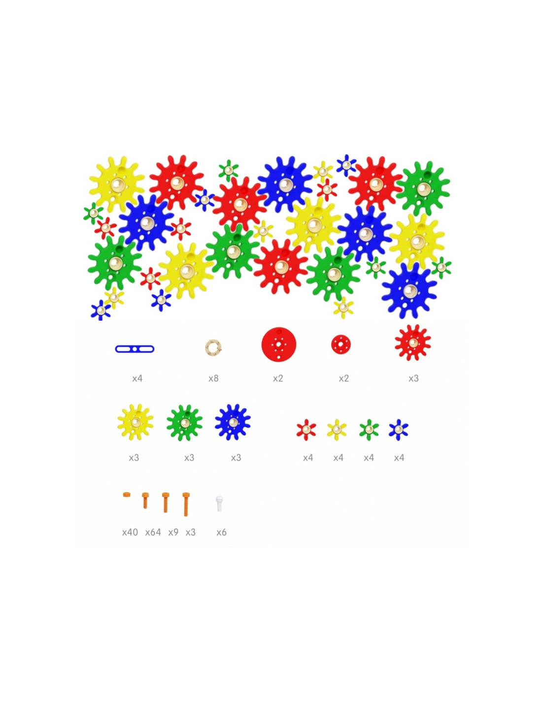 Zestaw kolorowych trybików i kół zębatych, które pozwalają na skonstruowanie skomplikowanych mechanizmów. Zabawkę montuje się na Tablicy Naukowo-Kreatywnej Masterkidz STEM przy pomocy specjalnych śrub Masterkidz. Zabawa kołami zębatymi poprawia motorykę dziecka, zdolność logicznego myślenia, a także kreatywność.