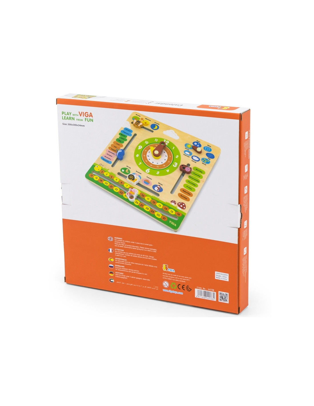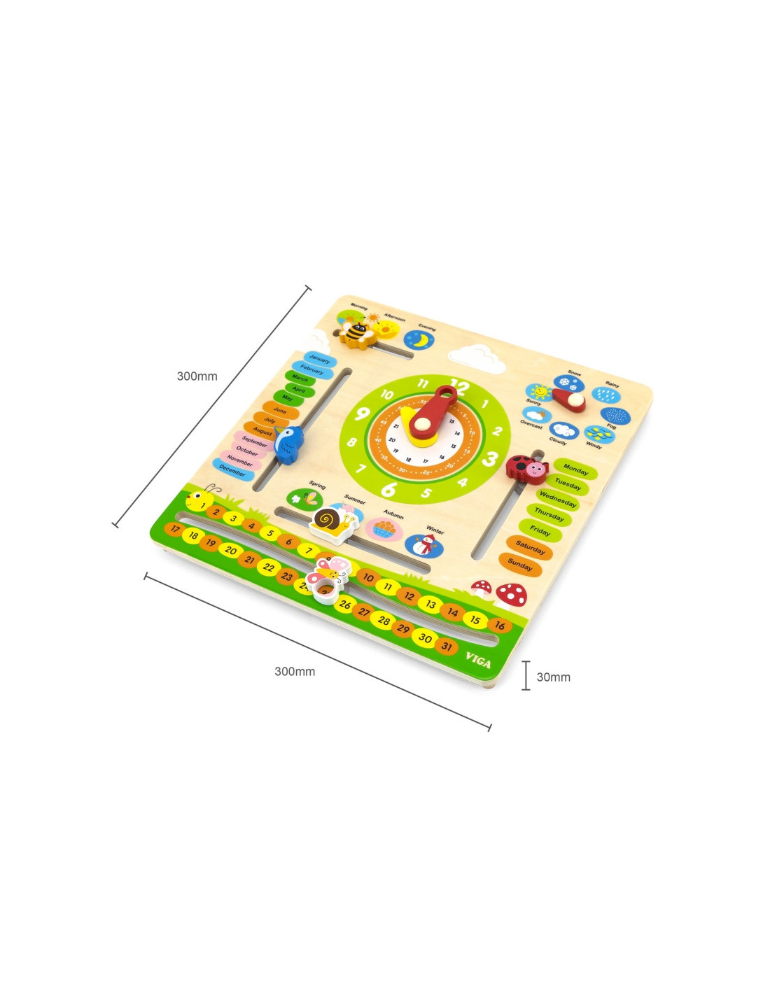 Ten edukacyjny kalendarz to idealna zabawka do nauki o upływającym czasie, zmianach pogody i porach roku. Dzięki kolorowym, ruchomym elementom dzieci mogą codziennie dostosowywać datę, wybierać odpowiednią pogodę i porę roku, a także uczyć się pojęć związanych z czasem. Można go zawiesić na ścianie lub postawić na biurku, co sprawia, że będzie zarówno funkcjonalnym, jak i dekoracyjnym elementem w pokoju dziecka.