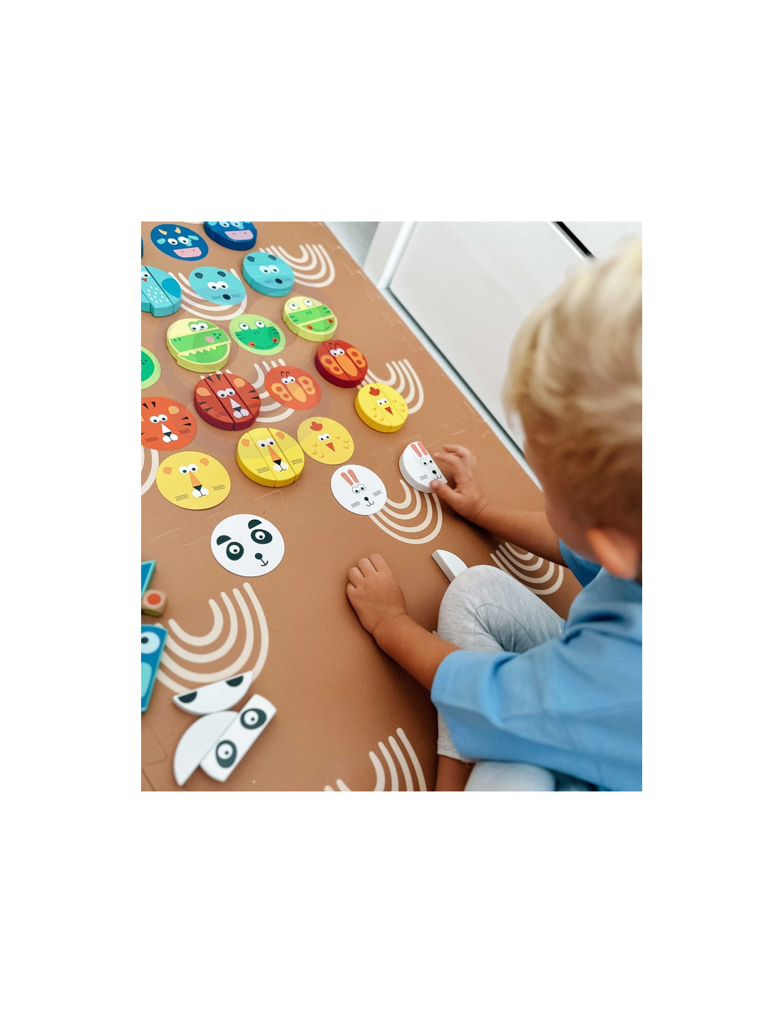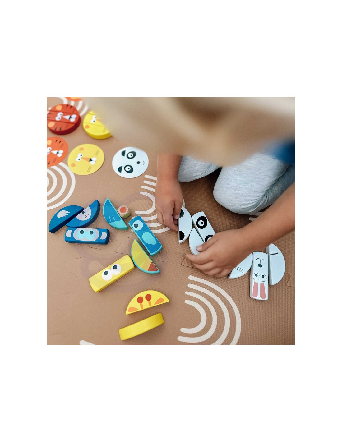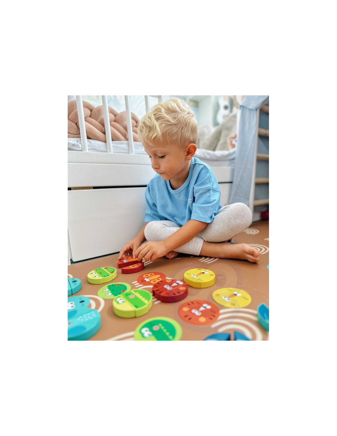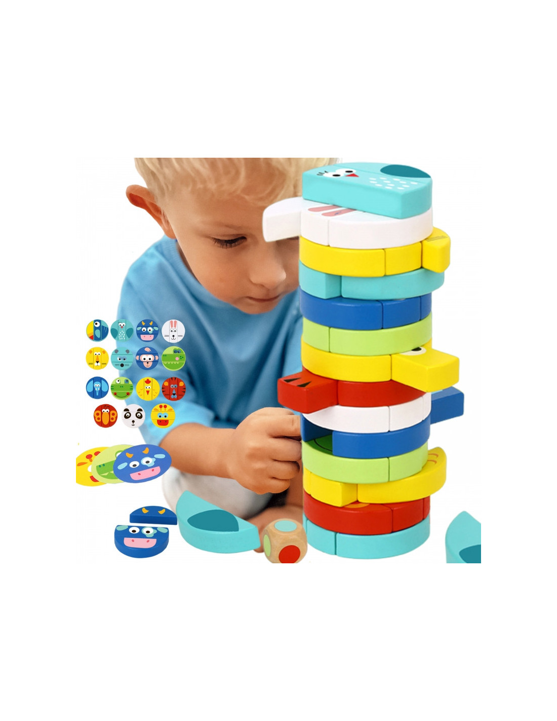 Gra Zwierzęta od marki TOOKY TOY to gra zręcznościowa dla dzieci od 3 roku życia. Wymaga od twojej pociechy skupienia i logicznego myślenia. W zestawie znajduje się klocki przedstawiające różne zwierzęta, karty ze zwierzęciem oraz kostka. Po wylosowaniu koloru i odpowiedniego zwierzęcia z karty, dziecko musi wyciągnąć jeden z klocków z właściwego miejsca. Celem gry jest, aby wyjąć jak najwięcej klocków bez zburzenia wieży. Produkt ekologiczny w 100% bezpieczny dla środowiska oraz naszego malucha. Elementy zostały wykonane z myślą o małych rączkach dziecka. Zestaw przyciąga wzrok żywymi kolorami oraz ilustracjami zwierząt. Klocki charakteryzują się solidnym wykonaniem. Gra, mimo swojej prostoty, na pewno dostarczy fantastycznych wrażeń dla dziecka i jego przyjaciół!