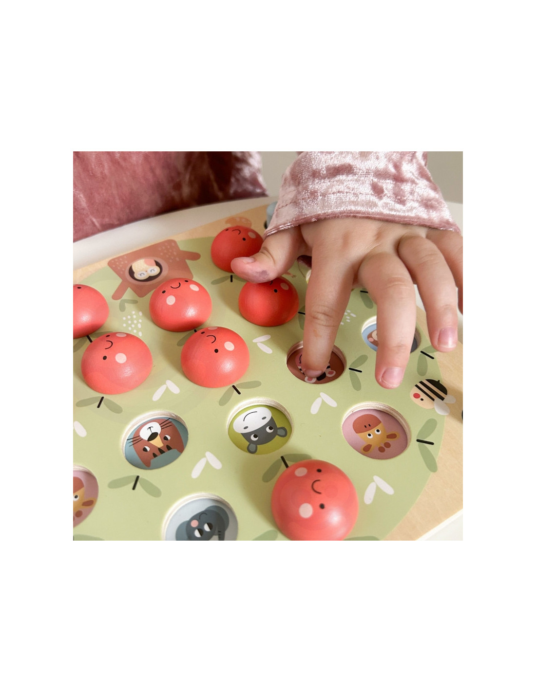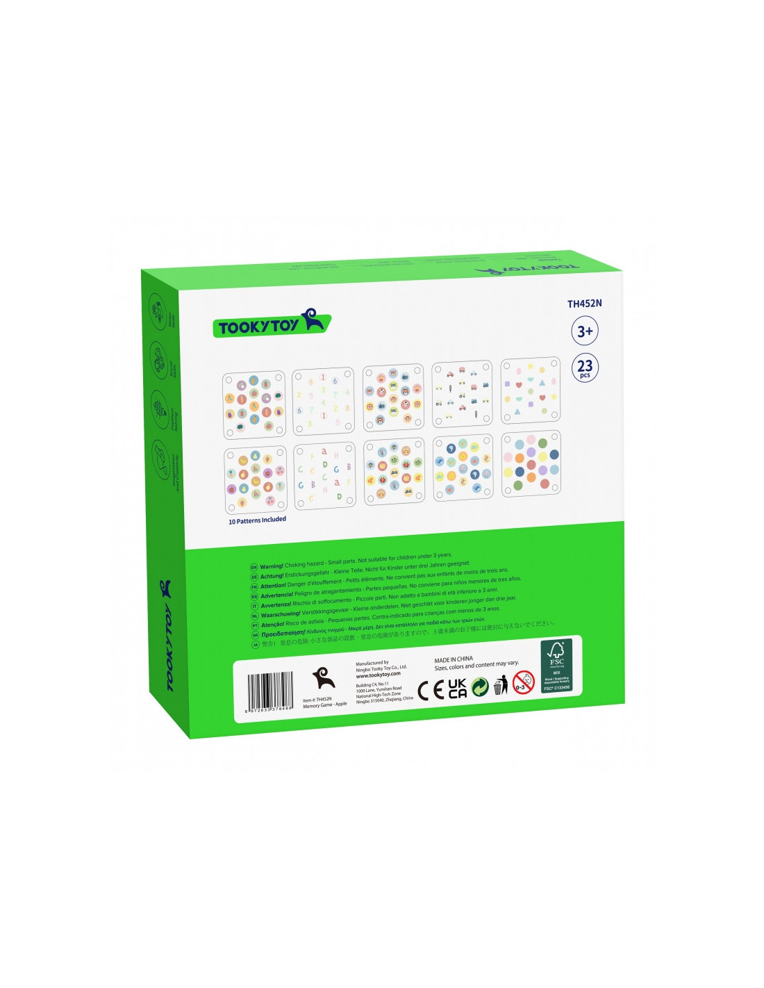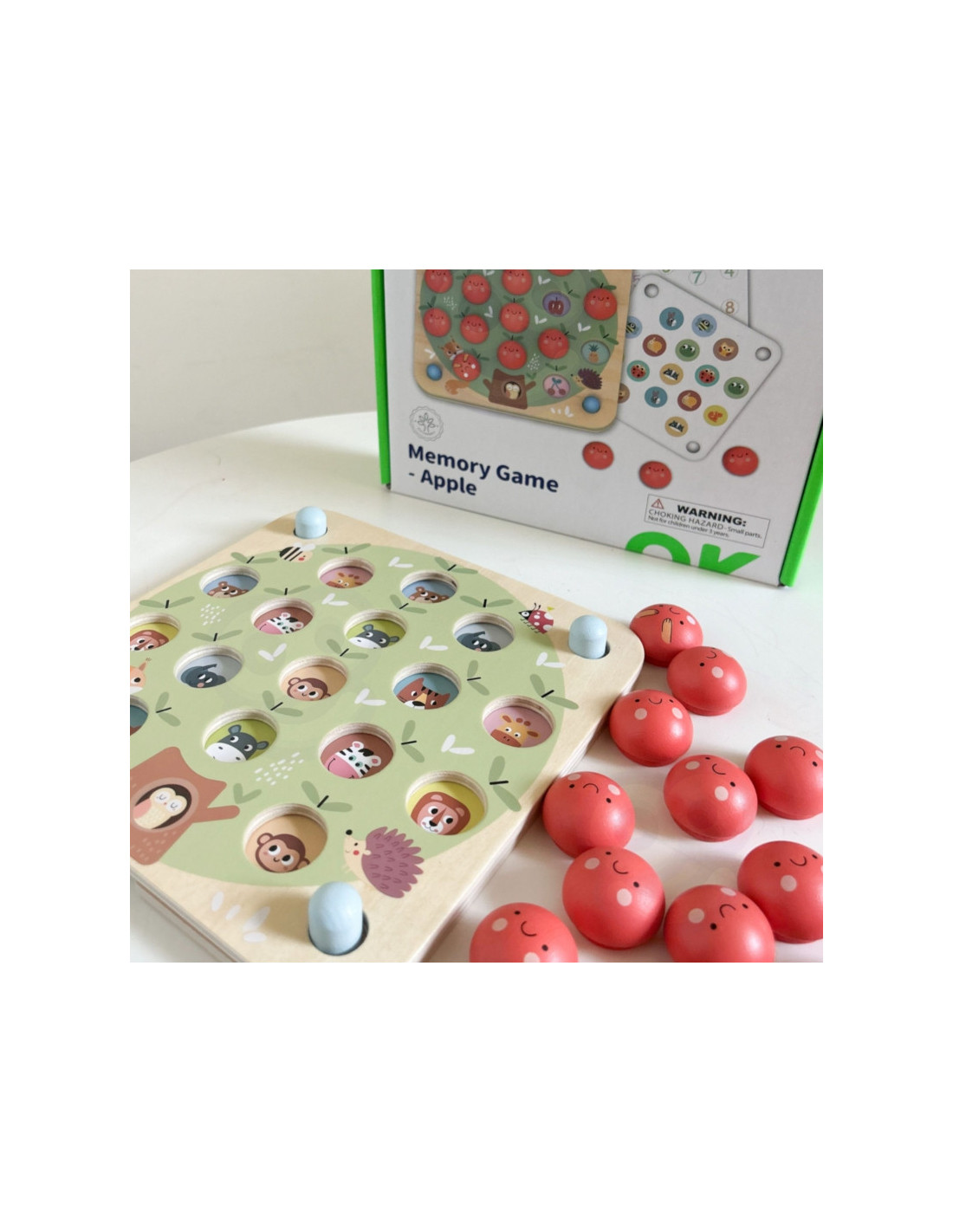 Gra pamięciowa to ciekawa wersja znanej gry Memory od renomowanego producenta zabawek marki Tooky Toy. To wspaniały pomysł na wspólne spędzenie czasu. Dziecko poprzez zabawę ćwiczy pamięć i koncentrację. Zestaw zawiera aż 10 kart z różnymi motywami o różnym stopniu trudności. Produkt wykonany z najwyższej jakości materiałów bezpiecznych dla dzieci i środowiska. Podnieś jabłuszko, zapamiętaj obrazek znajdujący się pod nim i znajdź drugi taki sam! Wygrywa osoba, która znajdzie najwięcej par. Dobrej zabawy!