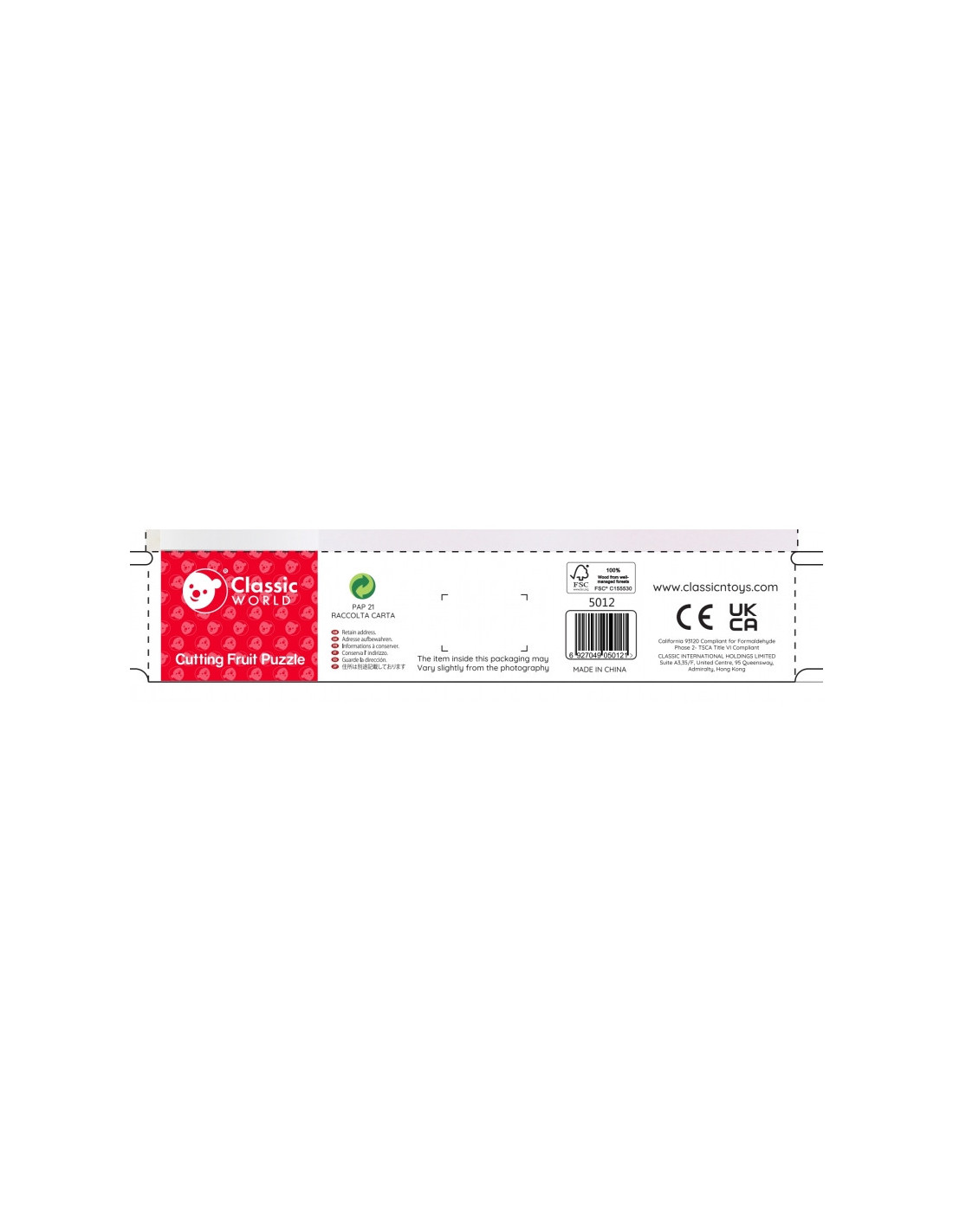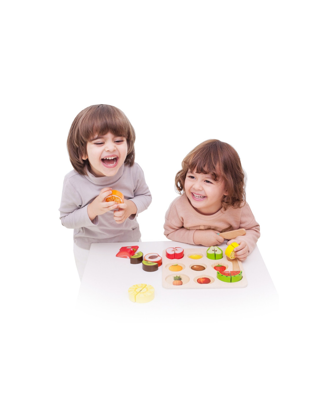„Classic World“ spalvingų vaisių rinkinys – puikus žaidimų papildymas mažiesiems virėjams, kurie mėgsta žaisti namus ar gaminti. Šis žaidimas skatins vaidmenų žaidimus nuo mažens ir taip pat pasitarnaus kaip lavinamoji priemonė. Šis produktas yra fantastiškas būdas smagiai praleisti laiką! Gražios spalvos ir imituoti vaisiai skatins nesibaigiantį žaidimą. Jūsų mažylis sužinos apie spalvas ir kaip atskirti skirtingus vaisius . Rinkinys sukurtas galvojant apie mažas rankeles. Dėl aštrių briaunų nebuvimo jis yra 100 % saugus vaikams.