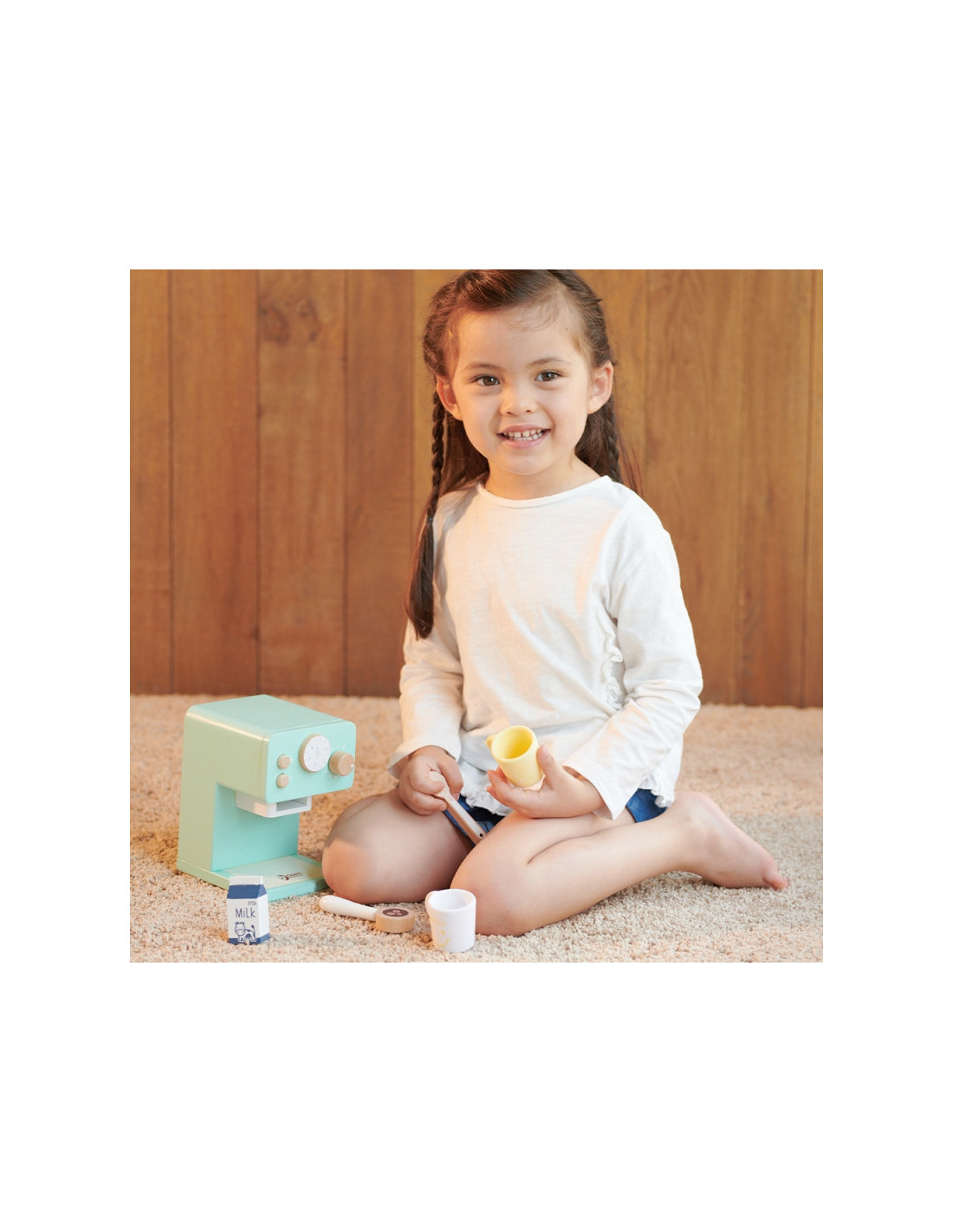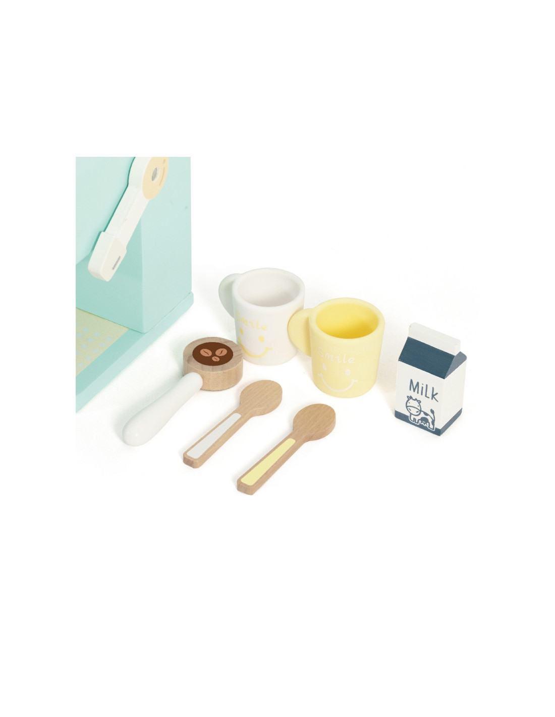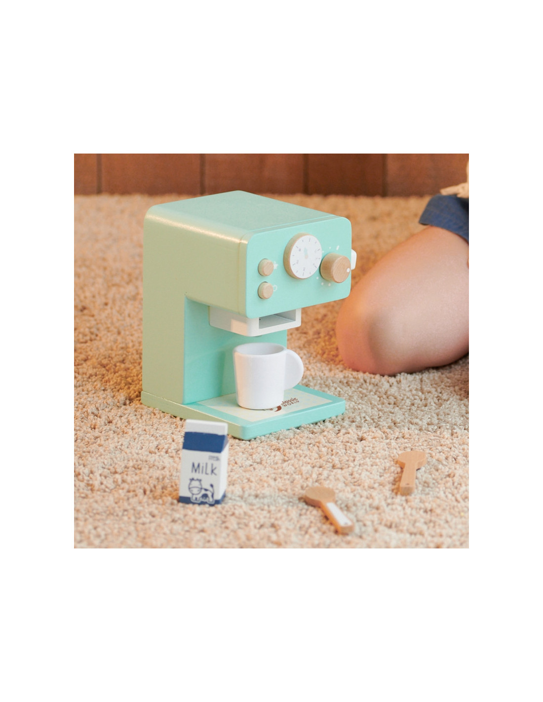 Drewniany ekspres do kawy od marki CLASSIC WORLD będzie doskonałym uzupełnieniem kuchni. Zestaw zawiera 7 elementów. Jeśli Twoje dziecko lubi pomagać w kuchni i fascynuje go świat kuchennych sprzętów z pewnością polubi tą zabawkę. Ekspres posiada ruchome elementy jak rączka po prawej stronie do nalewania kawy oraz prawe pokrętło (minutnik), który dodatkowo wydaję dźwięk - podobny do nakręcania. Dzięki funkcją ekspres jest bardzo realistyczny i dziecko może wyobrazić sobie oraz wcielić się w dorosłego robiącego kawę. Drewniany ekspres to produkt wykonany z naturalnego drewna, który charakteryzujący się wysoką estetyką wykonania, trwałością i troską o bezpieczeństwo dziecka.