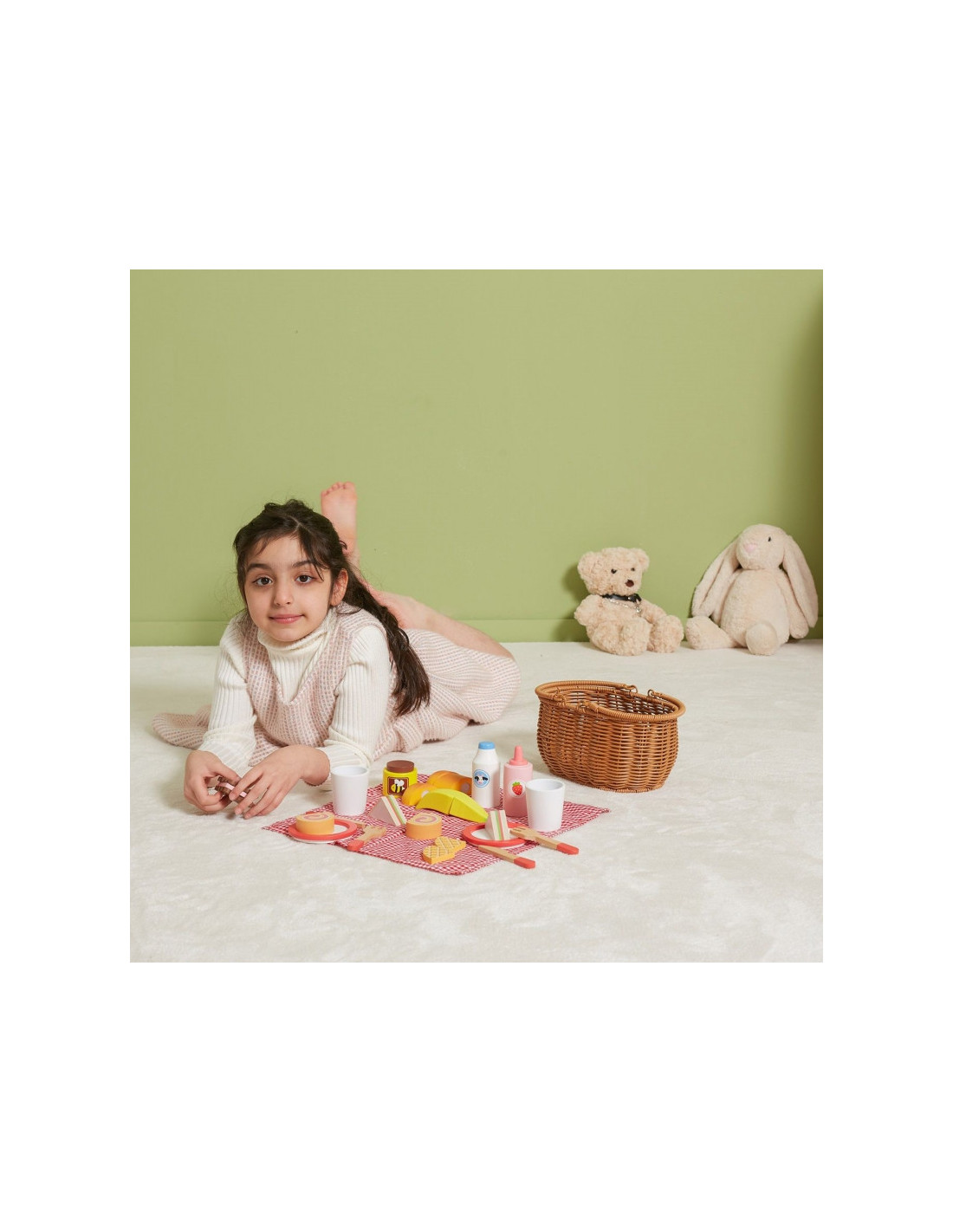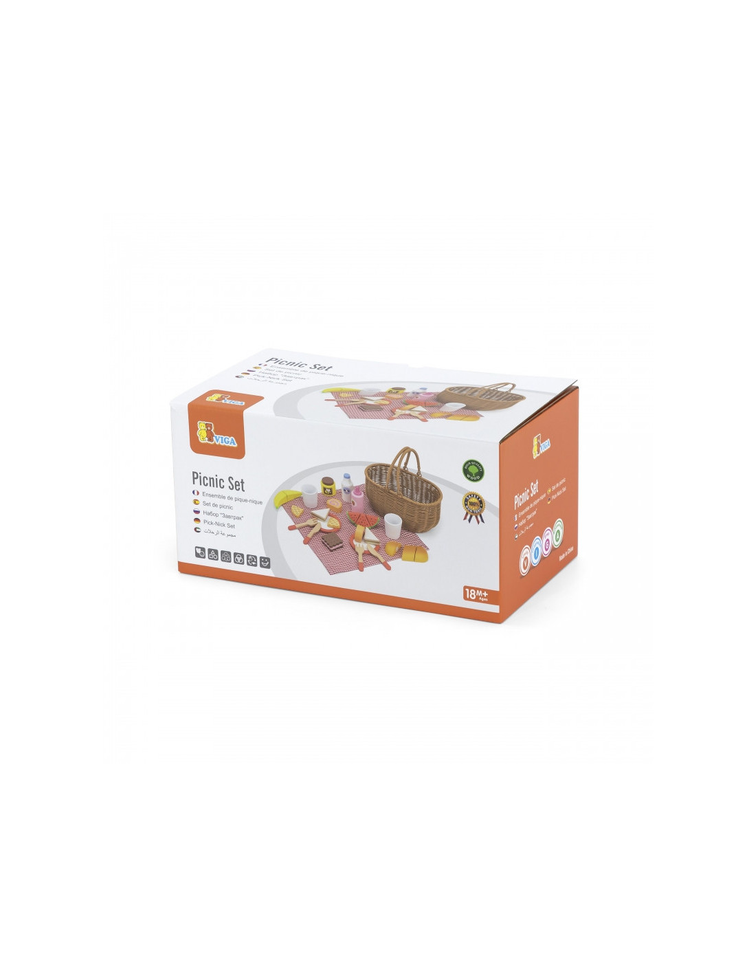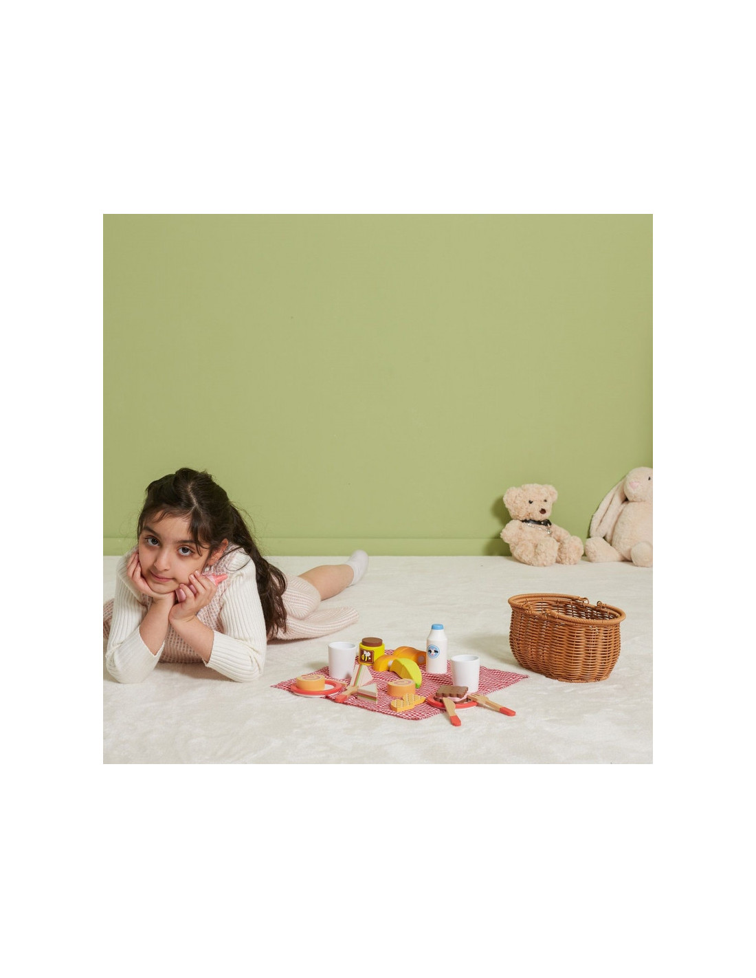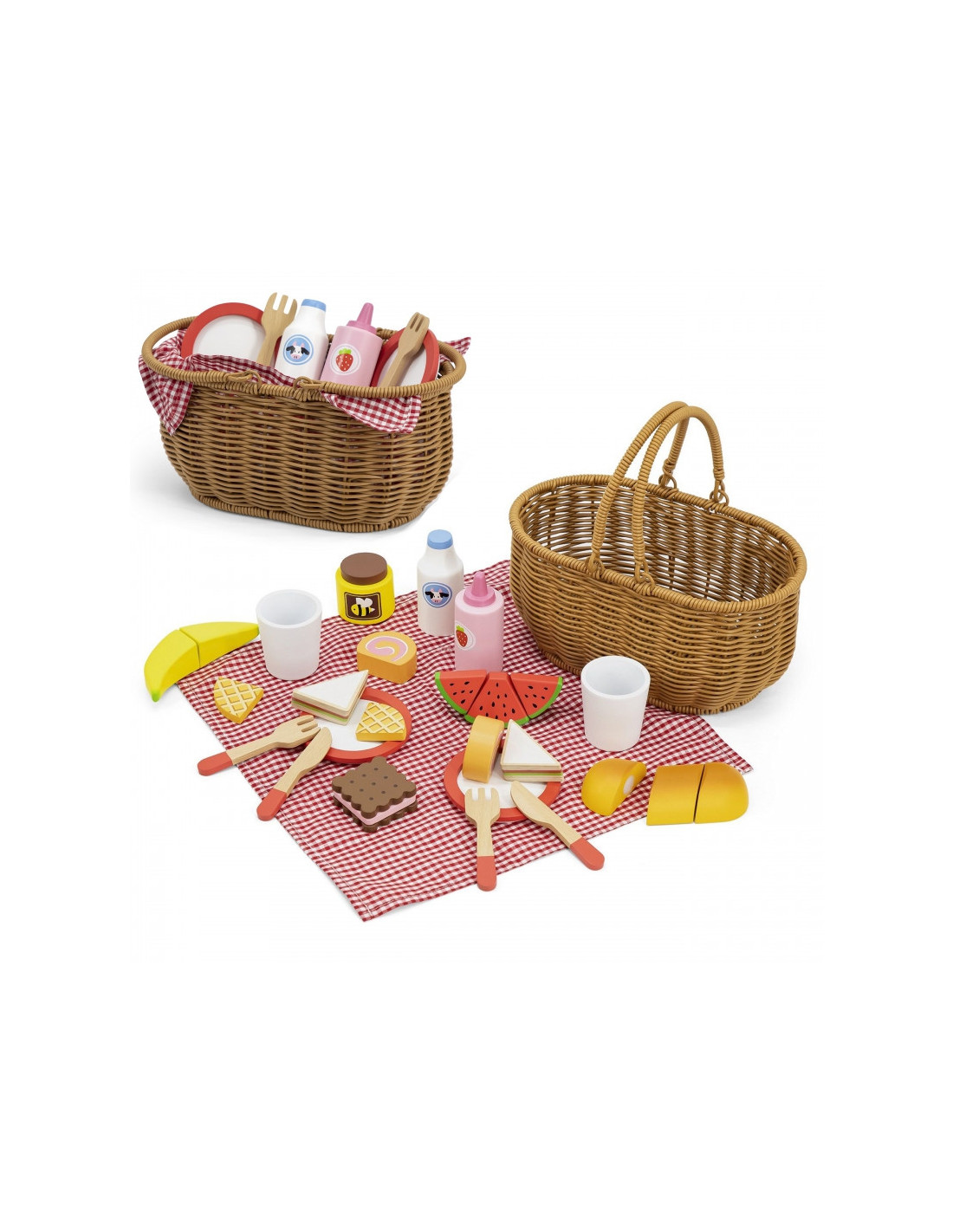 Leiskitės į smagią pikniką su draugais su mediniu VIGA pikniko rinkiniu . Šis gražus krepšelis , pagamintas iš dirbtinės nendrės, yra pripildytas įvairių medinių aksesuarų ir languoto audinio. Dėl tvirtų rankenų jūsų vaikas gali lengvai pasiimti visą rinkinį su savimi, kad ir kur eitų . Pridedami mediniai užkandžiai ir aksesuarai leidžia jam pasiimti mėgstamus žaislus, pliušinius žaislus ar žaisti vaidmenimis su draugu. Šis rinkinys tinka žaisti tiek lauke, tiek viduje. Kai kurie indai susideda iš kelių dalių ir yra pritvirtinti „Velcro“. Naudodamas medinį peilį, jūsų vaikas gali juos supjaustyti gabalėliais, lavindamas smulkiąją motoriką . Suaugusiųjų mėgdžiojimas taip pat prisidės prie socialinių įgūdžių lavinimo .