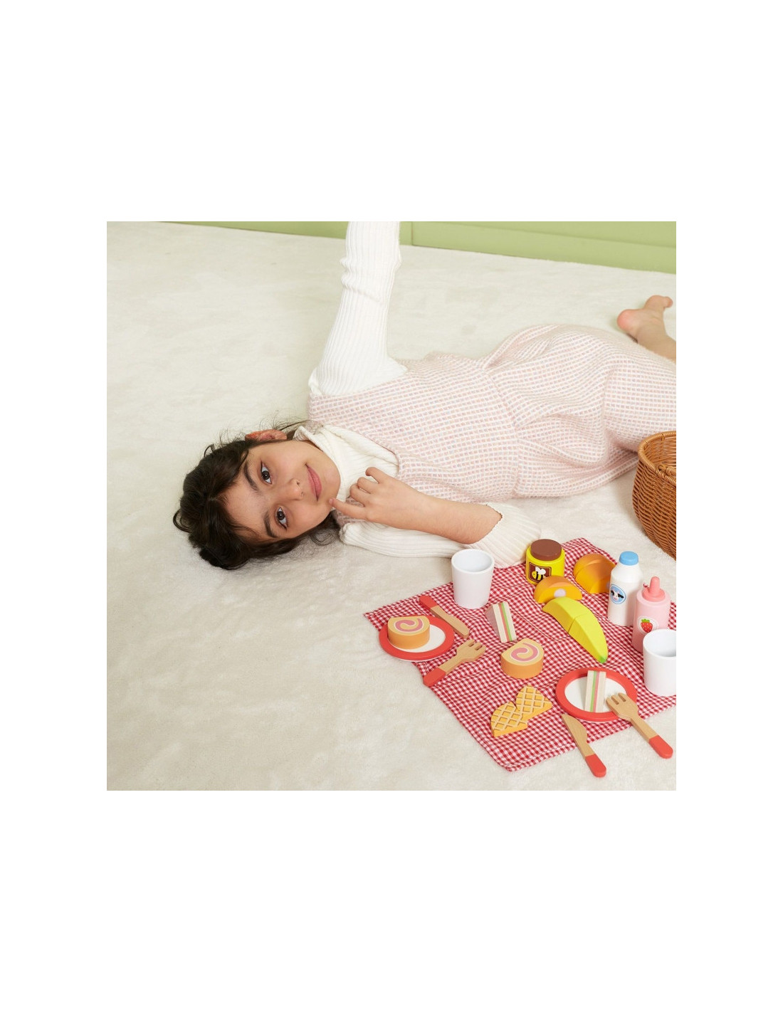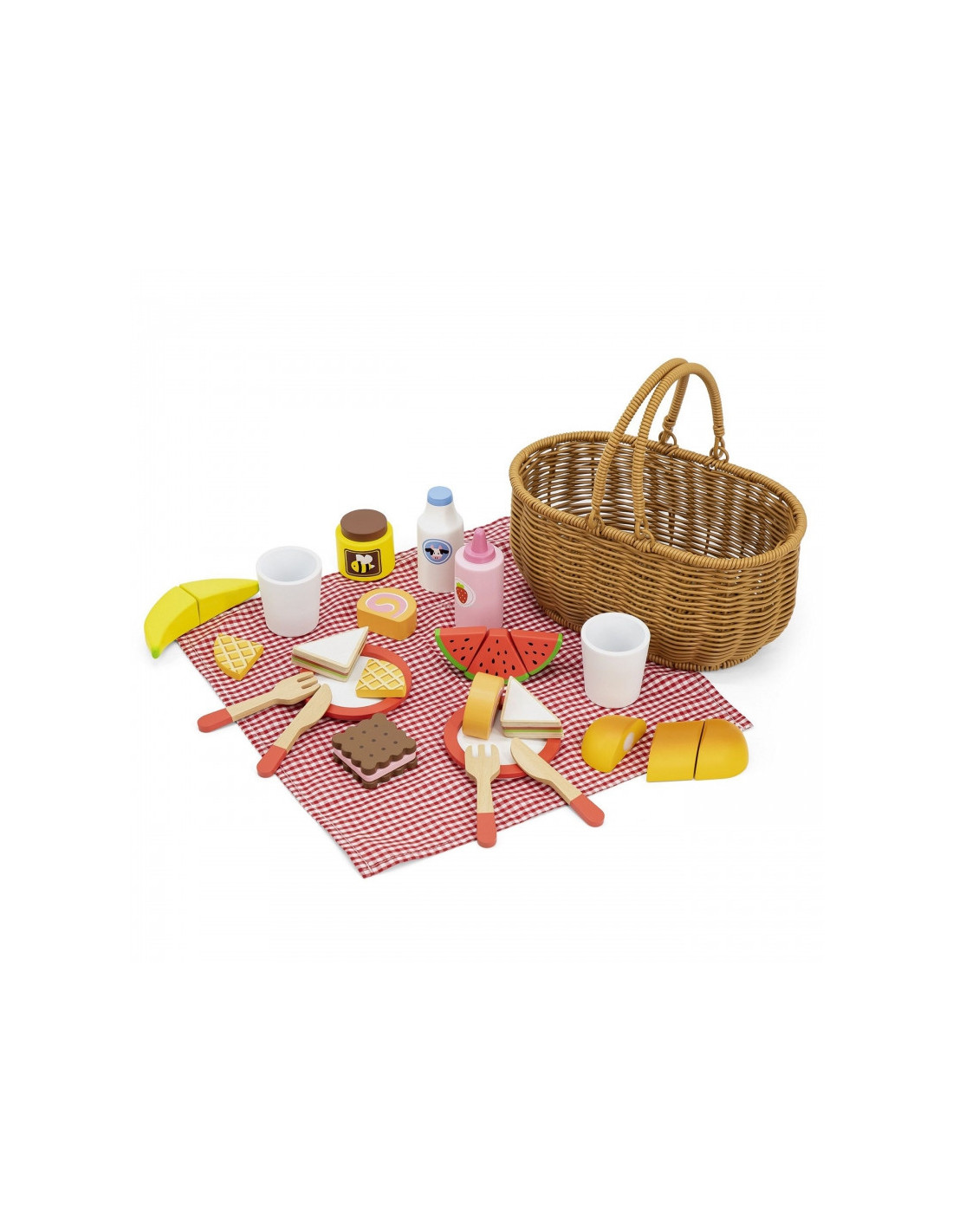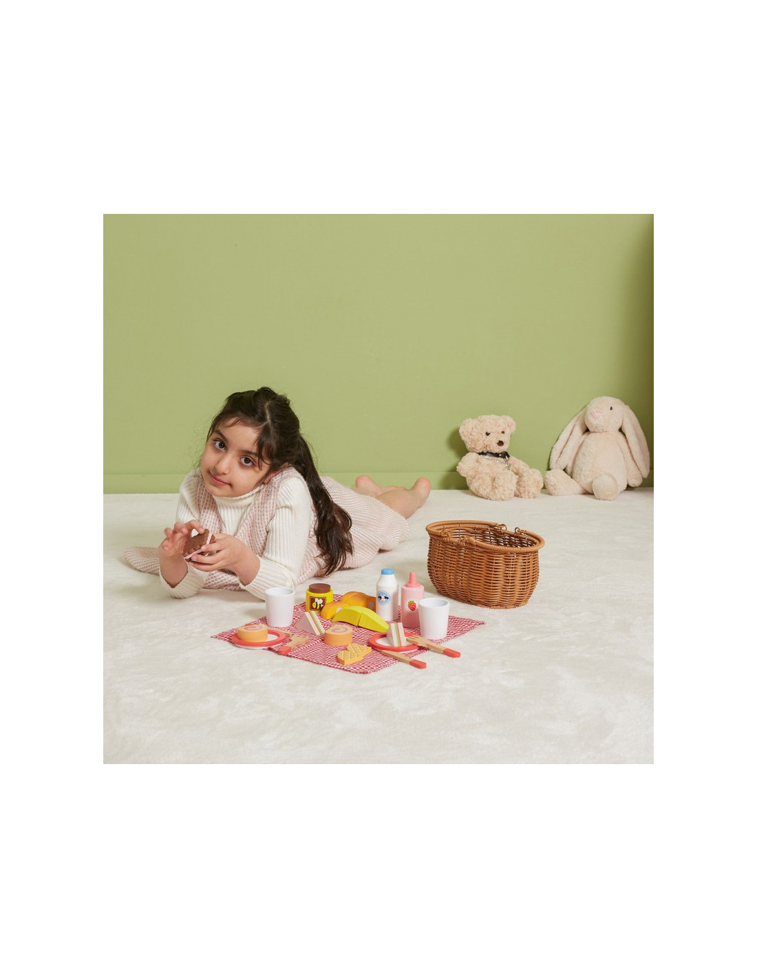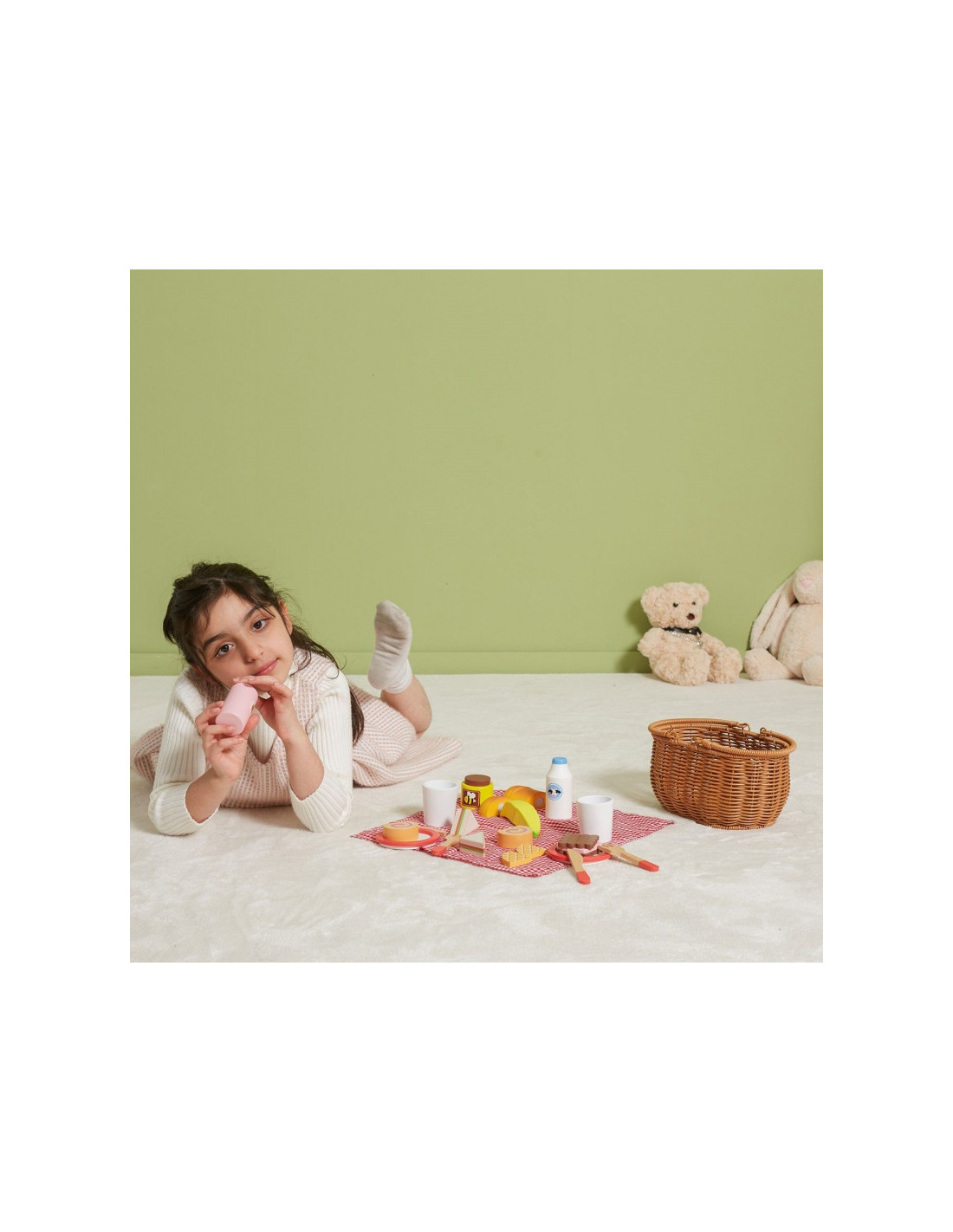 Leiskitės į smagią pikniką su draugais su mediniu VIGA pikniko rinkiniu . Šis gražus krepšelis , pagamintas iš dirbtinės nendrės, yra pripildytas įvairių medinių aksesuarų ir languoto audinio. Dėl tvirtų rankenų jūsų vaikas gali lengvai pasiimti visą rinkinį su savimi, kad ir kur eitų . Pridedami mediniai užkandžiai ir aksesuarai leidžia jam pasiimti mėgstamus žaislus, pliušinius žaislus ar žaisti vaidmenimis su draugu. Šis rinkinys tinka žaisti tiek lauke, tiek viduje. Kai kurie indai susideda iš kelių dalių ir yra pritvirtinti „Velcro“. Naudodamas medinį peilį, jūsų vaikas gali juos supjaustyti gabalėliais, lavindamas smulkiąją motoriką . Suaugusiųjų mėgdžiojimas taip pat prisidės prie socialinių įgūdžių lavinimo .