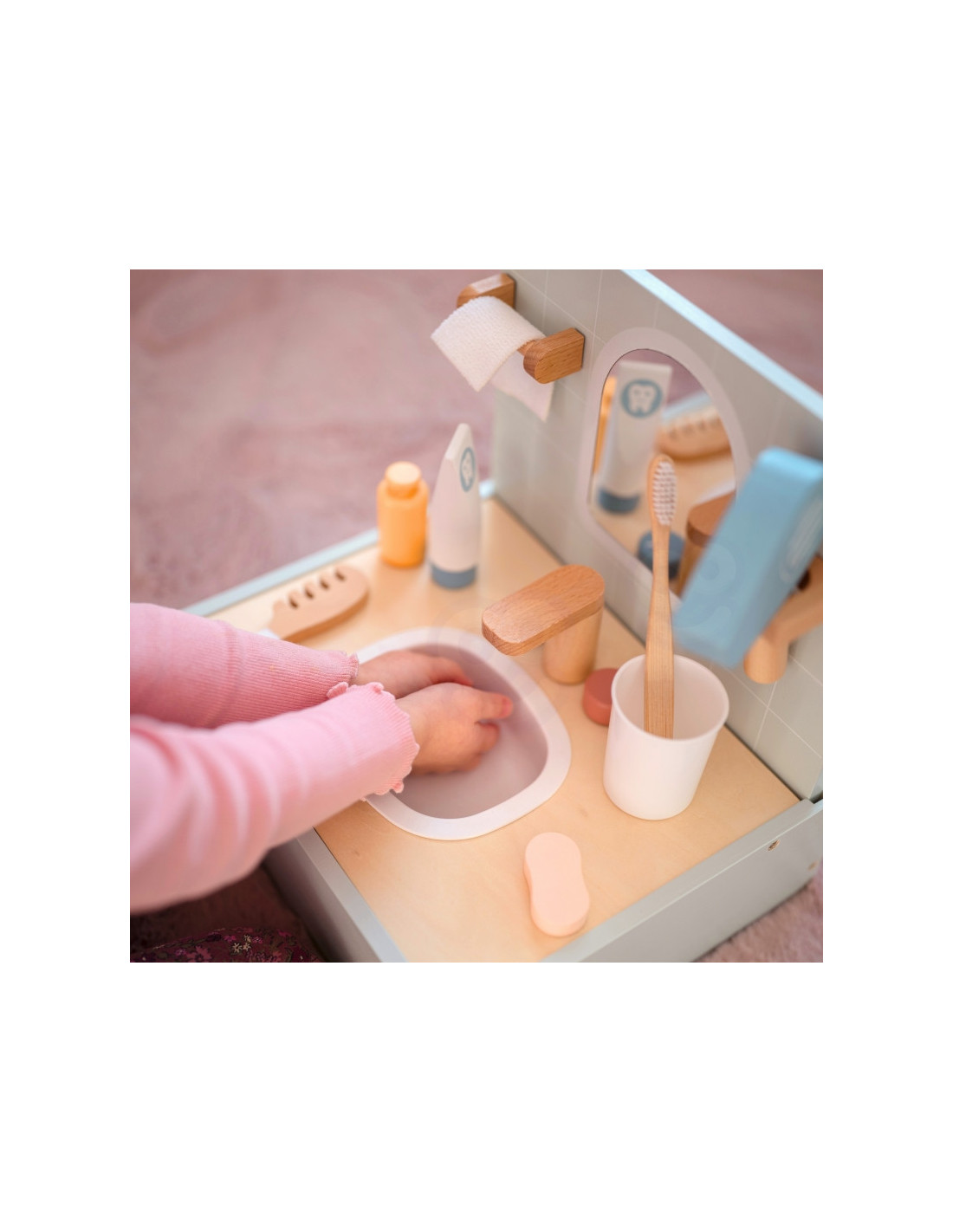 Zmień codzienne rytuały w łazience w kreatywną zabawę dzięki zestawowi Toilet Bathroom od Tooky Toy. Ten uroczy, miniaturowy zestaw zawiera wszystko, co potrzebne do odgrywania scenek związanych z łazienką, w tym lustro, udawaną umywalkę z kranem, a także kolekcję realistycznych akcesoriów. Wszystkie przedmioty są zaprojektowane tak, by przypominały rzeczywiste akcesoria łazienkowe, zachęcając tym samym do nauki ważnych nawyków higienicznych. Zestaw Toilet Bathroom to świetny sposób na rozwijanie kreatywności oraz naukę codziennych nawyków, będąc jednocześnie wyjątkowym uzupełnieniem dziecięcej zabawy.
