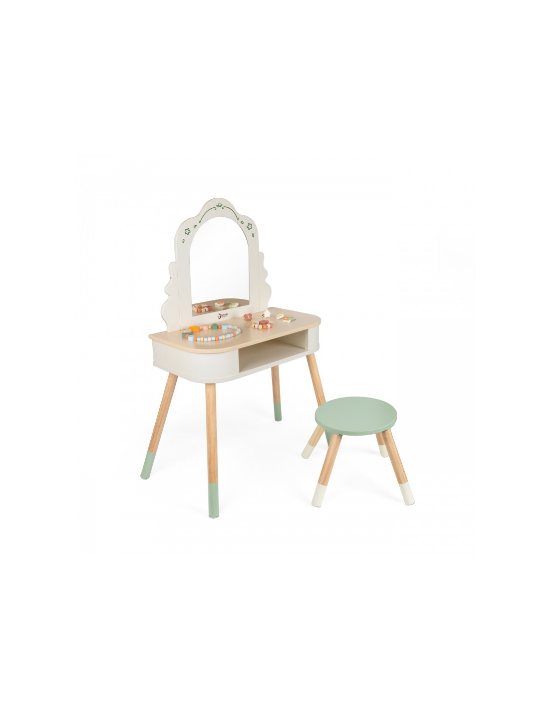 CLASSIC WORLD medinis tualetinis staliukas su veidrodžiu, kėde ir aksesuarais pastelė
