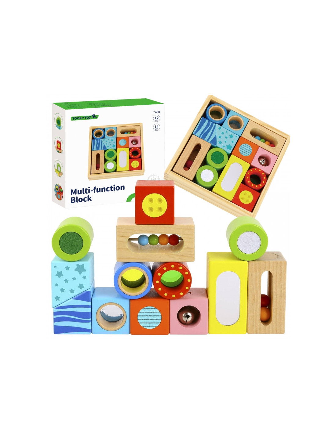 TOOKY TOY Klocki Multifunkcyjne to piękna układanka w "żywych" kolorach. Przyciągną do zabawy każdego malucha. Dziecko może układać konstrukcje na wiele sposobów, dzięki czemu pobudza wyobraźnie. Klocki wykonane z wysokiej jakości drewna, przyjazne dla środowiska. Brak ostrych krawędzi oraz dobrze wyszlifowane brzegi sprawiają, że jest bezpieczna dla dziecka. Wielofunkcyjność klocków sprawi, że zabawka szybko się nie znudzi. Zabawy nie będzie końca.