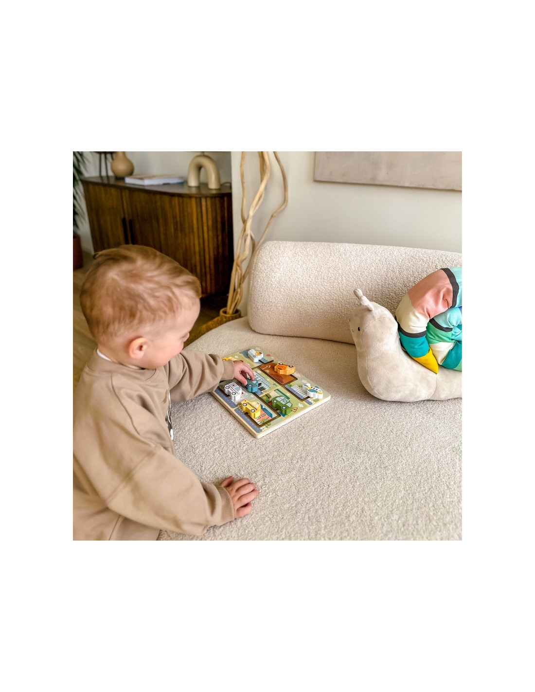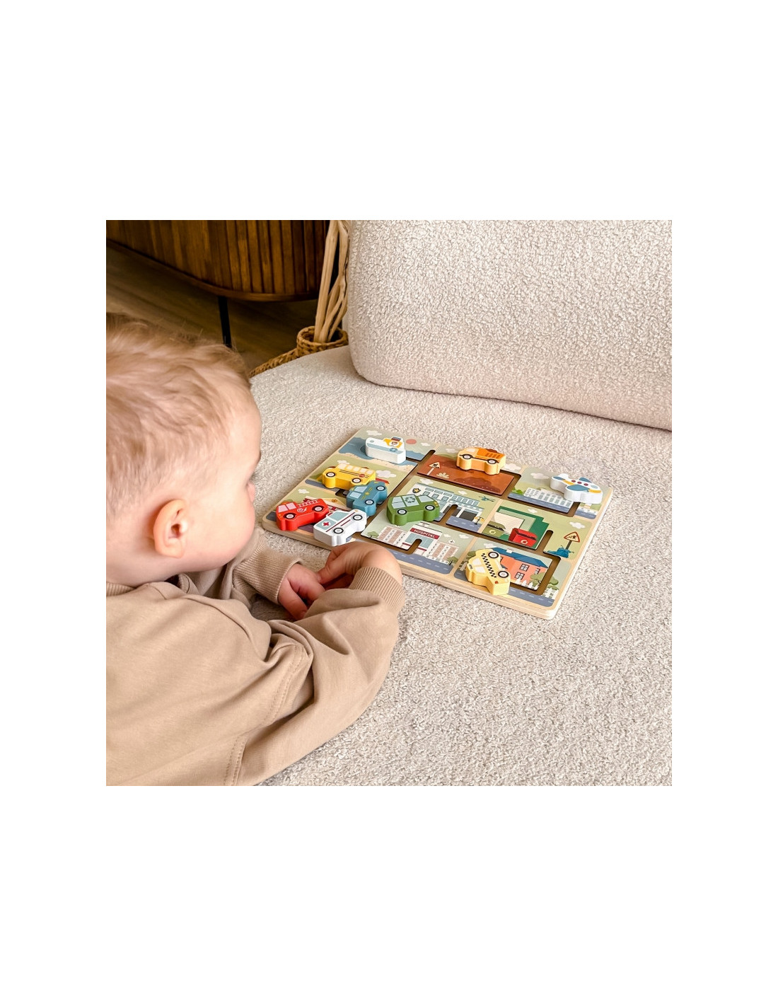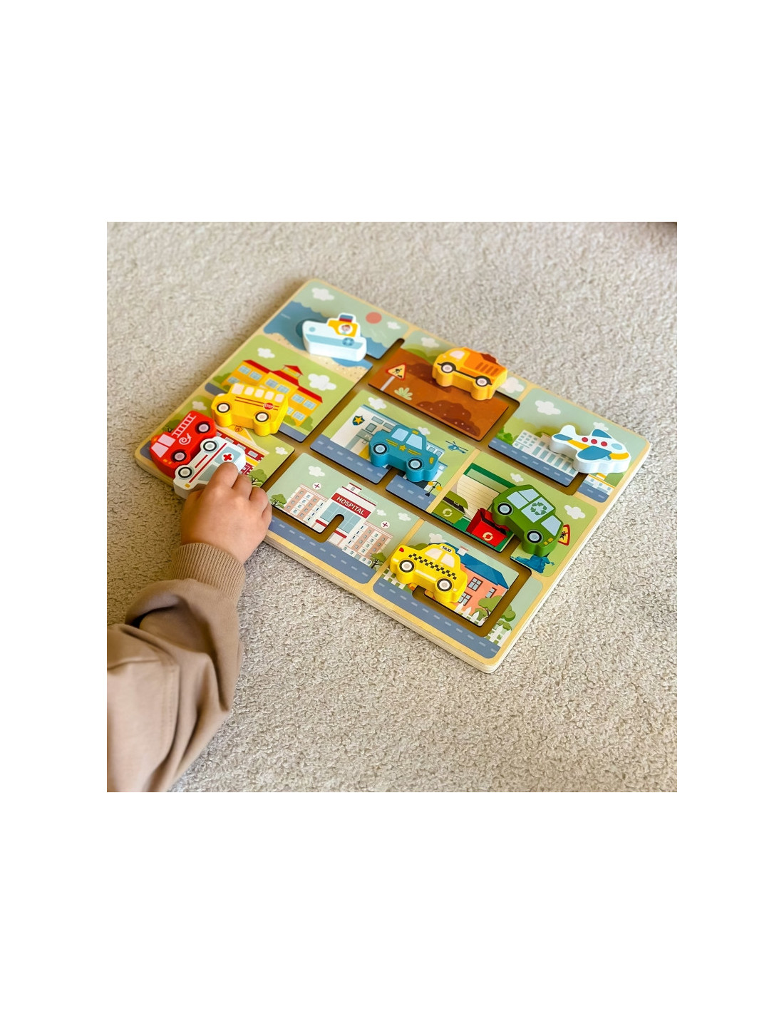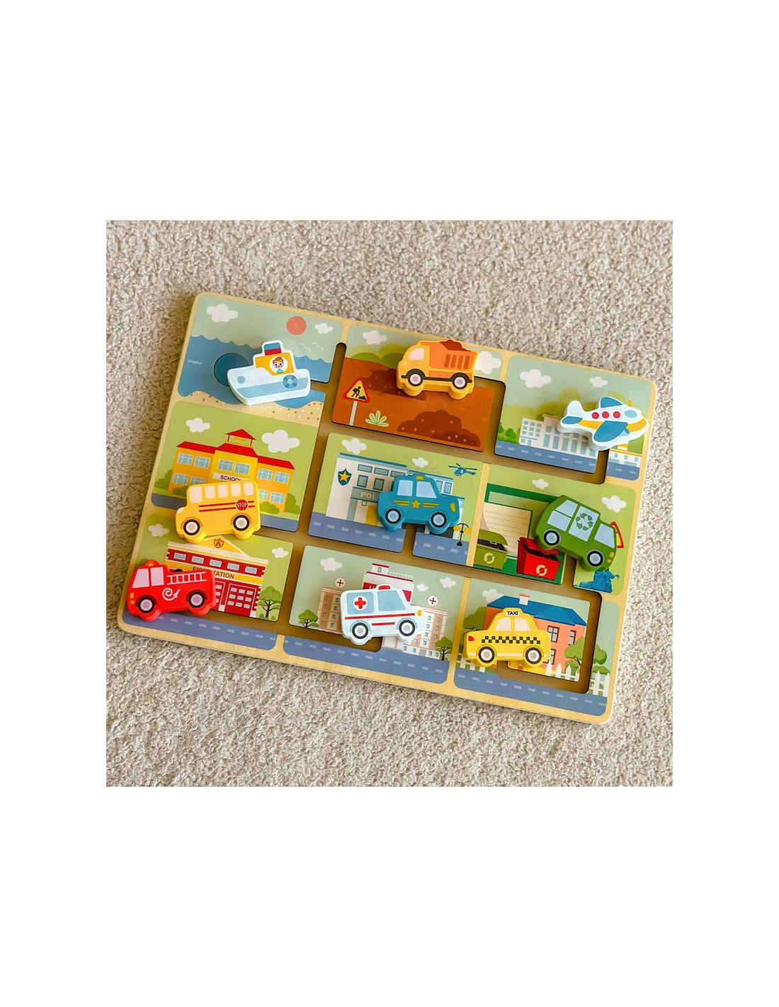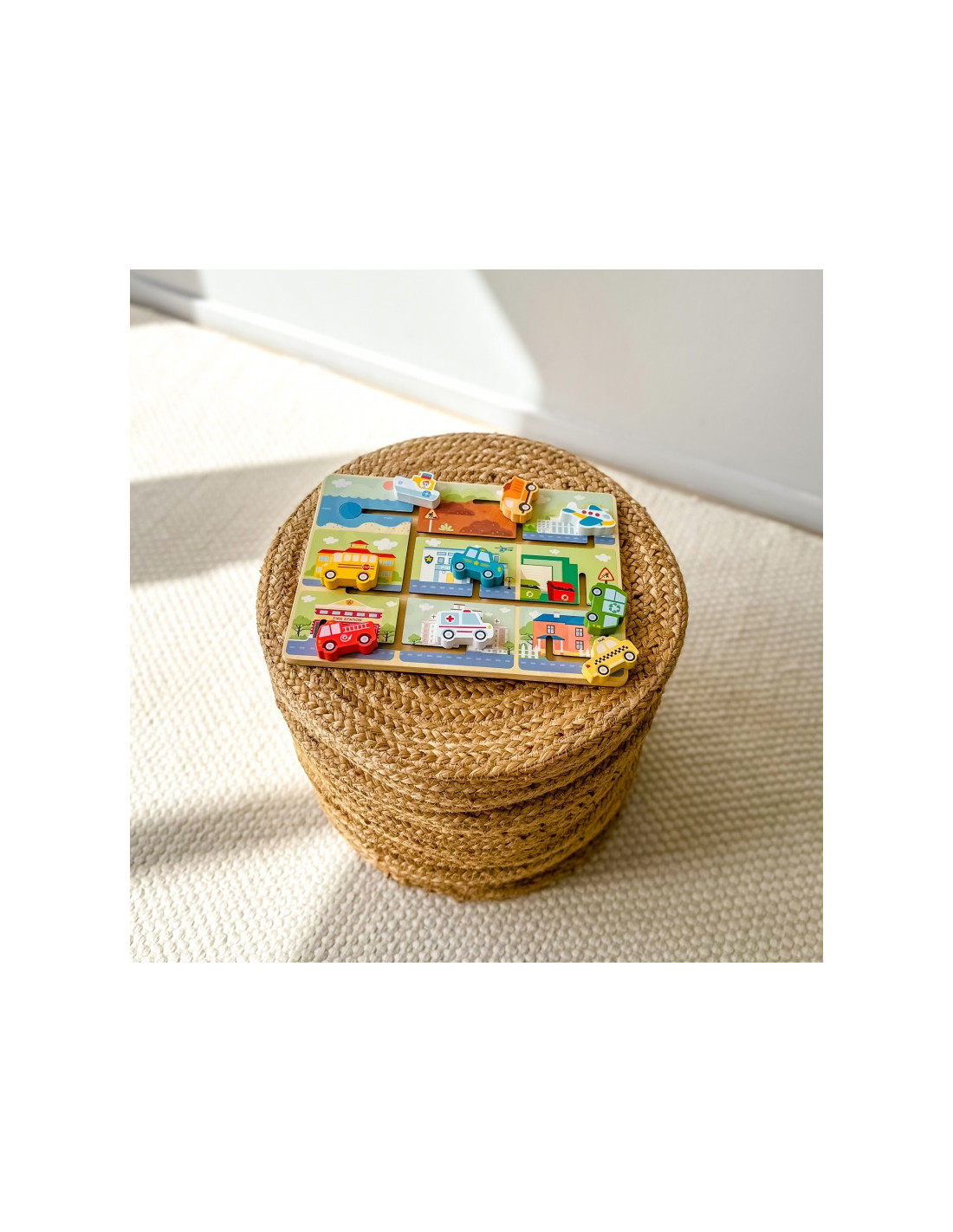 Labirynt Drewniany z Pojazdami od Tooky Toy jest idealną zabawką dla najmłodszych dzieci, rozwijającą ich zdolności poznawcze i motoryczne. Dzieci mogą odkrywać, gdzie typowo parkują pojazdy takie jak policja, karetka, samolot, statek czy autobus szkolny. Zadaniem maluchów jest przesuwanie miniaturowych pojazdów po wyznaczonej trasie, umieszczając je w odpowiednich miejscach. Ta układanka nie tylko zapewnia zabawę, ale także zachęca do logicznego myślenia poprzez planowanie tras ruchu i rozwijanie koordynacji ręka - oko. Ponadto, dzieci uczą się o różnych służbach i ich funkcjach, co poszerza ich wiedzę o o otaczającym świecie.