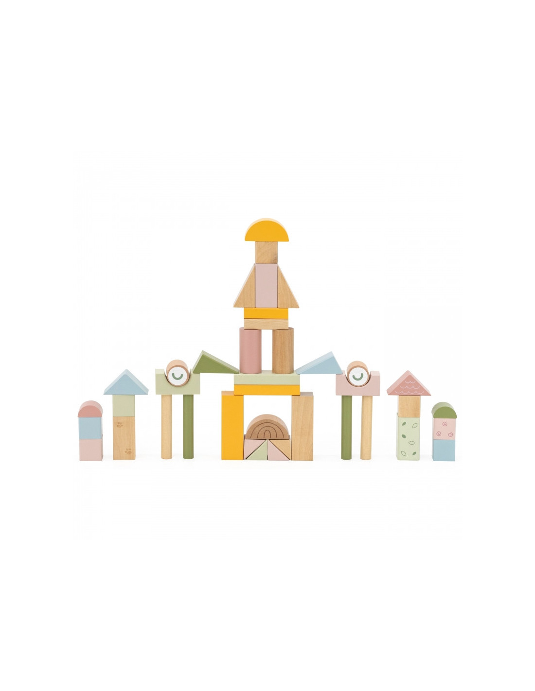 ✔️ Kolorowe klocki w zestawie – różnorodne kształty i pastelowe barwy zachęcają do kreatywnej zabawy.