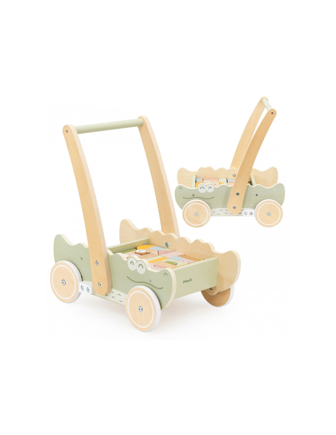 Odkryj radość pierwszych kroków z naszym uroczym chodzikiem-pchaczem w kształcie krokodyla! Ta wielofunkcyjna zabawka to idealny towarzysz rozwoju Twojego malucha. Stabilna konstrukcja i wygodny uchwyt zapewniają bezpieczne wsparcie podczas nauki chodzenia, a zestaw kolorowych klocków znajdujących się wewnątrz chodzika zachęca do kreatywnej zabawy i rozwijania motoryki.