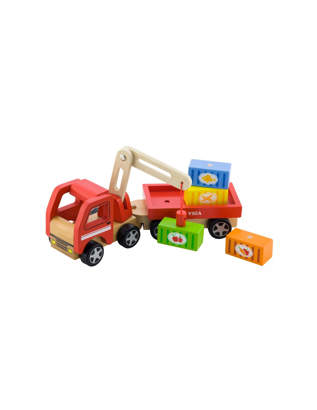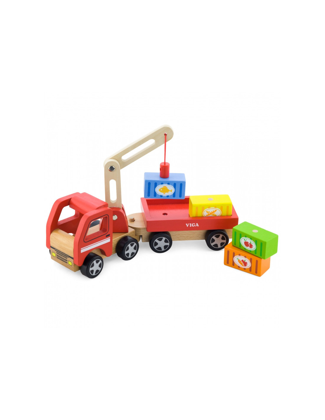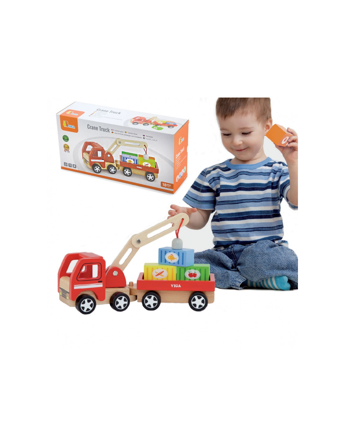 Drewniany Dźwig z kontenerami cenionego producenta zabawek Viga Toys dla dzieci od 18 miesiąca życia idealne do przedszkola jak i do domu.