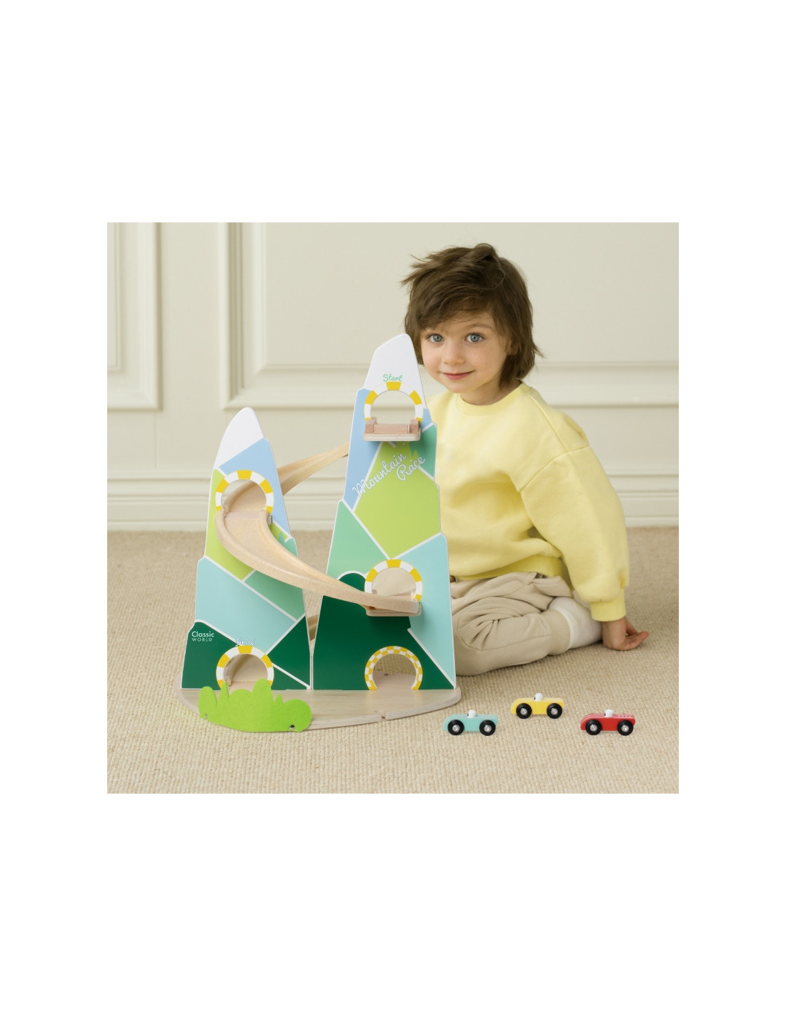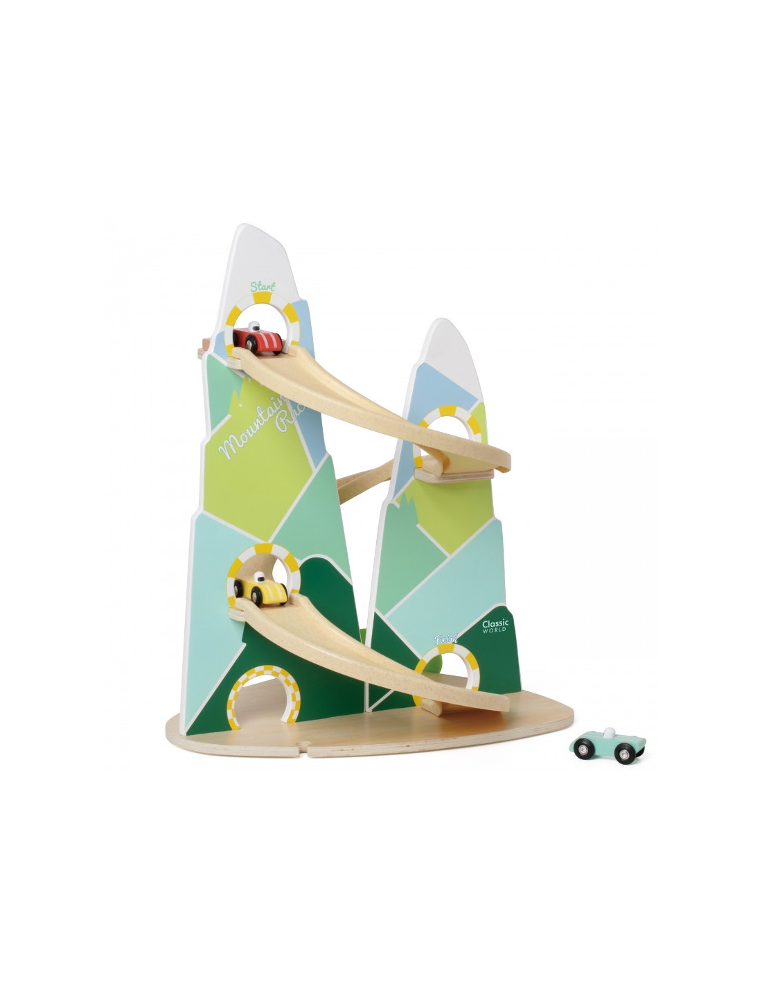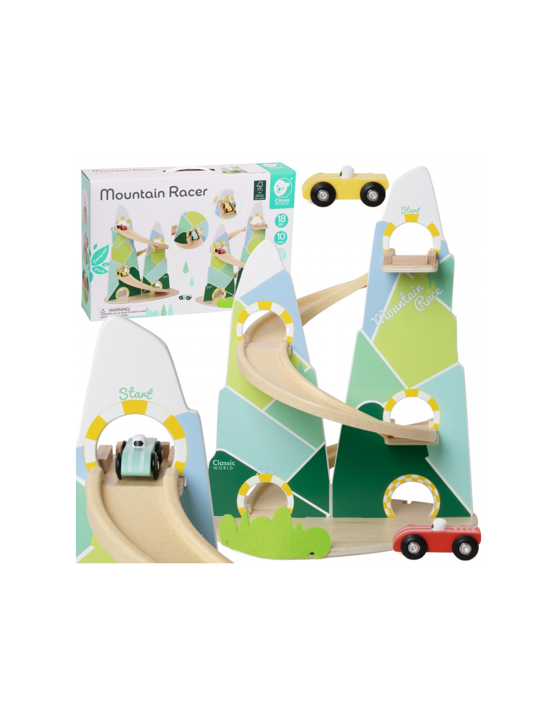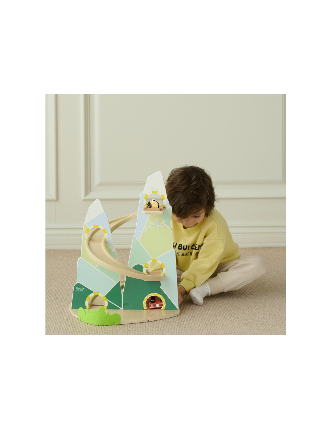 Drewniany Tor wyścigowy od marki Classic World to niezwykła zabawa, która przenosi dzieci w świat pełen emocji wyścigów! Zainspirowany pięknym górskim krajobrazem, jego unikalny kształt dwóch gór zachwyci każdego malucha, a starannie wykonana konstrukcja z drewna i pastelowe kolory będą przyciągać wzrok. Zestaw zawiera 3 kolorowe samochodziki, które zmierzą się na torze pełnym zakrętów. Dzięki bezpiecznemu, pozbawionemu ostrych krawędzi projektowi, tor jest idealny do zabawy nawet dla najmłodszych. To zabawa, która nie tylko rozwesela, ale i uczy logicznego myślenia, wspiera rozwój koordynacji ręka-oko oraz rywalizacji w zdrowej atmosferze.